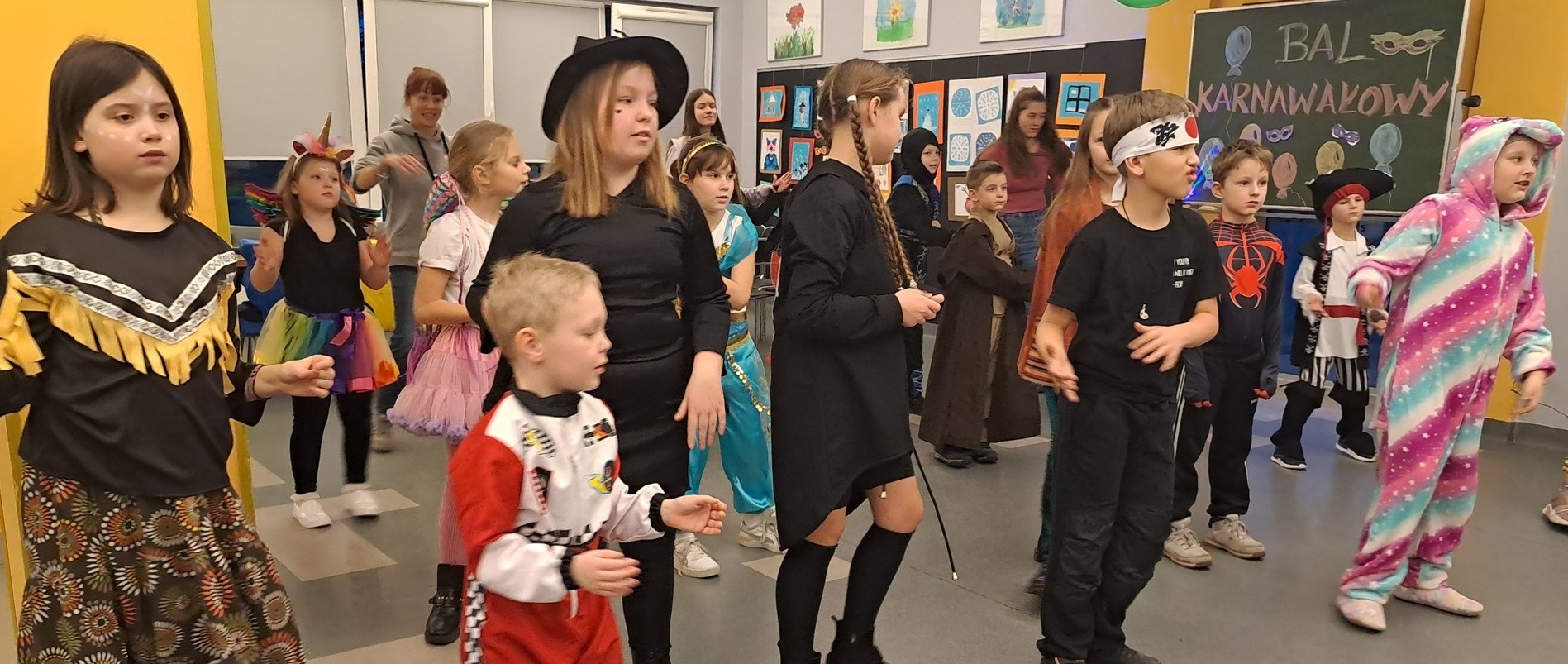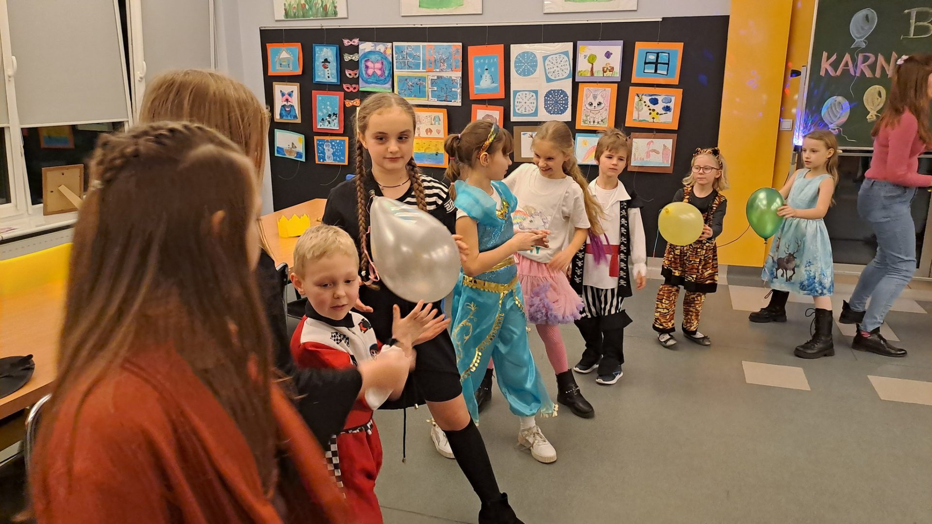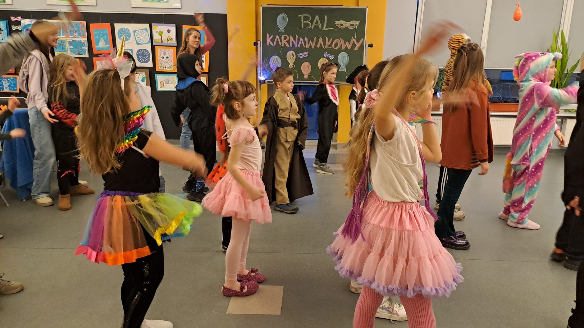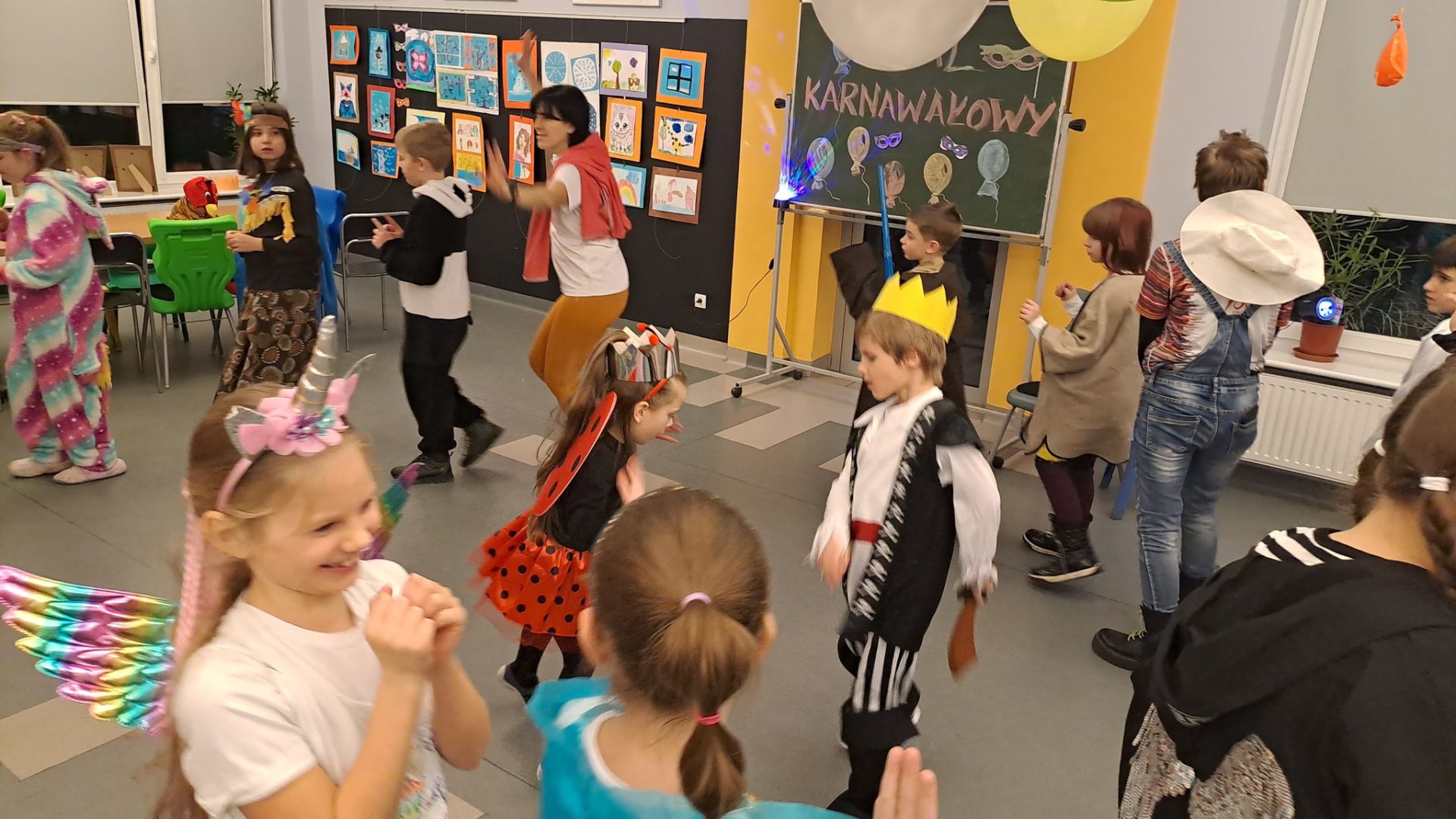 Karnawałowa zabawa zgromadziła w świetlicy korowód przebierańców. Było wesoło, tanecznie i fantastycznie. Dzieci zaskoczyły nas bajecznymi strojami. Były wybory na Króla i Królową Balu, zabawy z balonami czy krzesełkami.