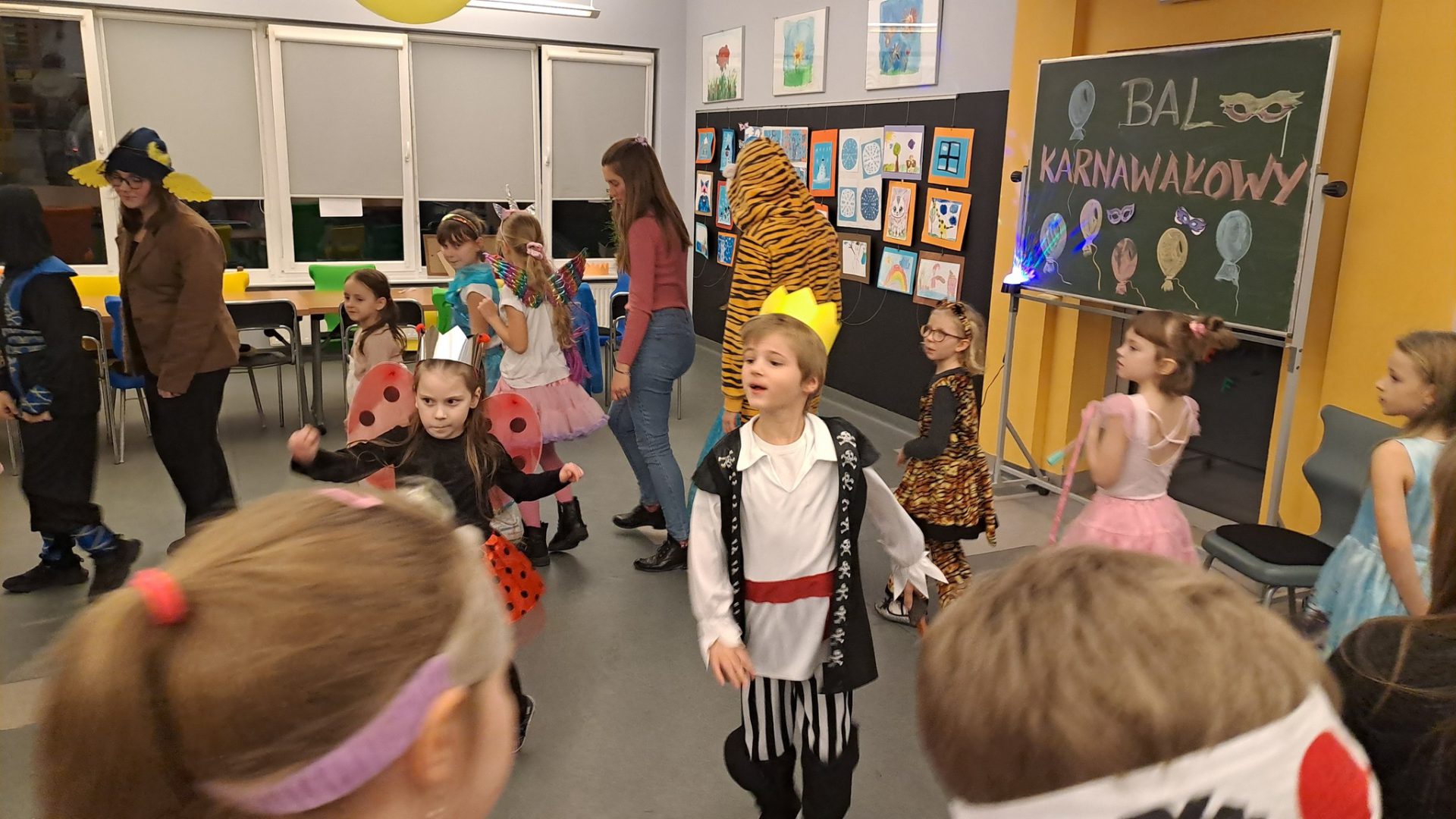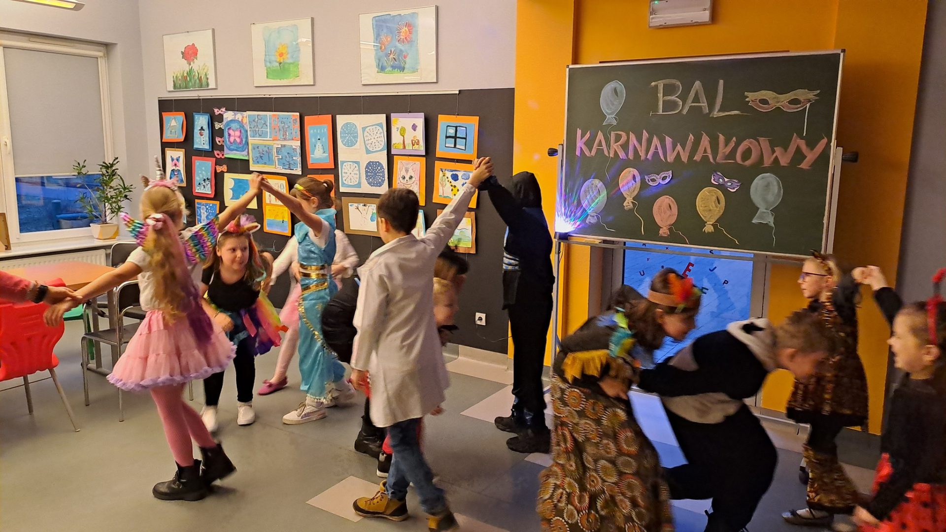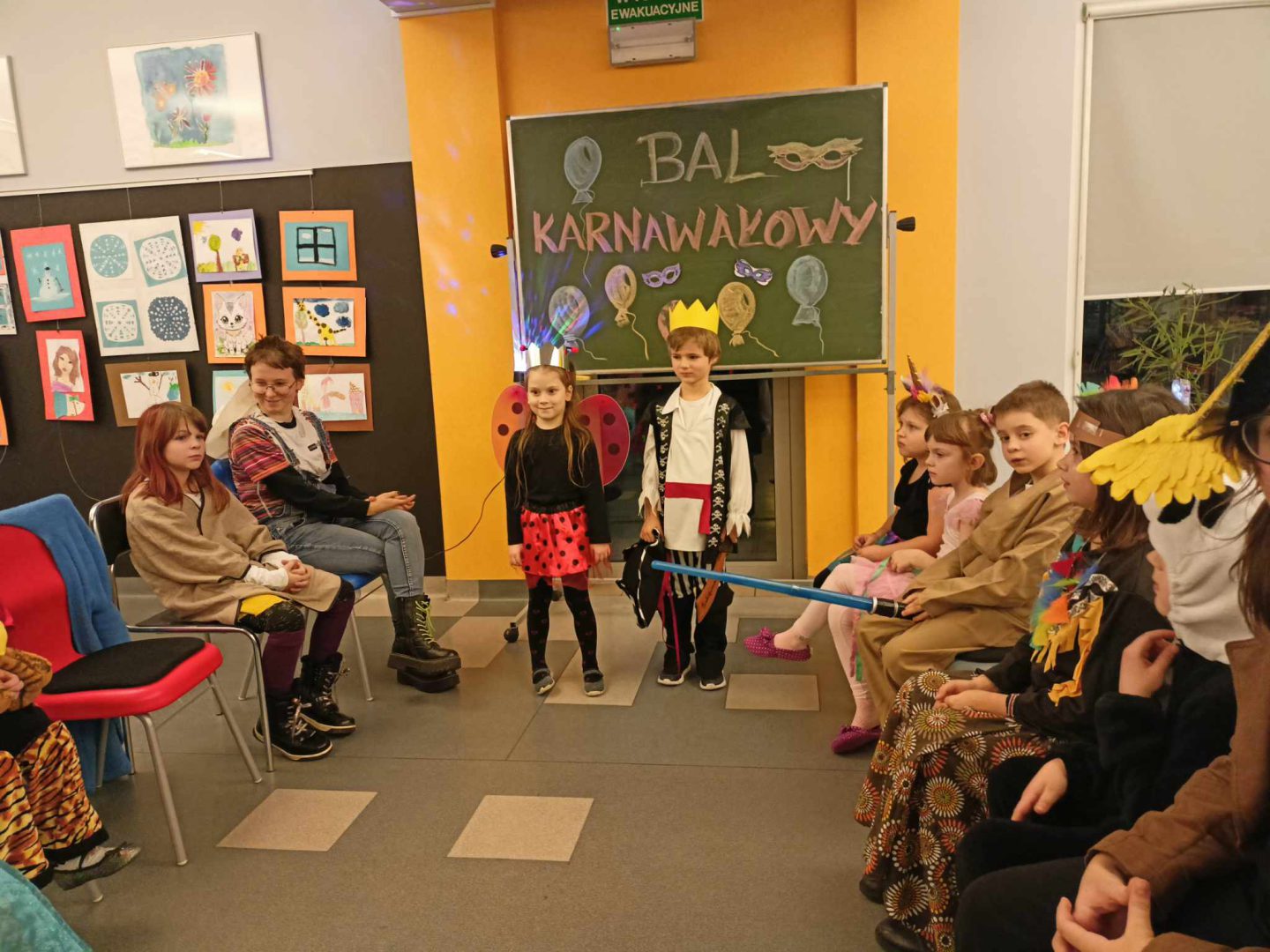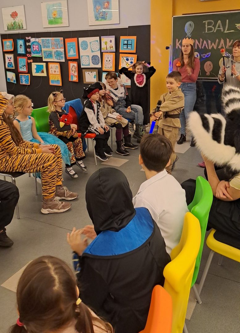 Karnawałowa zabawa zgromadziła w świetlicy korowód przebierańców. Było wesoło, tanecznie i fantastycznie. Dzieci zaskoczyły nas bajecznymi strojami. Były wybory na Króla i Królową Balu, zabawy z balonami czy krzesełkami.