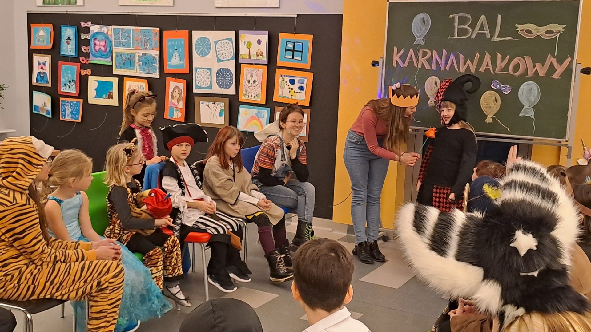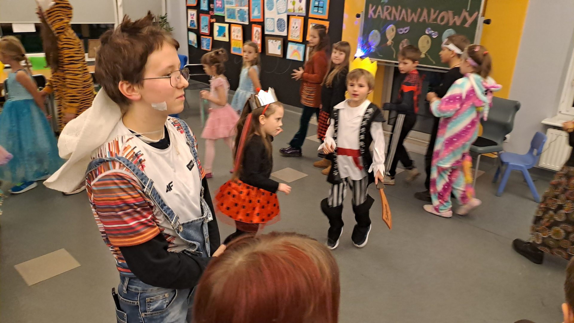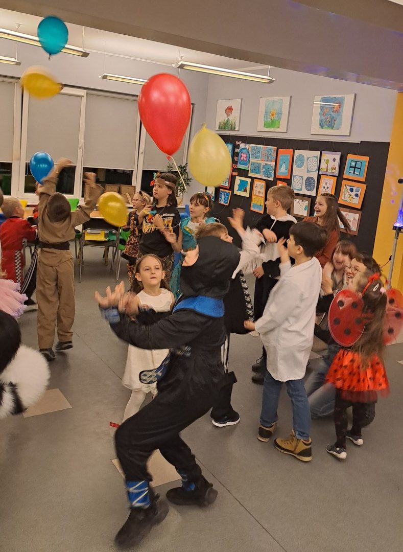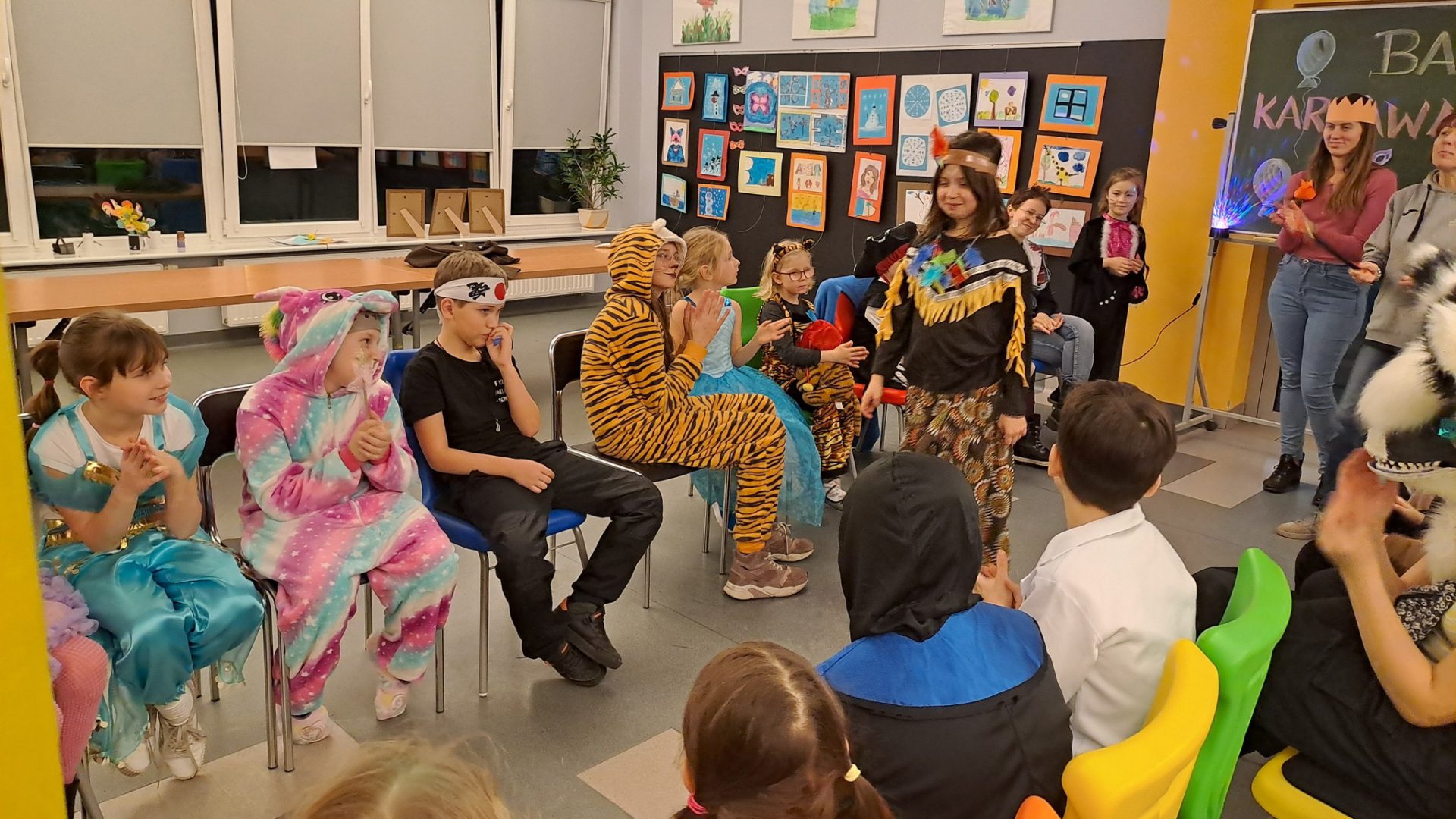 Karnawałowa zabawa zgromadziła w świetlicy korowód przebierańców. Było wesoło, tanecznie i fantastycznie. Dzieci zaskoczyły nas bajecznymi strojami. Były wybory na Króla i Królową Balu, zabawy z balonami czy krzesełkami.