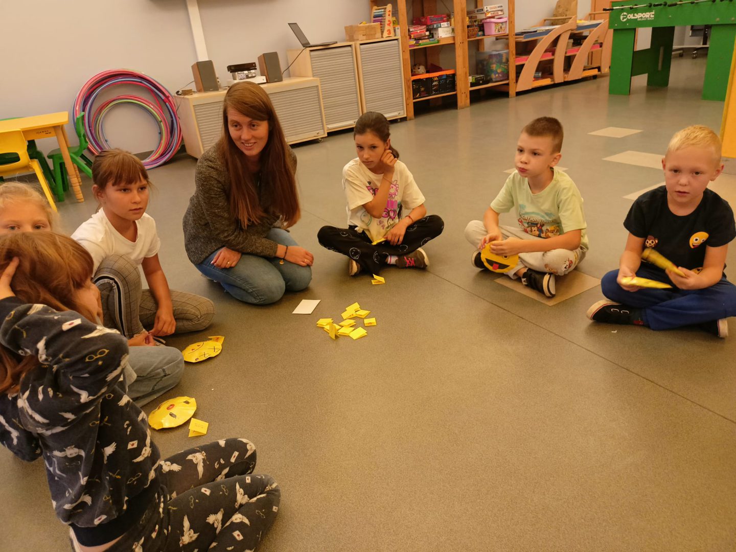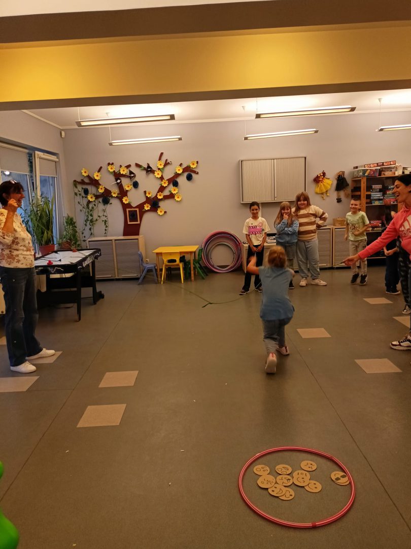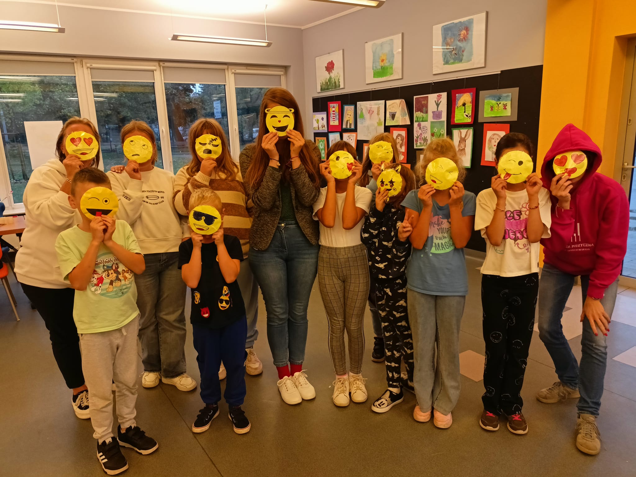 Z okazji zbliżającego się Dnia Emotikona została zorganizowana impreza okazjonalna „Buduj z nami pozytywne emocje”. Dzieci wykonały swojego Squishy’a czyli gąbczastego emotikonka, pokazywały emocje mimiką twarzy i gestami, wzięły udział w konkurencjach zwinnościowych z emotikonkami w roli głównej oraz z radością tańczyły w rytm muzyki. Zajęcia wprowadziła wszystkich w świetny nastrój!