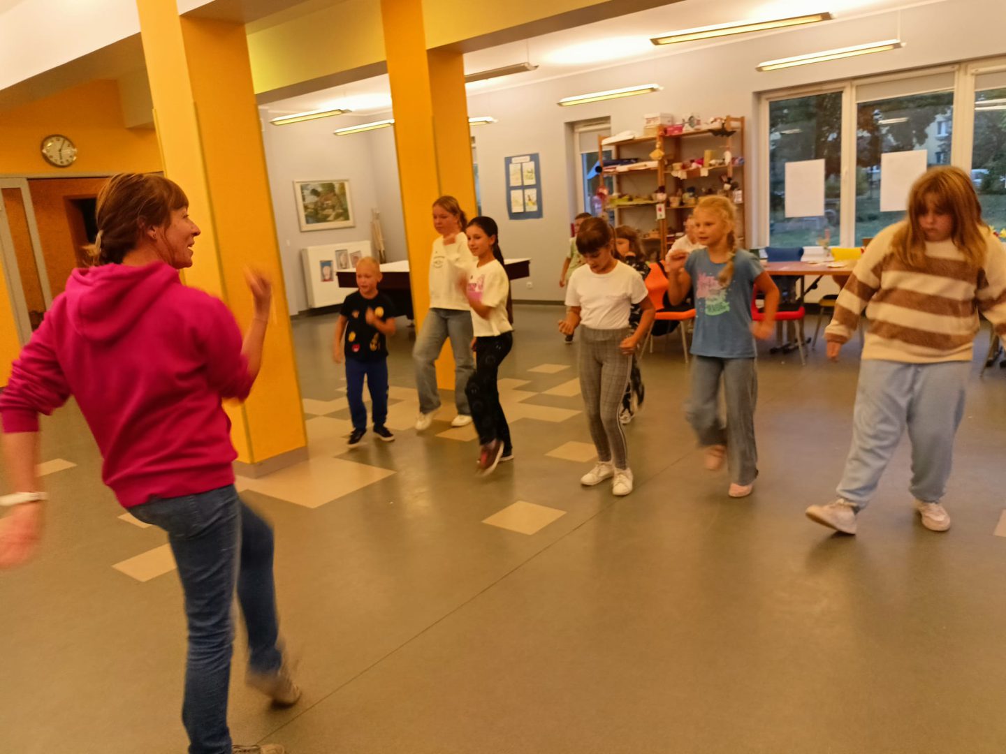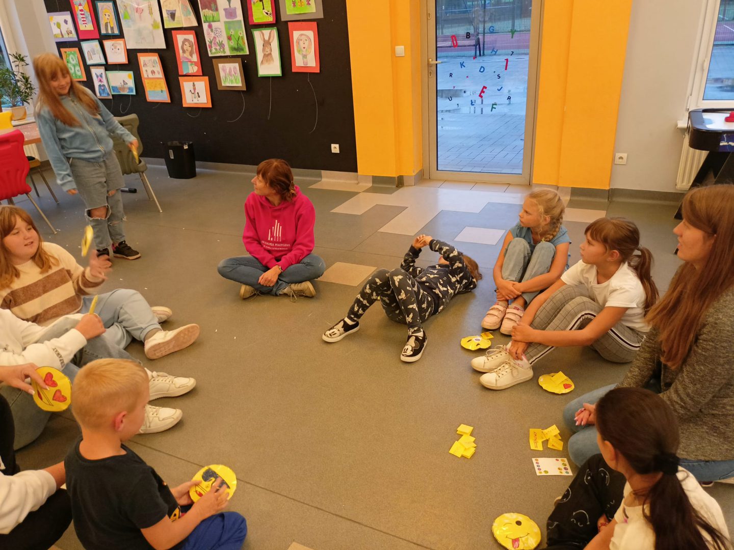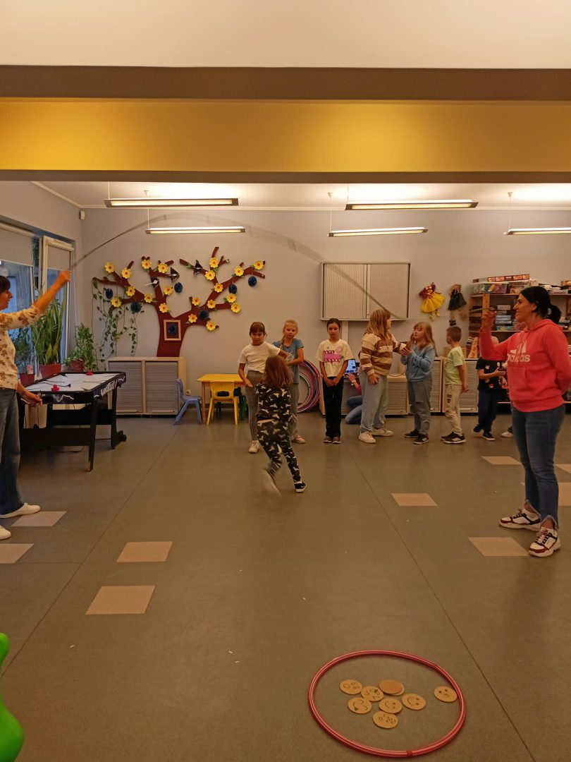 Z okazji zbliżającego się Dnia Emotikona została zorganizowana impreza okazjonalna „Buduj z nami pozytywne emocje”. Dzieci wykonały swojego Squishy’a czyli gąbczastego emotikonka, pokazywały emocje mimiką twarzy i gestami, wzięły udział w konkurencjach zwinnościowych z emotikonkami w roli głównej oraz z radością tańczyły w rytm muzyki. Zajęcia wprowadziła wszystkich w świetny nastrój!