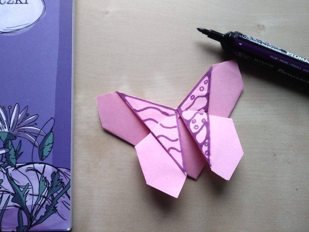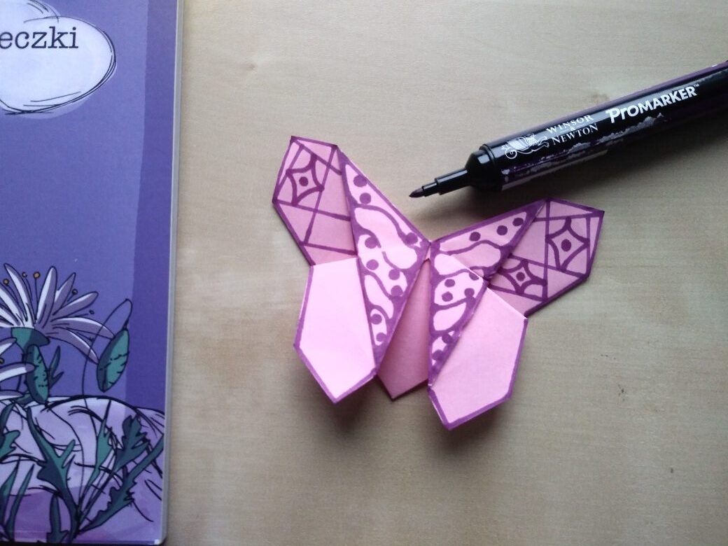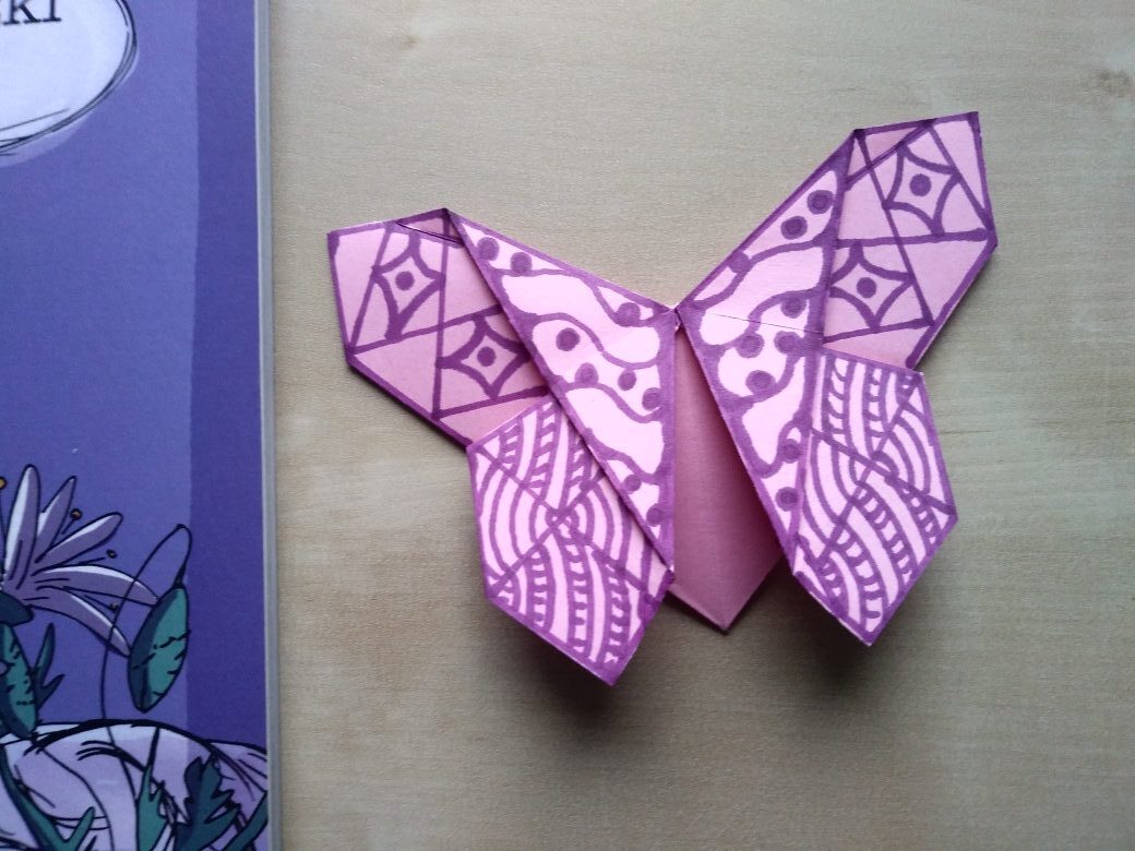 Jesienne wieczory sprzyjają czytaniu książek. Zrób zakładkę w kształcie motyla, w technice origami. Pokoloruj ją we własne niepowtarzalne wzory i prześlij do nas. Poniżej moja propozycja.
