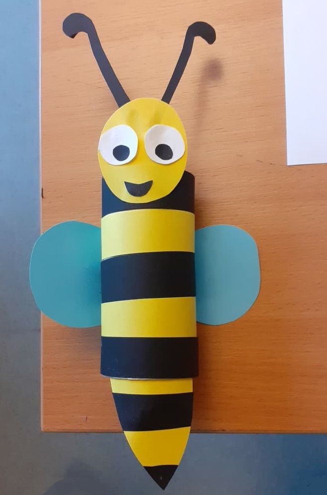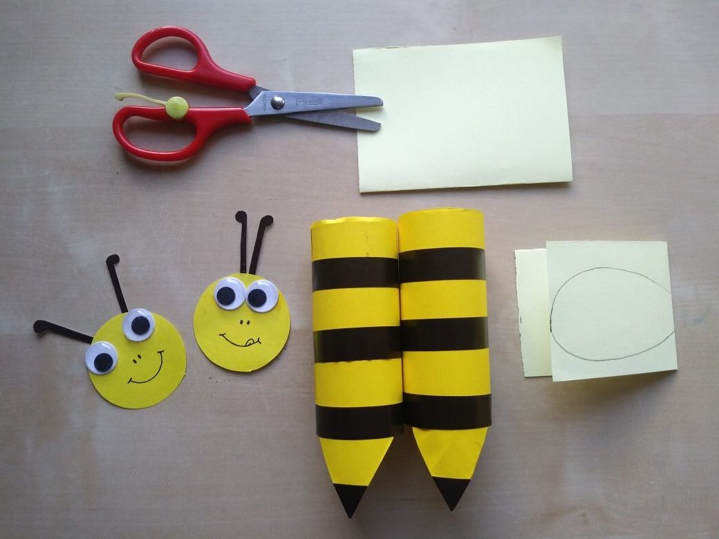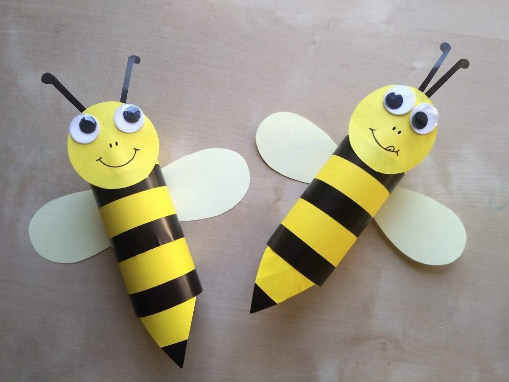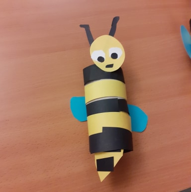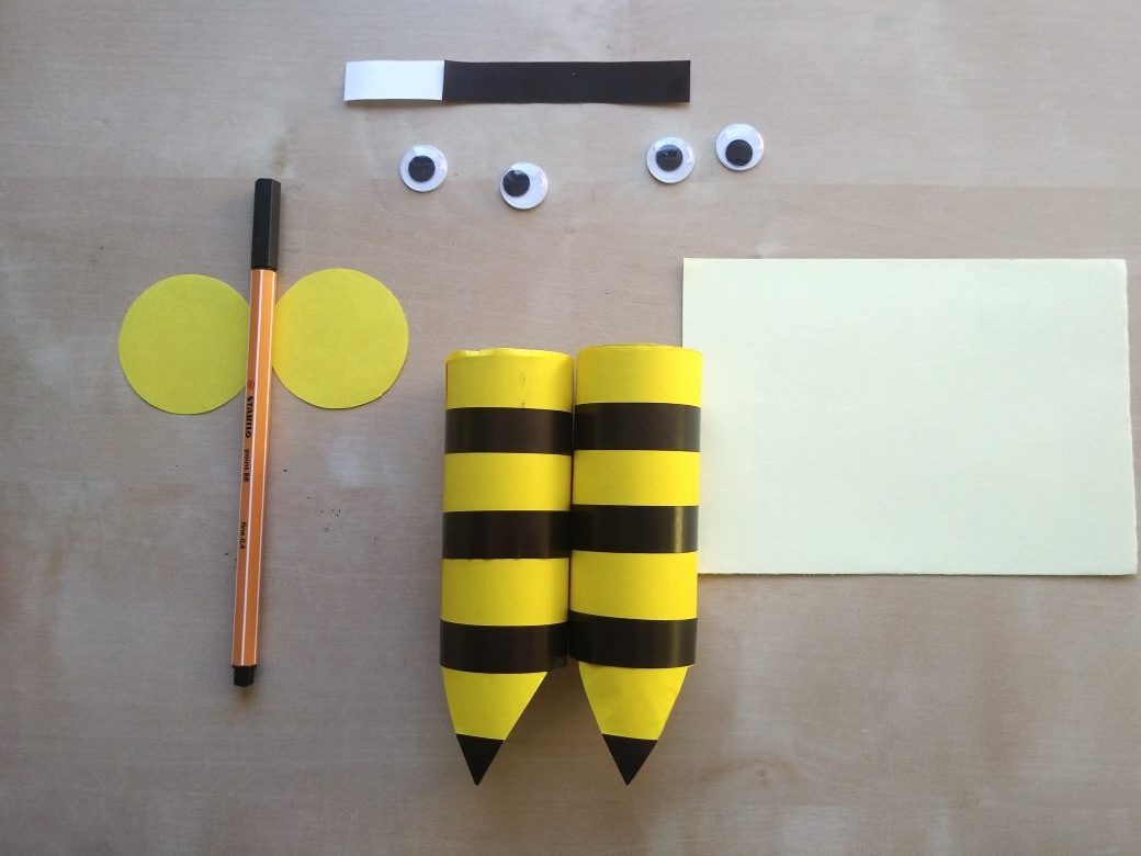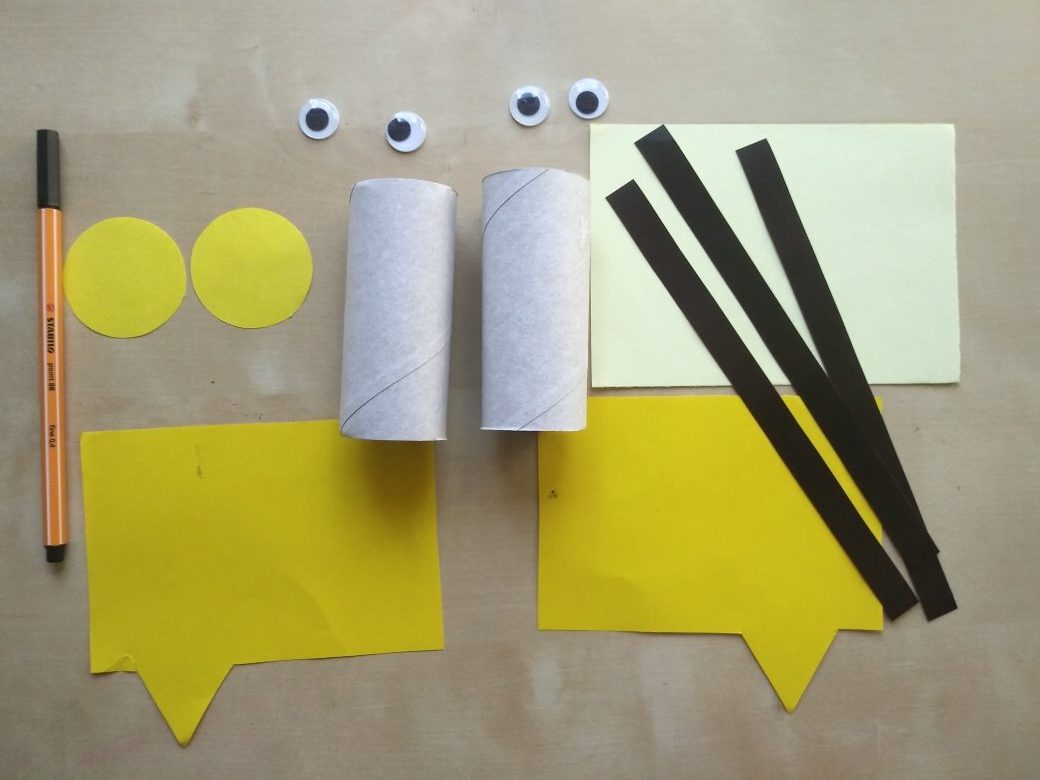 Wykonaj pszczółkę według poniższej instrukcji. Przygotuj rolkę po papierze toaletowym, żółty, czarny i biały papier. Wyklej pasiasty korpus, wytnij skrzydła, a z gotowych elementów wykonaj głowę owada. Sklej wszystko w całość i gotowe. Teraz możesz na kartce narysować wrzosowisko z ulem – pszczelim domem. Miłej zabawy.