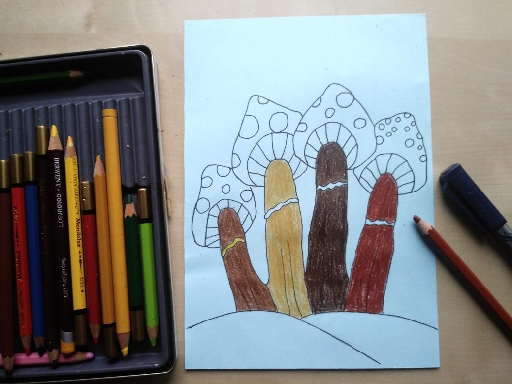 Końcówka października i listopad to czas opieniek. Opieńki porastają gęstymi kępami drzewa i butwiejące pniaki. Choć ten blaszkowaty grzyb nie budzi zaufania to jest jadalny i stanowi piękną ozdobą lasów. Narysuj swoje, oryginalne opieńki wykorzystując odrysowane na kartce własne palce.