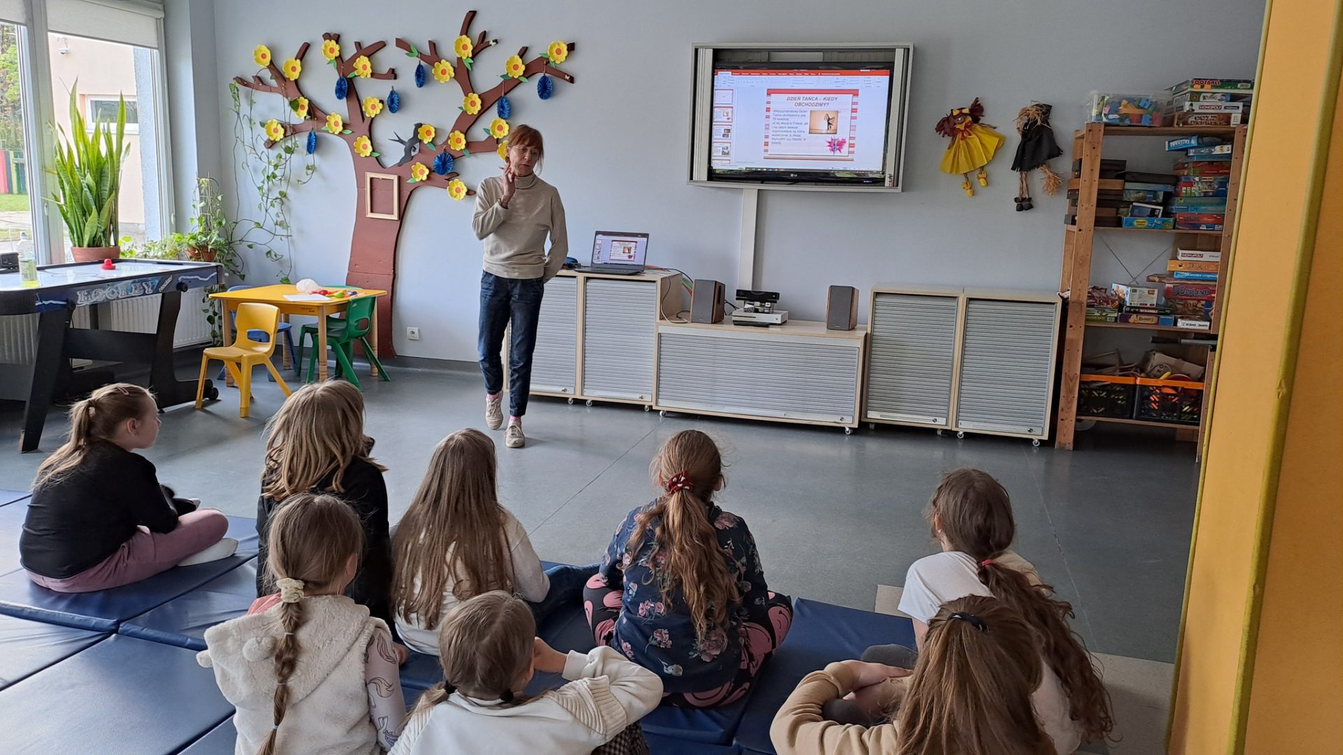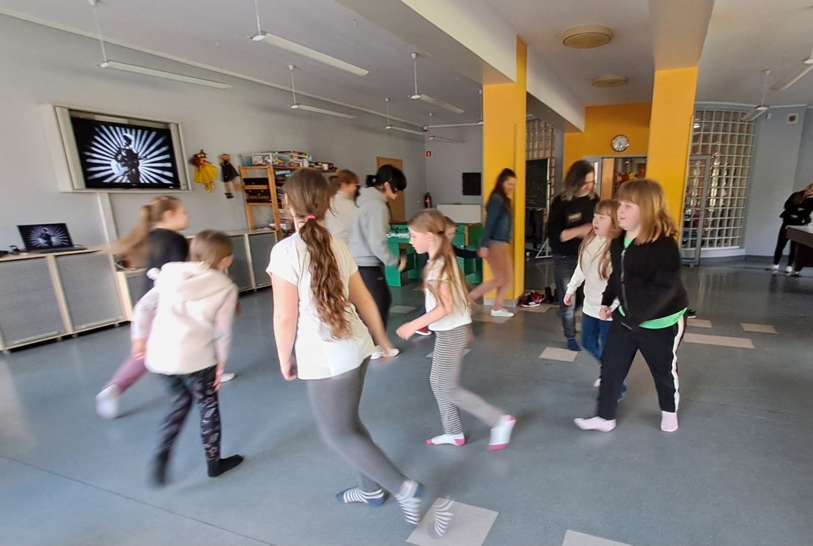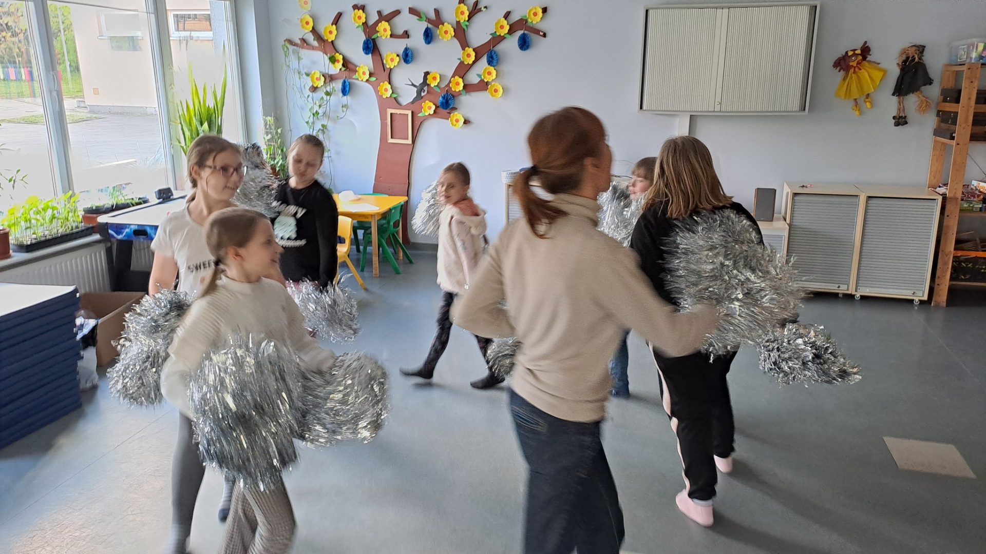 Dzień Tańca w naszej świetlicy sprawił, że wszyscy poczuli muzykę i dali się jej porwać, ci najmłodsi i ci nieco starsi. Dowiedzieliśmy się o różnych gatunkach tanecznych i poznaliśmy jego historię. Dzieci zatańczyły z balonami i z pomponami. Wydarzenie uświetnił też występ naszych wychowanek – Zosi i Oli, które przedstawiły swoje piękne dwa układy taneczne! Nie mogło zabraknąć też odtańczenia belgijki i uroczystego zakończenia polonezem. Było muzycznie, wesoło i z przytupem.