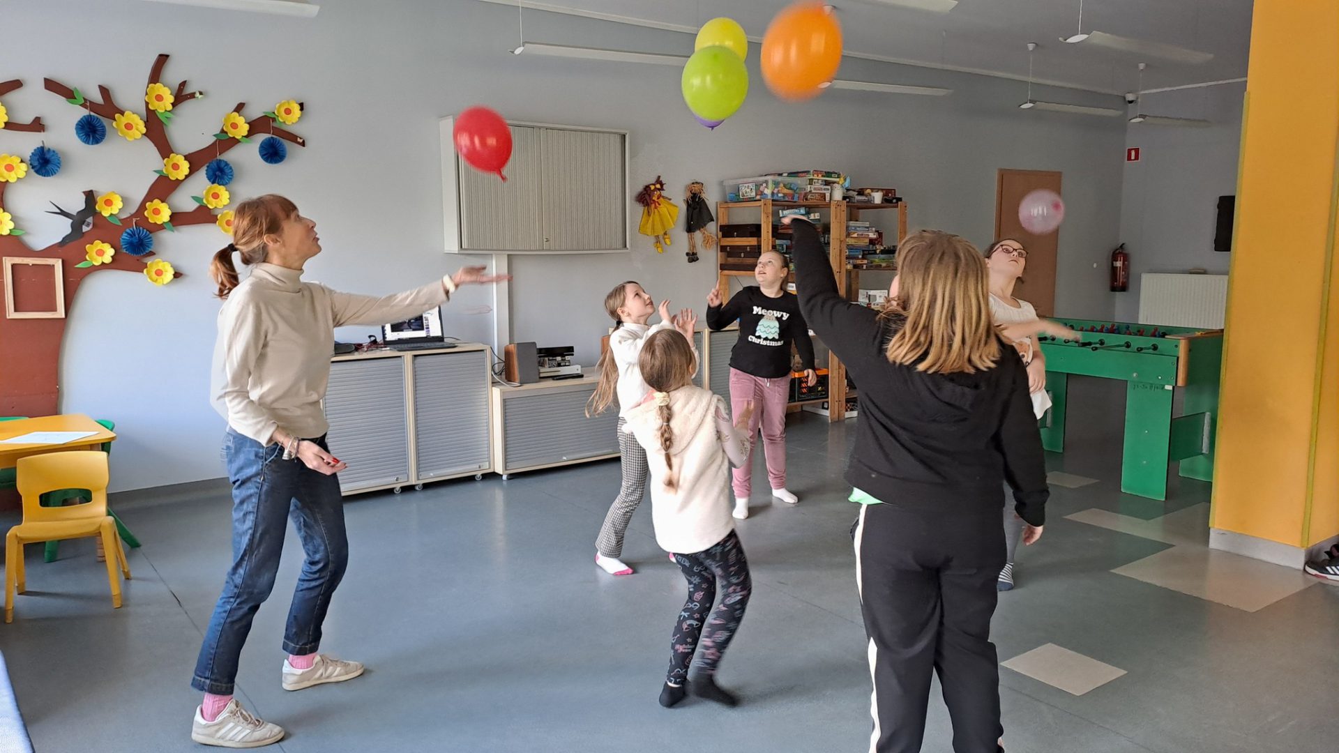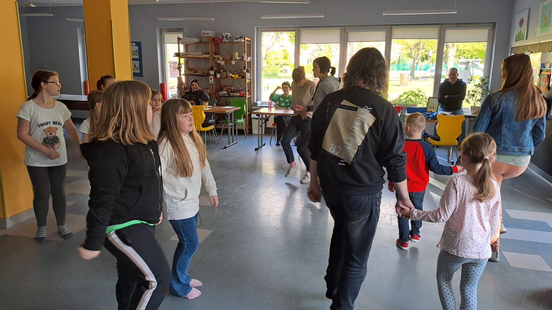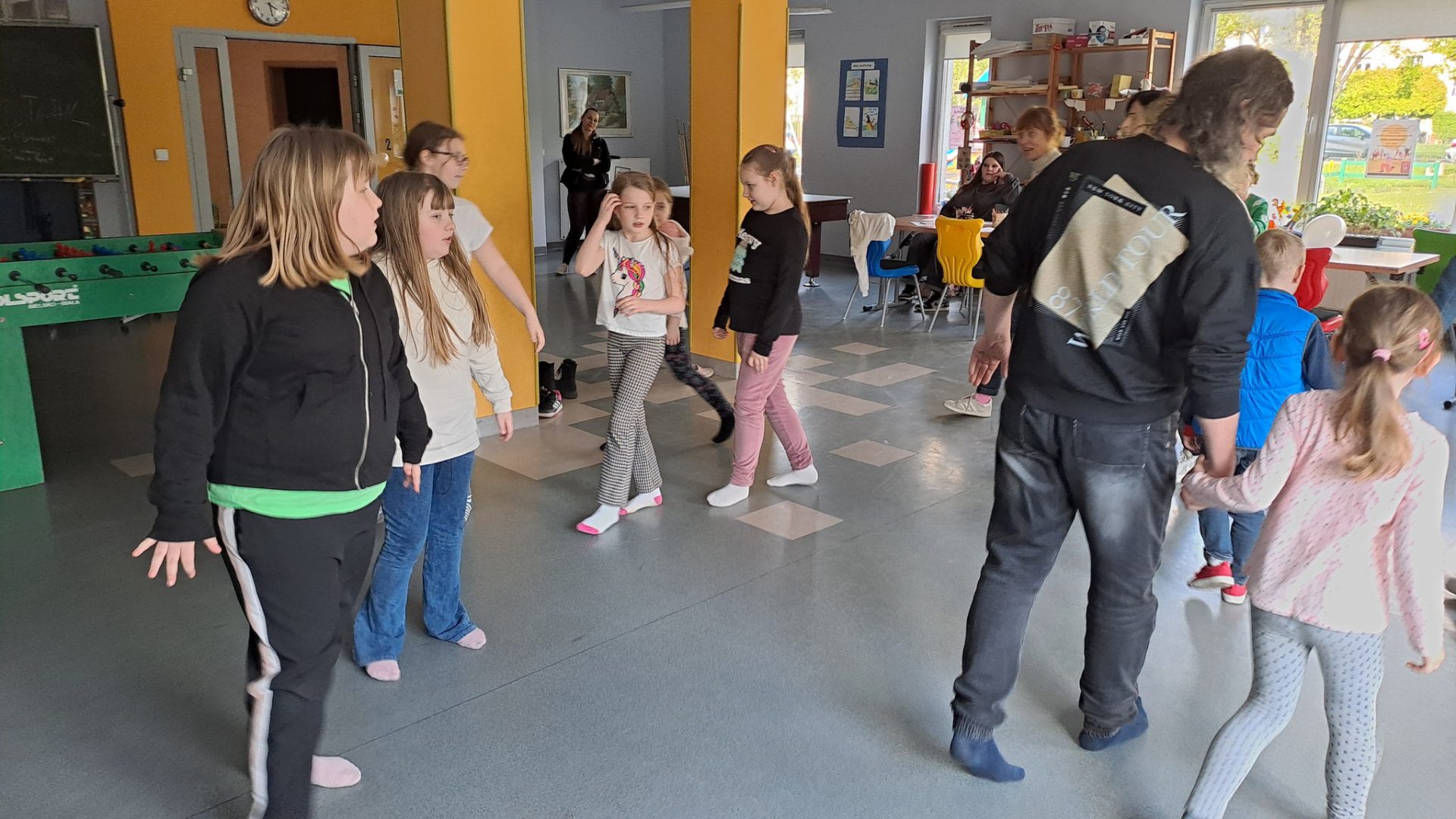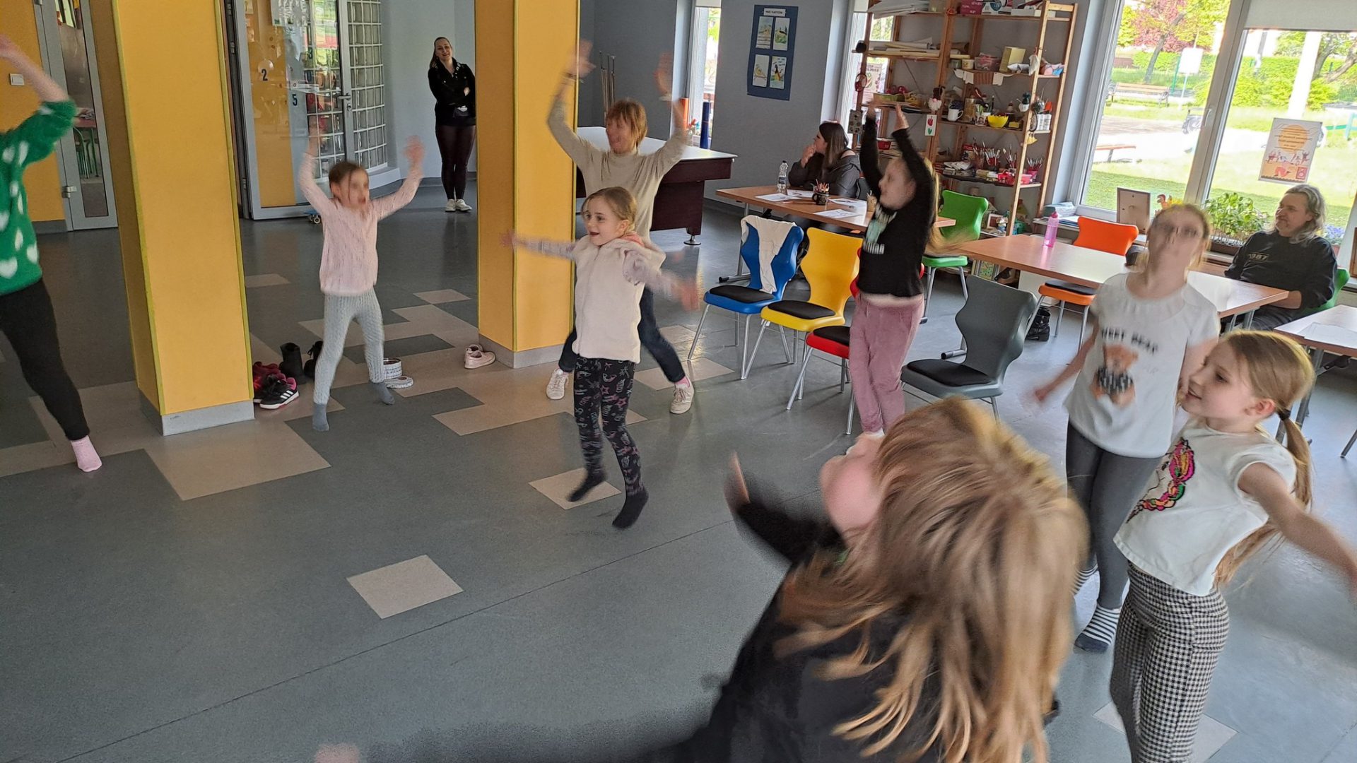Dzień Tańca w naszej świetlicy sprawił, że wszyscy poczuli muzykę i dali się jej porwać, ci najmłodsi i ci nieco starsi. Dowiedzieliśmy się o różnych gatunkach tanecznych i poznaliśmy jego historię. Dzieci zatańczyły z balonami i z pomponami. Wydarzenie uświetnił też występ naszych wychowanek – Zosi i Oli, które przedstawiły swoje piękne dwa układy taneczne! Nie mogło zabraknąć też odtańczenia belgijki i uroczystego zakończenia polonezem. Było muzycznie, wesoło i z przytupem.
