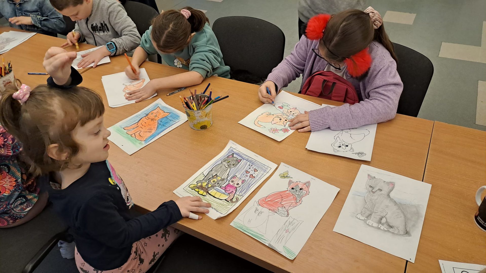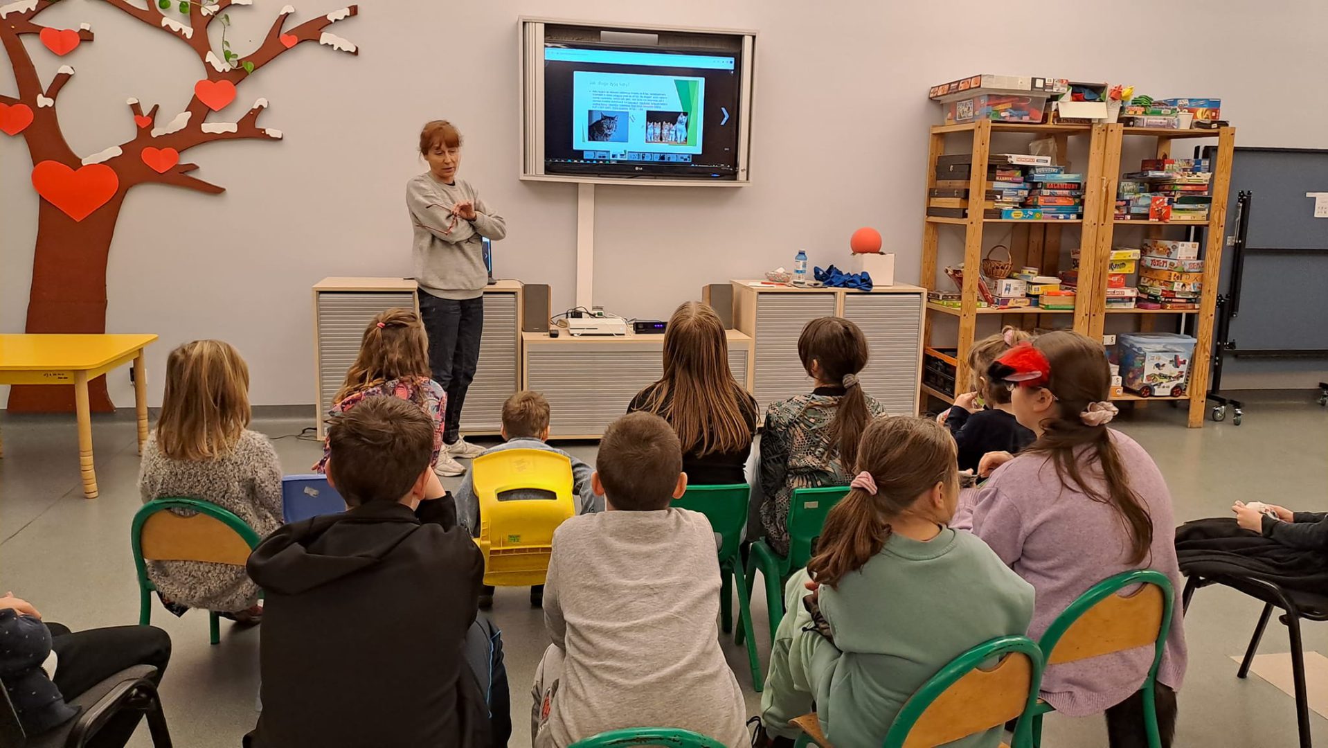 Była prezentacja na temat ras, zachowania kotów i ciekawostki. Kolorowanki, zagadki i zabawy kocie umiliły czas dzieciom.