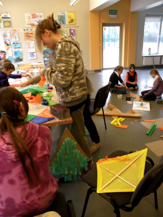 Dzieci młodsze wykonały latawce tylko z papieru, a starsze na sporządzonej konstrukcji z listewek w kształcie krzyża naklejały papier, bibułę lub krepę. Wszystkie zostały pomalowane i udekorowane w fantazyjne wzory. Po przyczepieniu stabilizującego ogona wykonano pierwsze próby lotu.