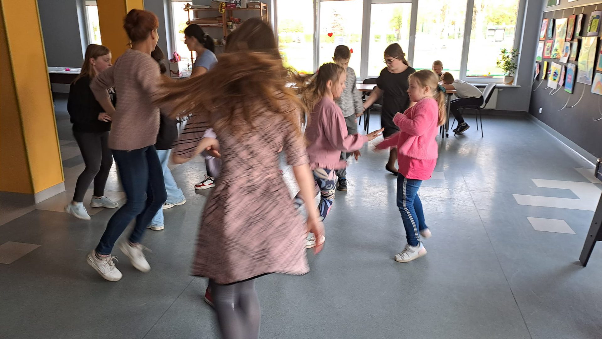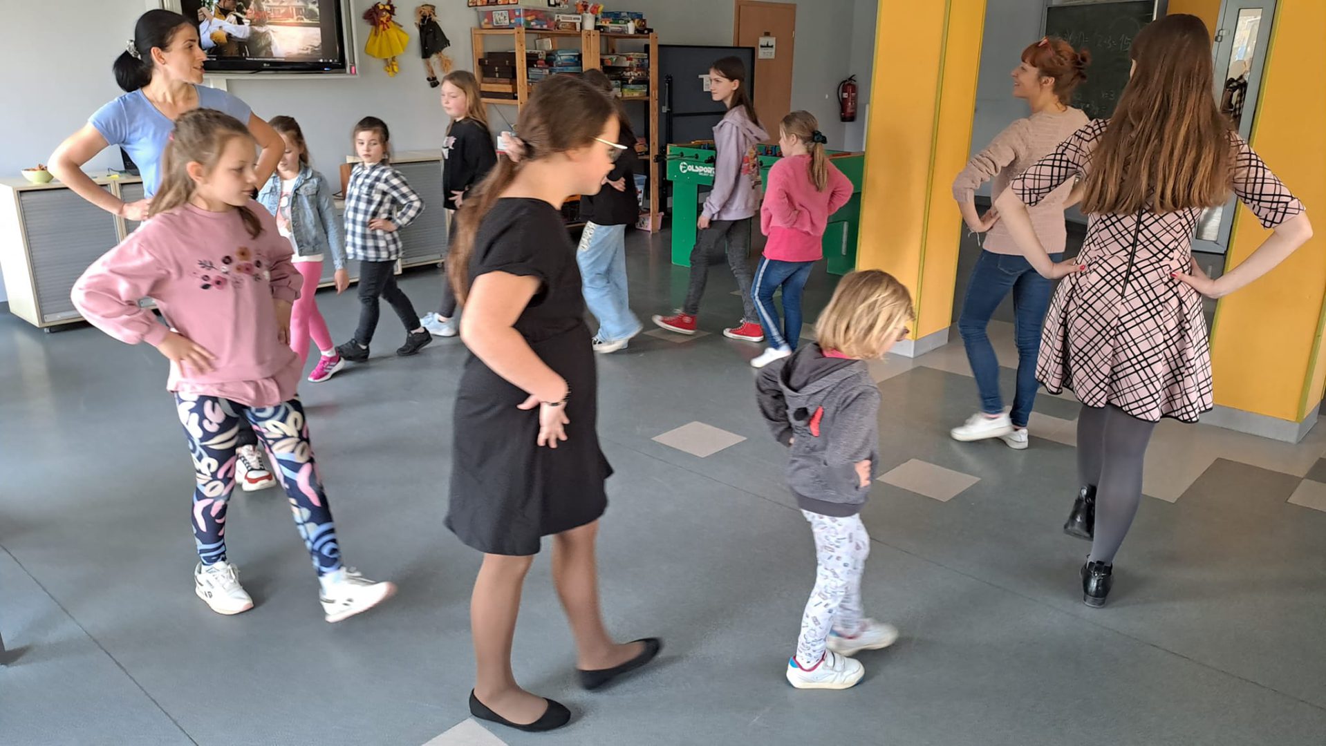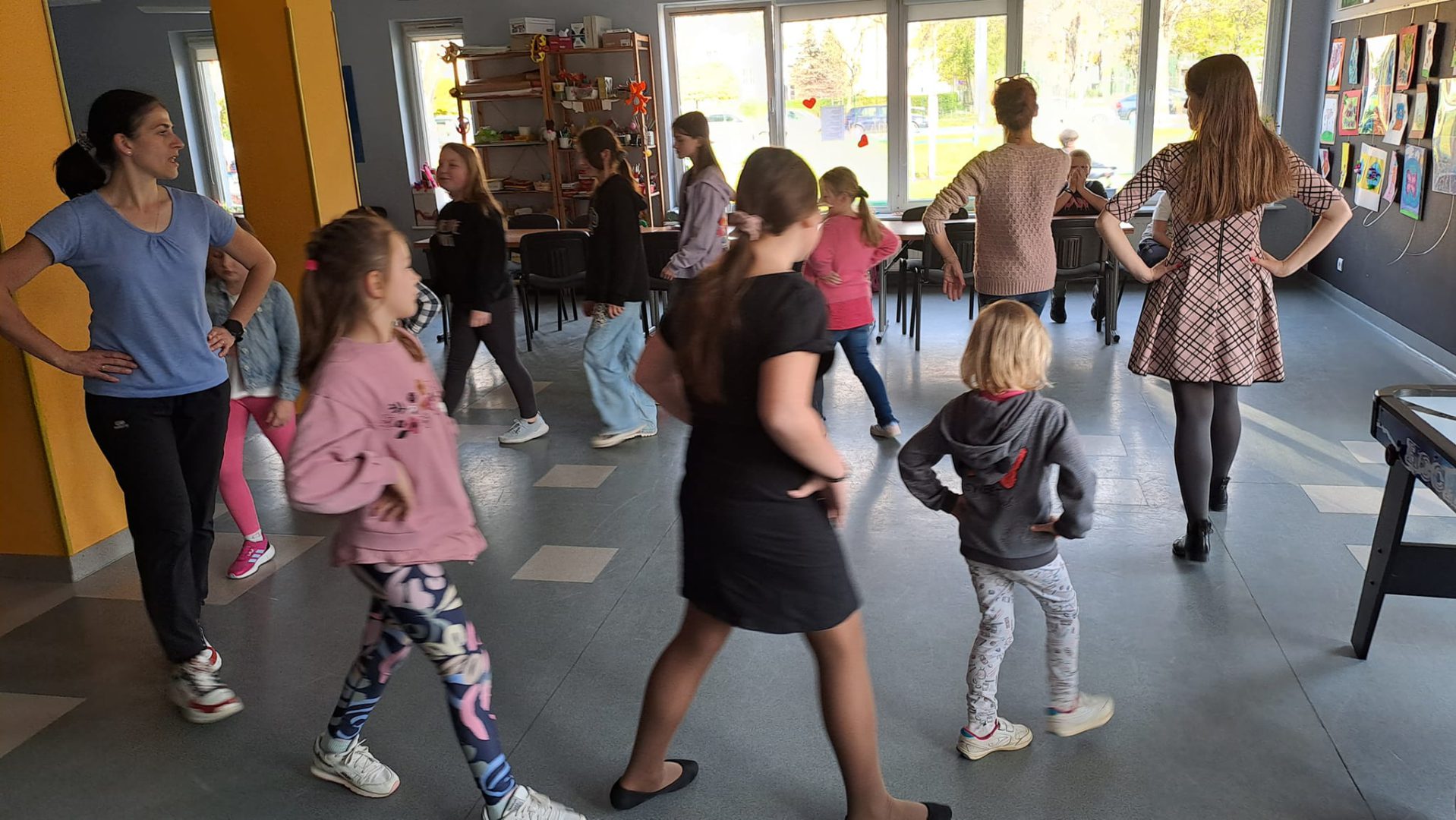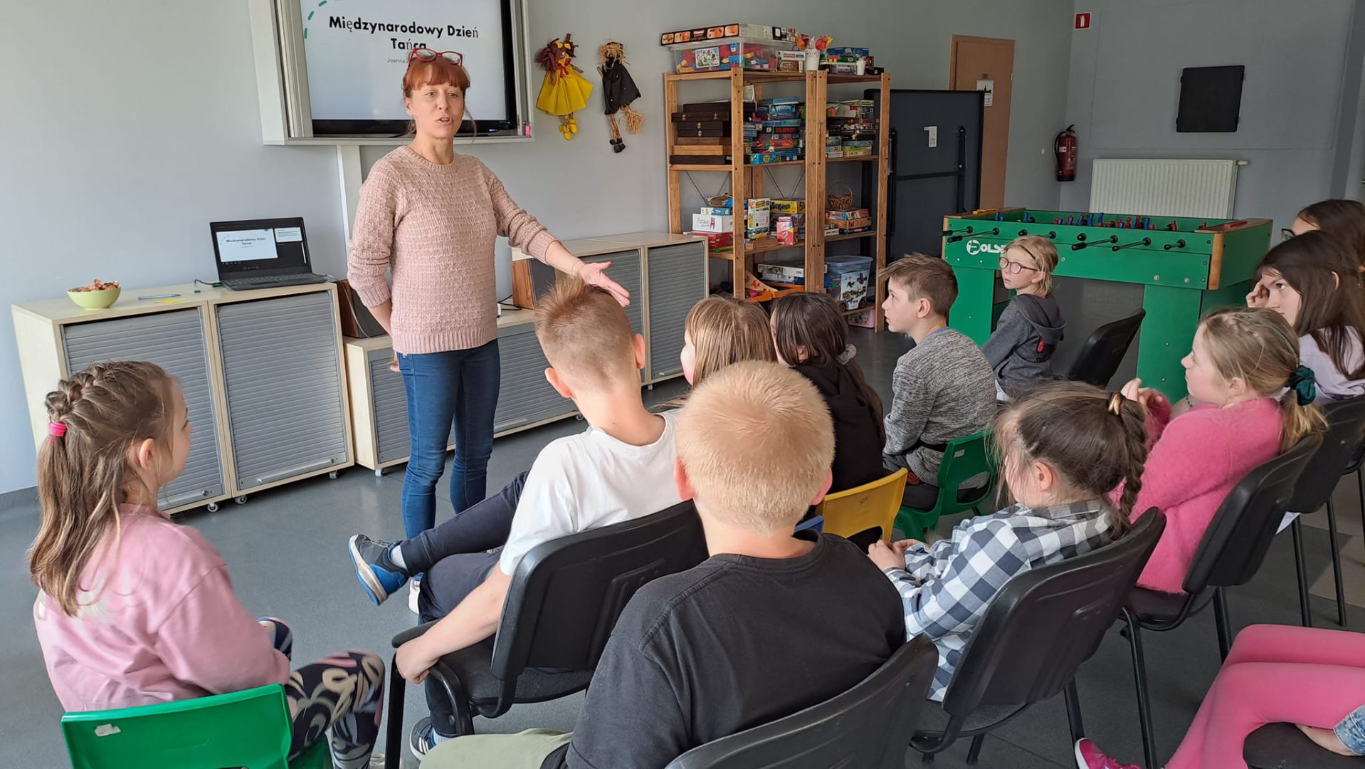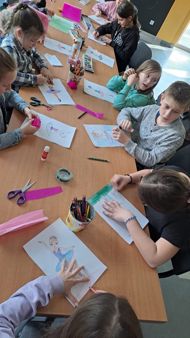 Międzynarodowy Dzień Tańca był pretekstem do poznania ciekawostek z historii tańca, projektowania stroju baleriny i zabawy przy muzyce. Uczestnicy uczyli się kroków poloneza, belgijki czy makareny. Dzieci chętnie wyginały śmiało ciało w rytm muzyki.
