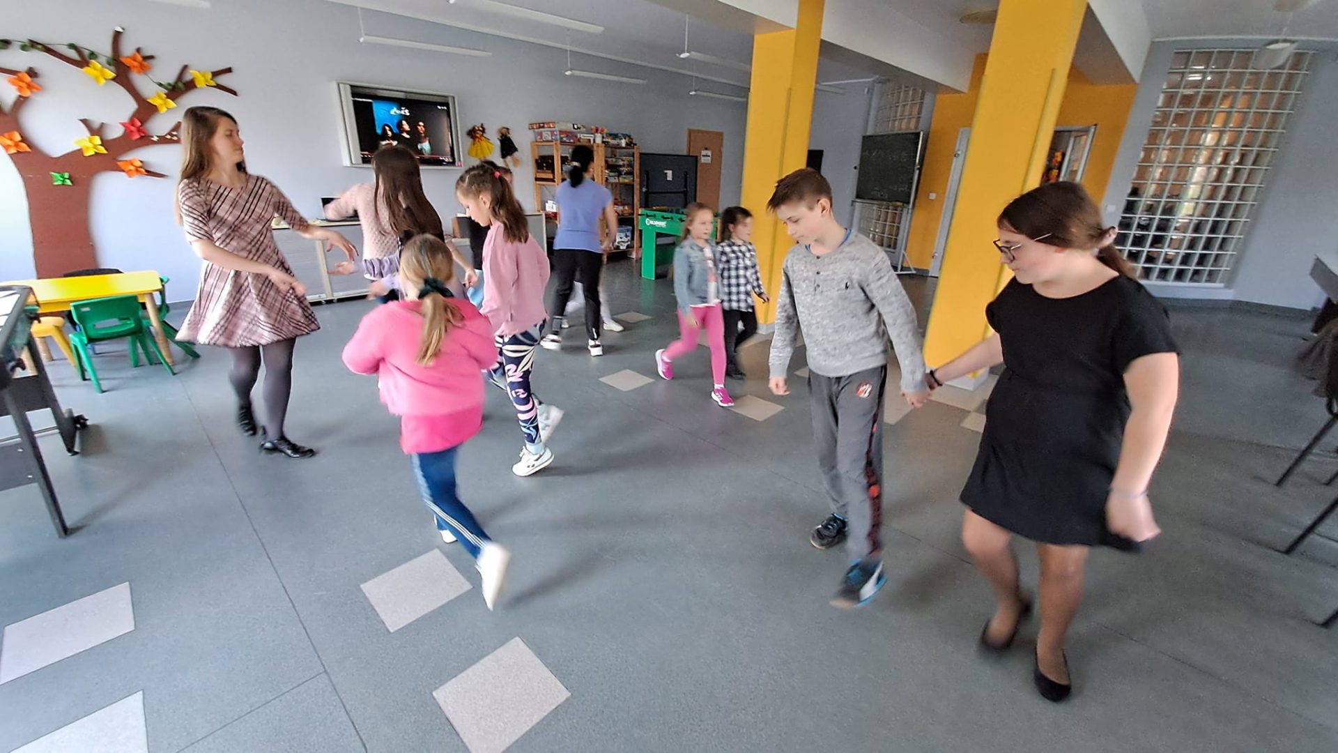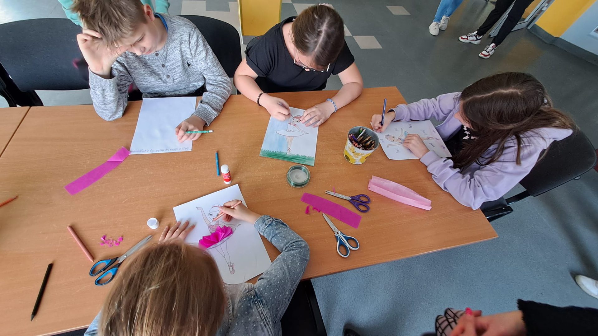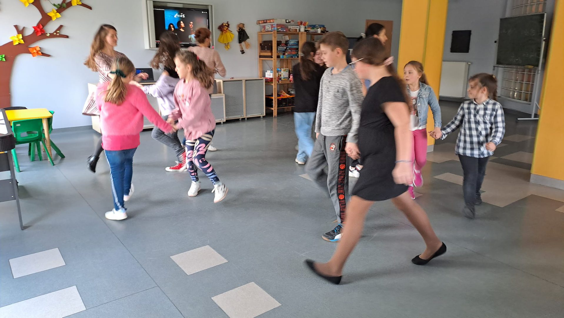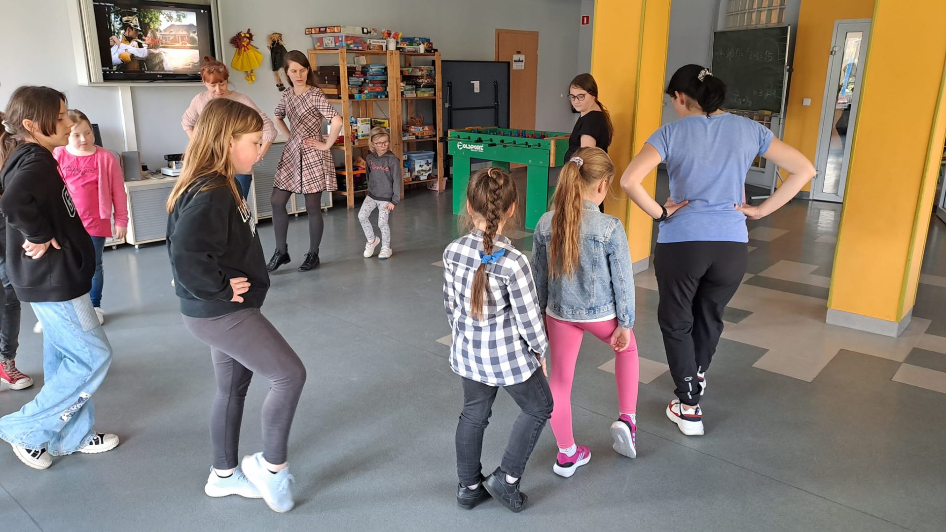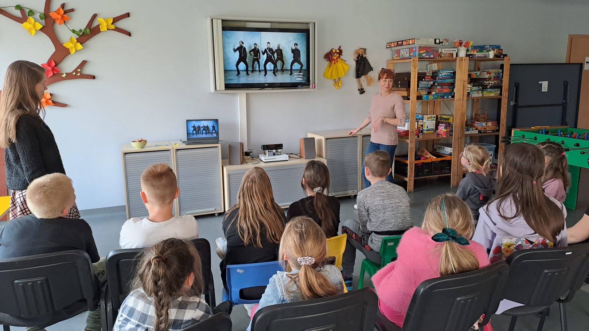 Międzynarodowy Dzień Tańca był pretekstem do poznania ciekawostek z historii tańca, projektowania stroju baleriny i zabawy przy muzyce. Uczestnicy uczyli się kroków poloneza, belgijki czy makareny. Dzieci chętnie wyginały śmiało ciało w rytm muzyki.