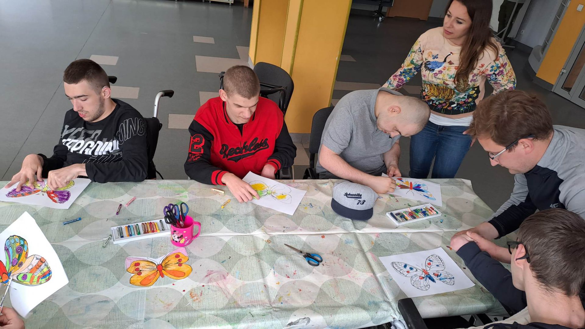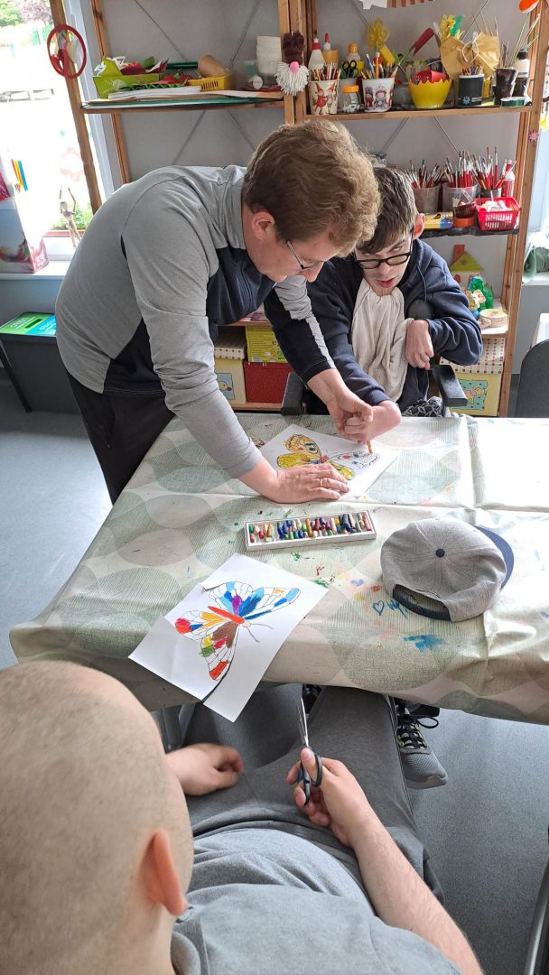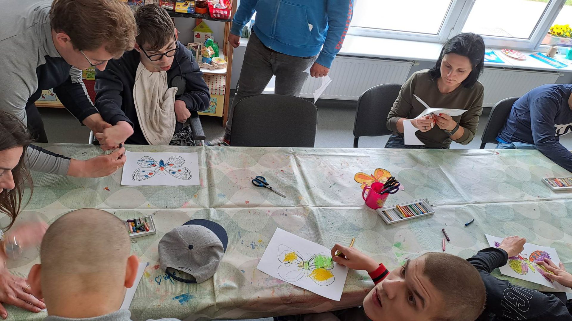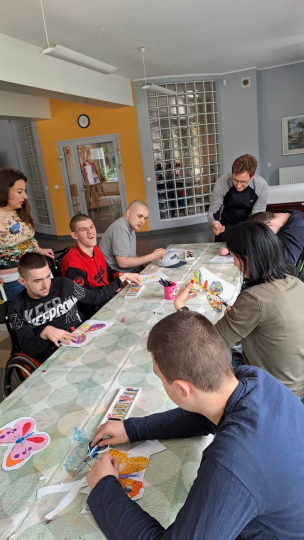 W ramach współpracy z placówkami oświatowymi w Zespole Ogrodów Jordanowskich gościliśmy uczniów ze Szkoły Przysposabiającej do Pracy nr 5 w Ośrodku Szkolno-Wychowawczym dla dzieci i młodzieży niepełnosprawnej im. Zbigniewa Tylewicza. Zaproponowane zajęcia plastyczne to kolorowanie i wycinanie wiosennych motyli , po których odbyła się zabawa w kolory z wykorzystaniem chusty Klanza.