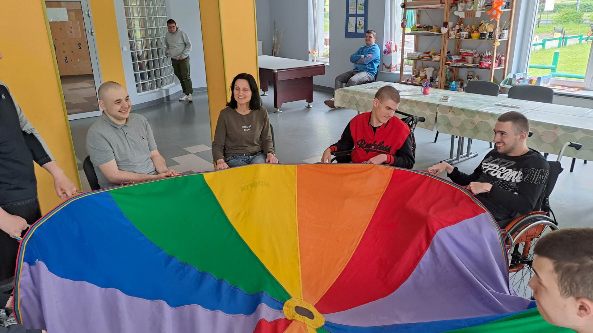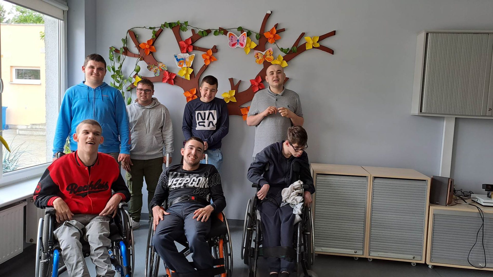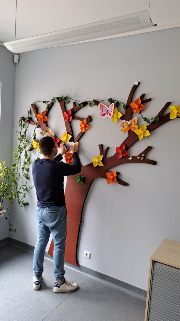 W ramach współpracy z placówkami oświatowymi w Zespole Ogrodów Jordanowskich gościliśmy uczniów ze Szkoły Przysposabiającej do Pracy nr 5 w Ośrodku Szkolno-Wychowawczym dla dzieci i młodzieży niepełnosprawnej im. Zbigniewa Tylewicza. Zaproponowane zajęcia plastyczne to kolorowanie i wycinanie wiosennych motyli , po których odbyła się zabawa w kolory z wykorzystaniem chusty Klanza.
