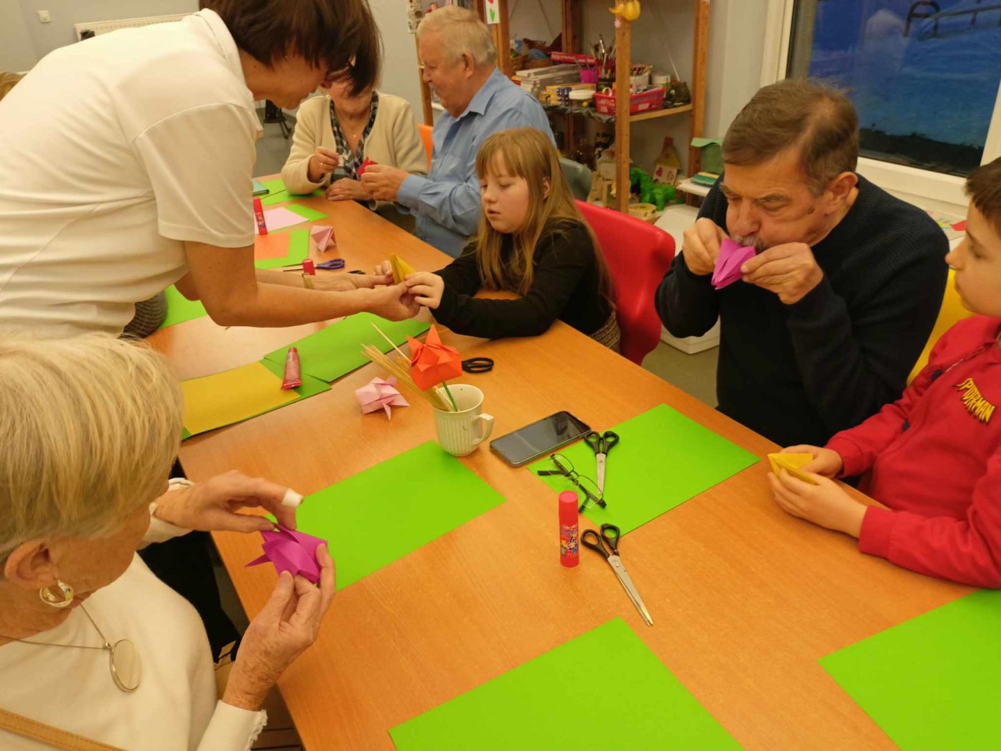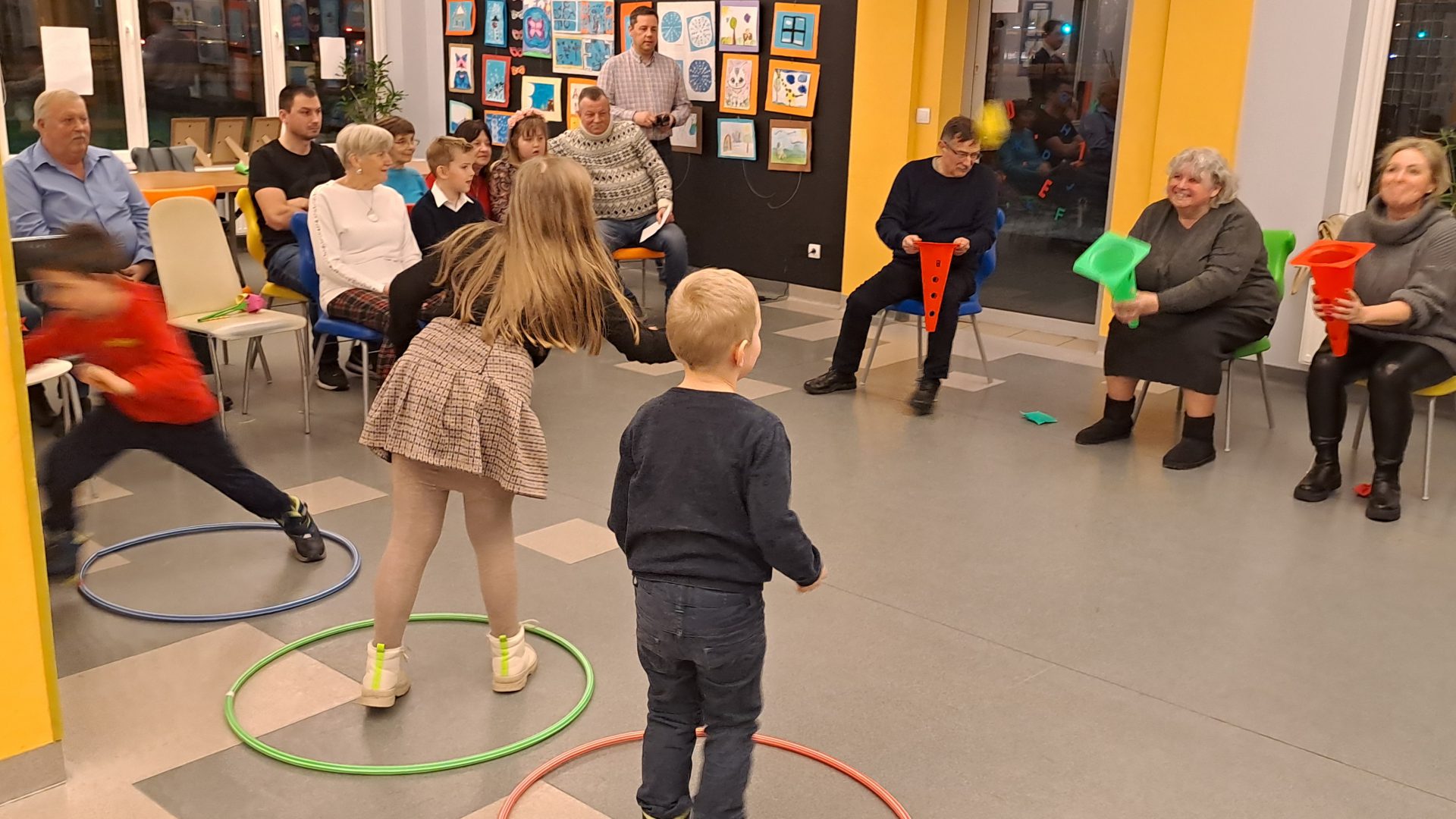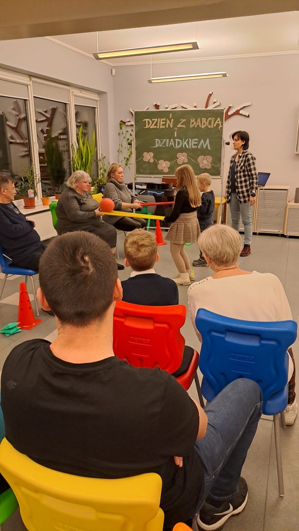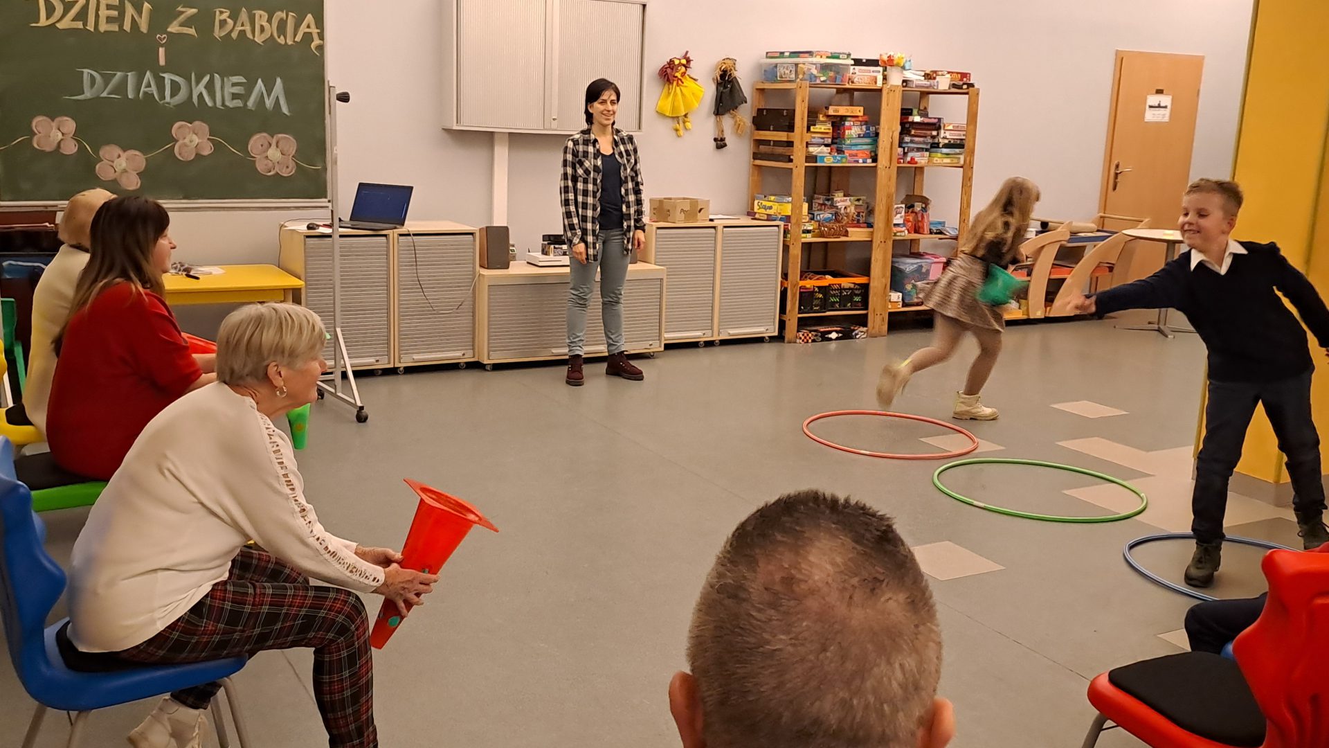 Dzień z Babcią i Dziadkiem był miłym czasem integracji międzypokoleniowej dzieci ze swoimi dziadkami. Wspólnie wykonywały kwiatka dla Babci i Dziadka, a także brały udział w rodzinnych sportowych konkurencjach. Dziadkowie mogli też sprawdzić wiedzę na temat swoich wnuków, m.in. ile mierzą czy jakie najlepsze ciasto piecze babcia. Wydarzenie uświetniły dwa występy naszych wychowanków – muzyczno-teatralny oraz taneczny, które dostarczyły wielu wzruszeń i powodów do dumy z naszych wychowanków! Nie mogło zabraknąć również humorystycznej „Familiady”, w której wzięli udział dziadkowie ze swoimi wnukami. Śmiechu było co nie miara, dziękujemy za obecność, chwile rozmowy i radości ze spędzania rodzinnego czasu w naszej świetlicy.