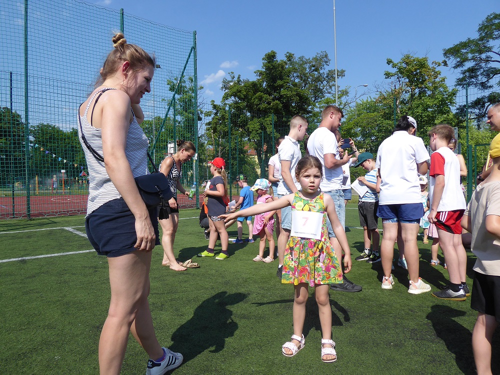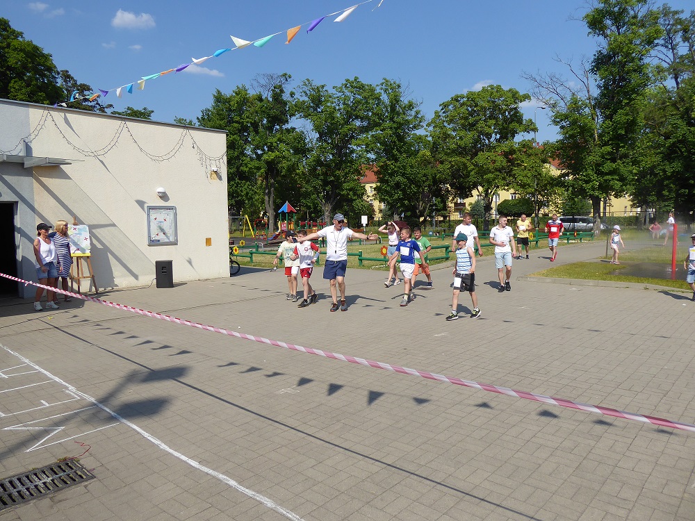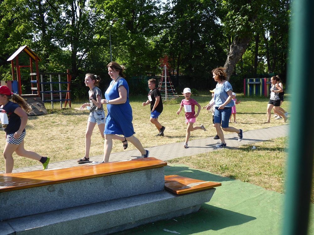 Nauczyciele przygotowali i przeprowadzili największą atrakcję festynu – PIERWSZY RODZINNY BIEG JORDANA, który cieszył się dużą liczbą uczestników. Bieg zintegrował rodziców, opiekunów i dzieci. Uczestnicy biegu otrzymali złote medale i upominki.