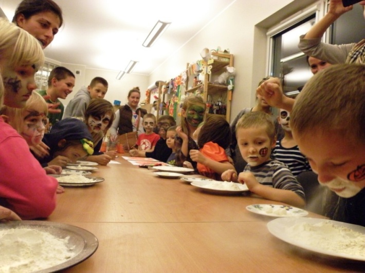 Uczestnicy chętnie i z wielkim entuzjazmem wykonali lampiony z dyni, szukali cukierków w mące, tańczyli z miotłą, tworzyli mumie i uczestniczyli w zabawie. Największą atrakcją okazała się możliwość wymalowania twarzy i zaprezentowanie kostiumów halloween’owych.
