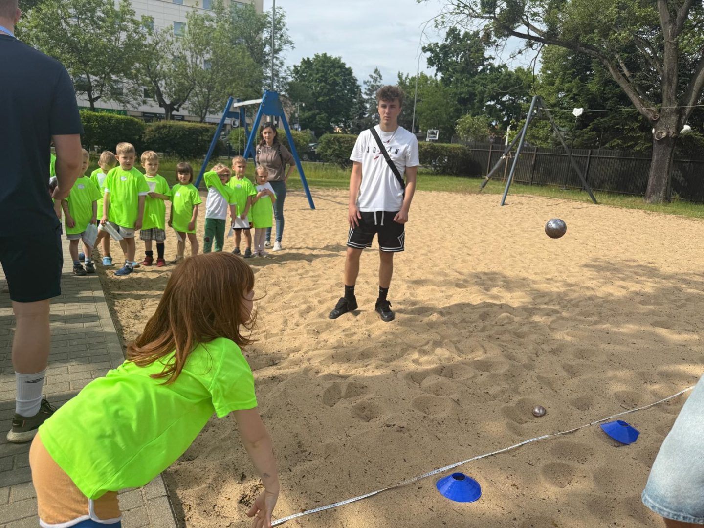 b) pchnięcie kulą – konkurencja polega na oddaniu jak najdalszego rzutu sprzed wyznaczonej linii kulą trzymając oburącz i wyrzucaną przed siebie. Będzie rozgrywana na placu zabaw (od ulicy Bukowskiej). Miejsce, w którym rozegra się konkurencja, będzie oznaczone tablicą.
