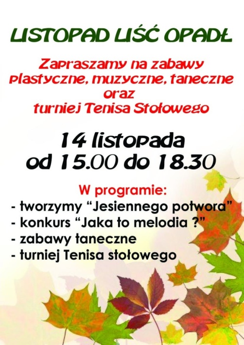 Impreza „Listopad liść opadł” i turniej tenisa stołowego – 14-11-2012