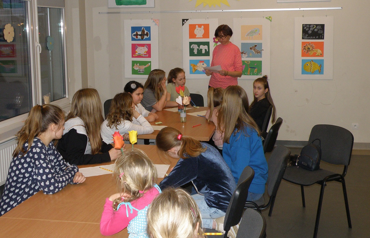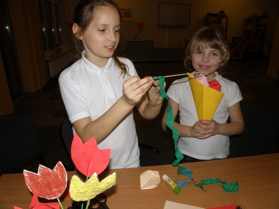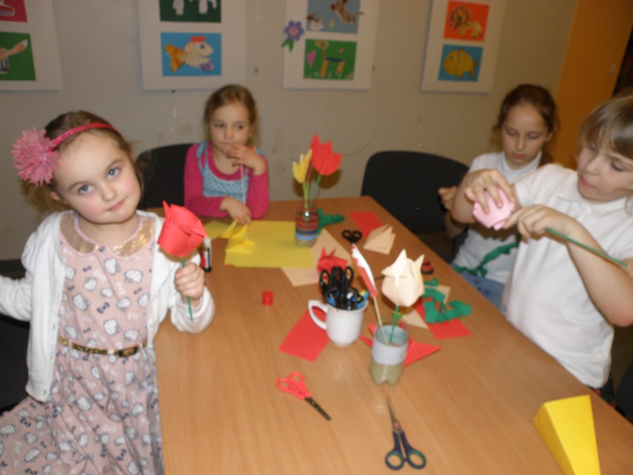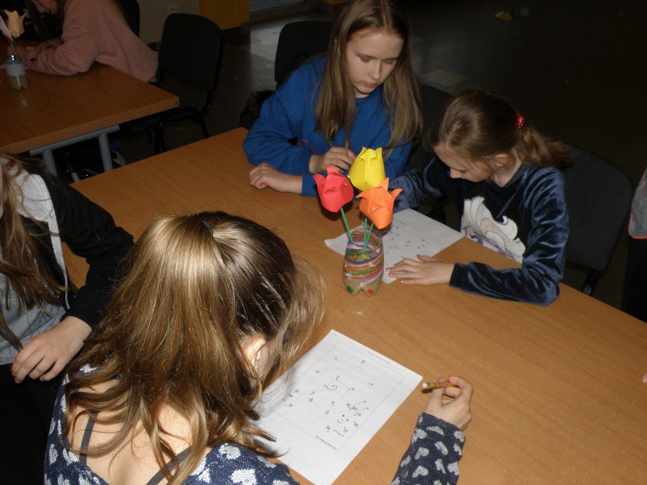 Na zakończenie odbyły się warsztaty plastyczne na których zostały wykonane kwiaty z papieru w technice origami.