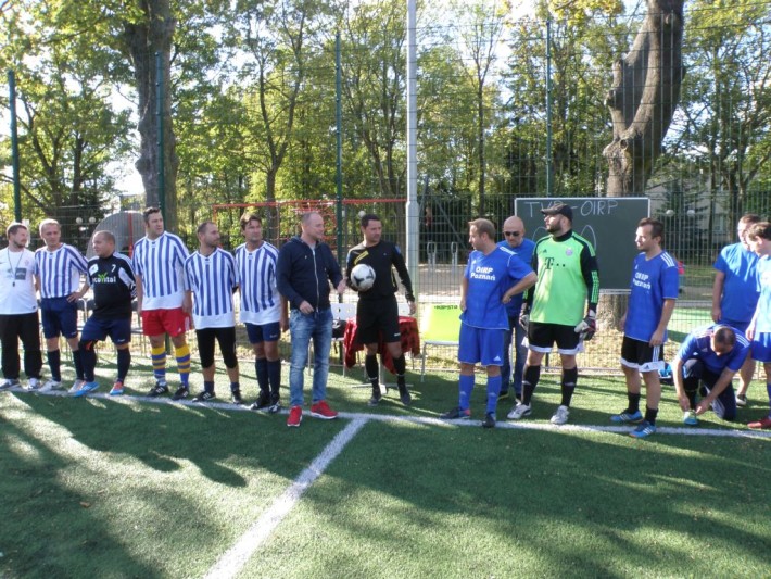 Początek spotkania był bardzo wyrównany i długo utrzymywał się bezbramkowy remis, a worek z bramkami otworzył się pod koniec pierwszej połowy. Radcy prawni po trafieniach Sławomira Parusa wyszli na prowadzenie 2:0, ale po zamieszaniu w polu karnym OIRP kontaktowego gola zdobył Tomasz Woźniak. W ostatniej akcji pierwszej połowy idealna okazję na doprowadzenie do remisu zmarnował Daniel Pajączkowski.