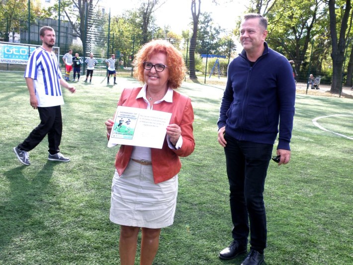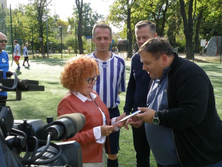 Natomiast w przerwie spotkania doszło do miłej uroczystości. Dziekan Okręgowej Izby Radców Prawnych w Poznaniu Zbigniew Tur wraz z Danielem Pajączkowskim z TVP Poznań przekazali na ręce dyrektor placówki Grażyny Lück – Kubalewskie symboliczny czek będący darowizną dla Ogrodu Jordanowskiego Nr 2. – Wiemy jak potrzebna jest wszelka pomoc naszym obywatelom, a przede wszystkim tym najmłodszym. Cieszymy się, że oprócz możliwości oderwania się od takiej codzienności i zawodowych obowiązków poprzez grę w piłkę nożną podczas „Kolorowego meczu” możemy wspomóc to miejsce – mówił Tur.