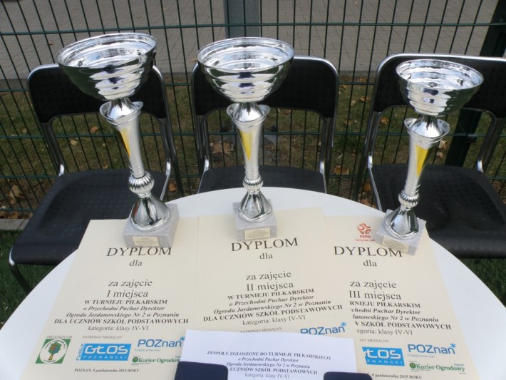 Najlepsze zespoły otrzymały puchary, które wręczył nauczyciel Tomasz Woźniak wraz z przewodniczącym Samorządu Uczniowskiego placówki Jakubem Michalakiem , a każdy zespół pamiątkowy dyplom. Wszystkie nagrody ufundował Ogród Jordanowski Nr 2. Patronat medialny nad Turniejem o Puchar Dyrektor Ogrodu Jordanowskiego Nr 2 sprawowały media: dwutygodnik „Nasz Głos Poznański”, gazeta dzielnicy „Kurier Ogrodowy”, oficjalny serwis miasta Poznan.pl.