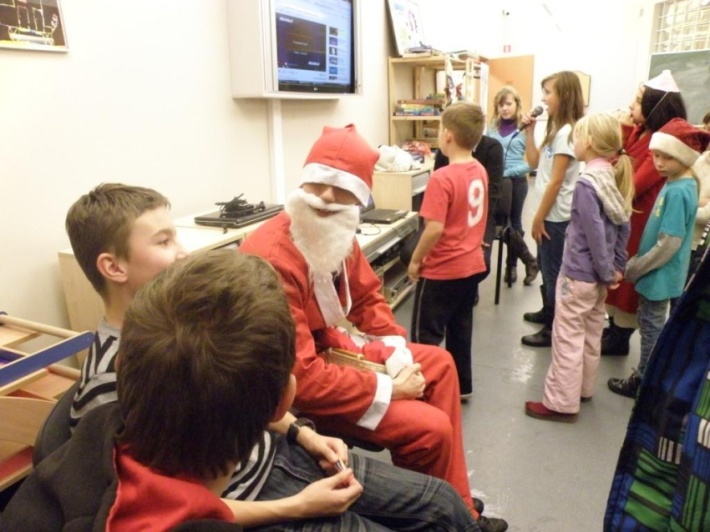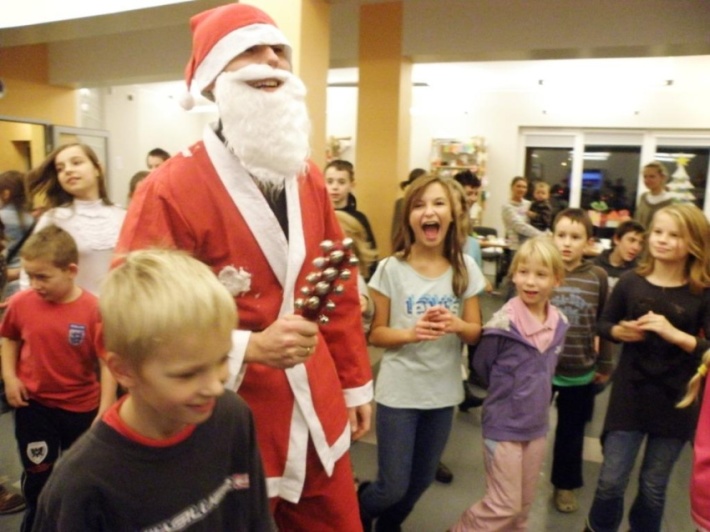 Mikołaj porozmawiał z każdym dzieckiem i nagrodził upominkiem. Zabawa trwała do zamknięcia świetlicy, przeplatana była atrakcjami muzycznymi i karaoke.