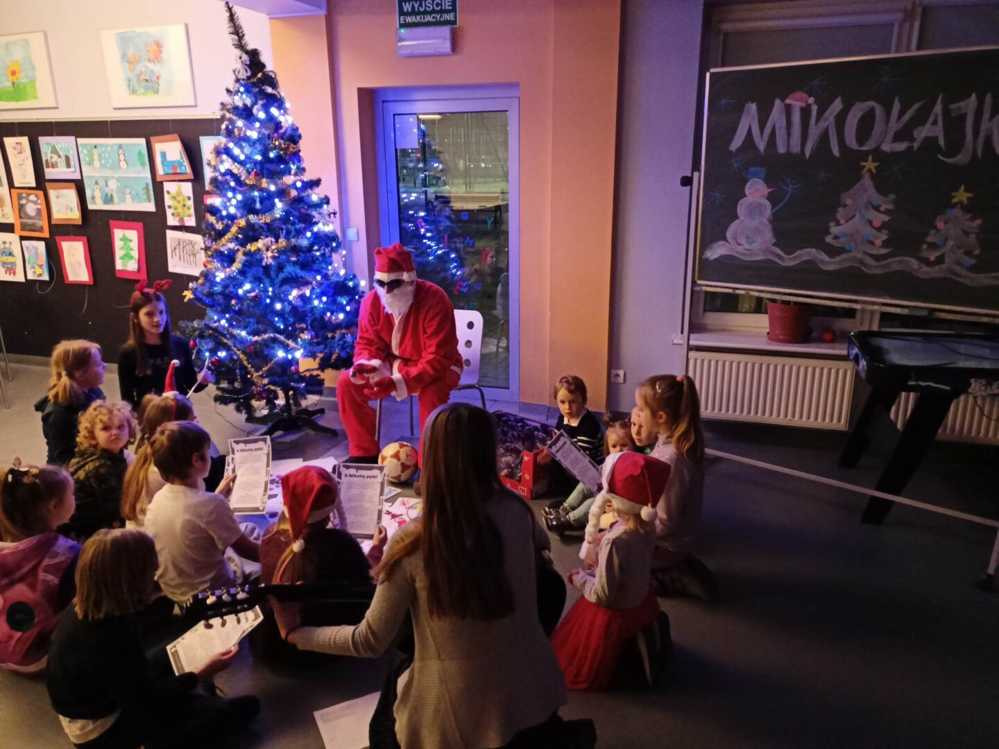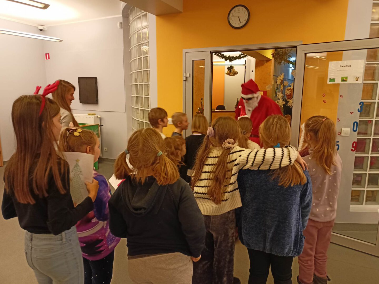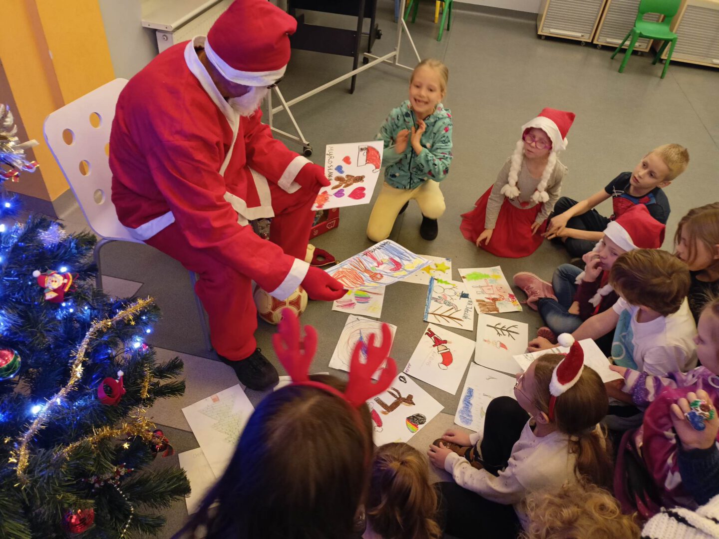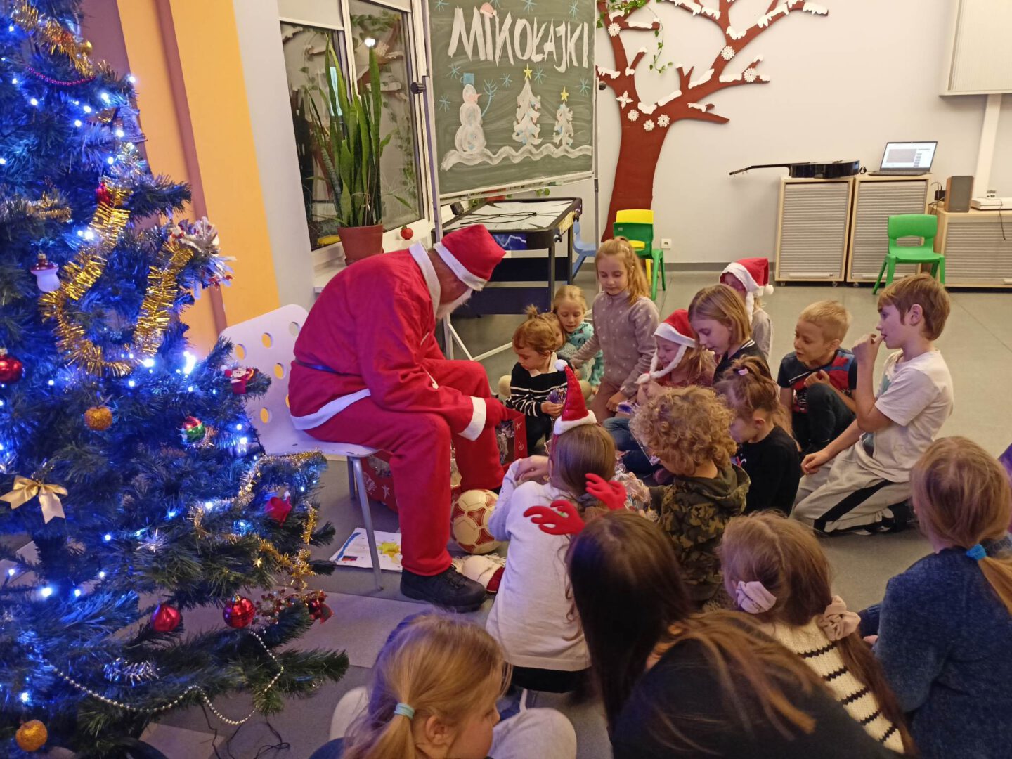 Dziś po południu naszą świetlicę odwiedził sam św. Mikołaj! Dzieci wręczyły mu pięknie wykonane laurki, zaśpiewały piosenkę i wzięły udział w zimowych zabawach ruchowych i tanecznych. Mikołaj rozdał wszystkim uczestnikom słodkie upominki, a uśmiech nie znikał nikomu z twarzy.