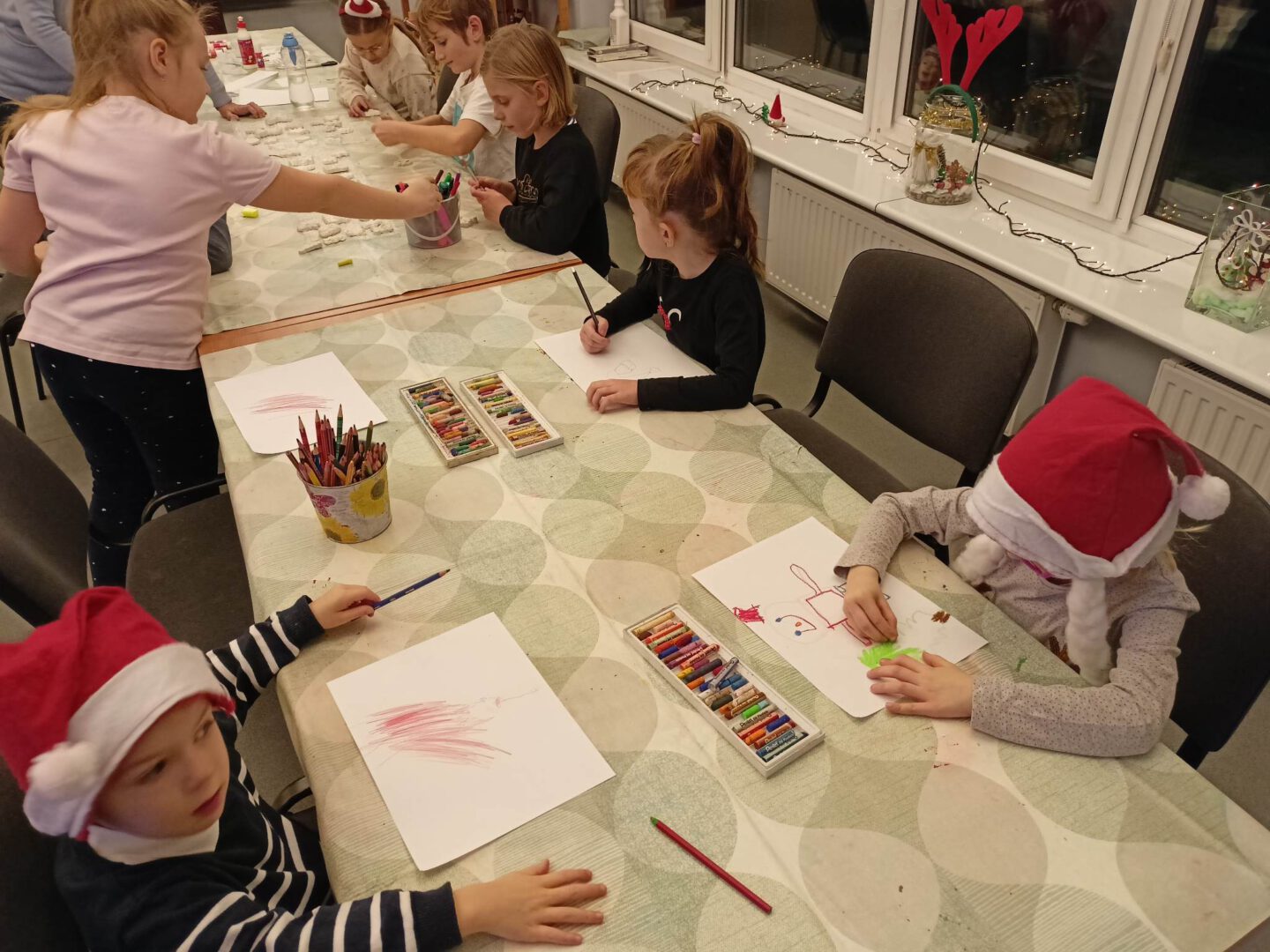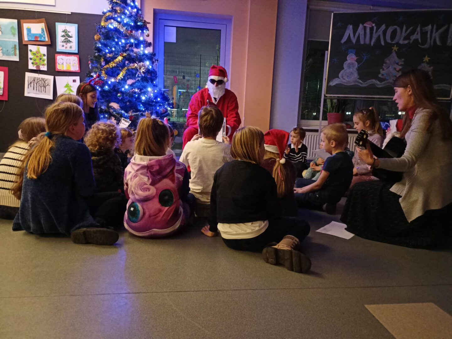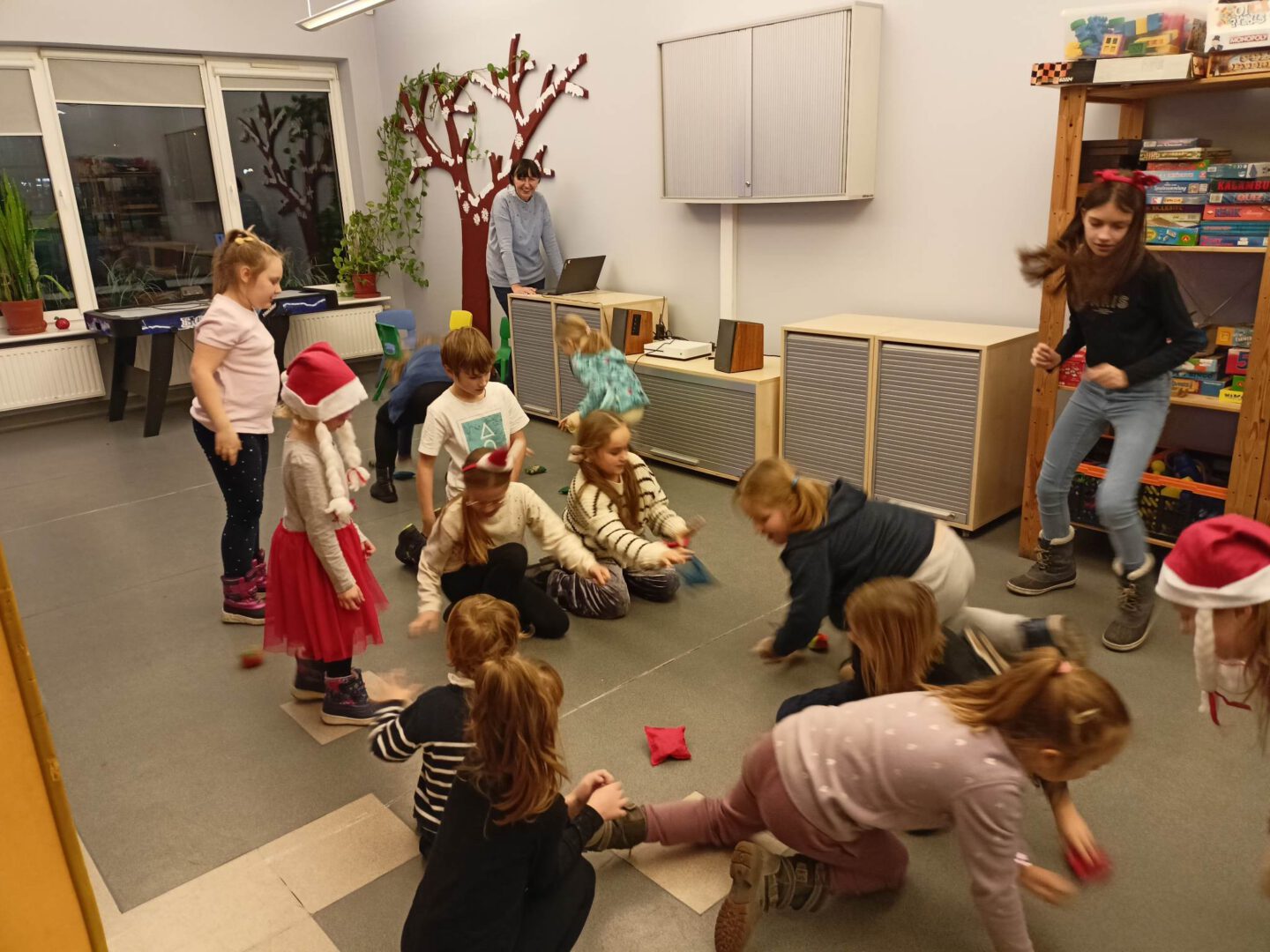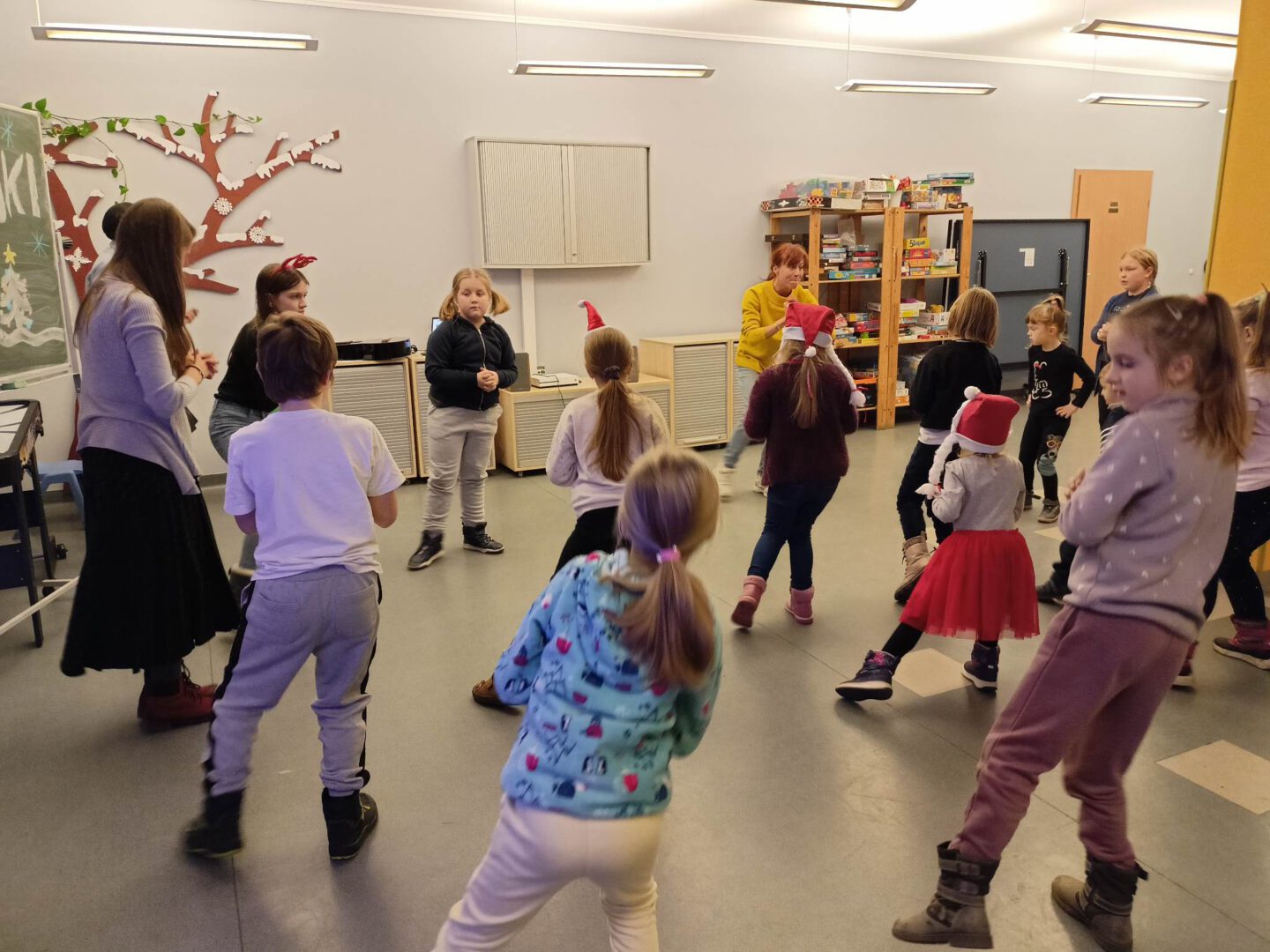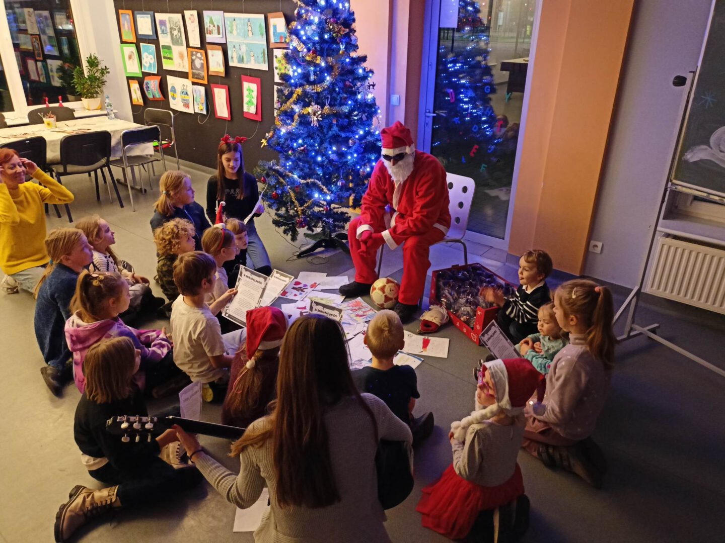 Dziś po południu naszą świetlicę odwiedził sam św. Mikołaj! Dzieci wręczyły mu pięknie wykonane laurki, zaśpiewały piosenkę i wzięły udział w zimowych zabawach ruchowych i tanecznych. Mikołaj rozdał wszystkim uczestnikom słodkie upominki, a uśmiech nie znikał nikomu z twarzy.
