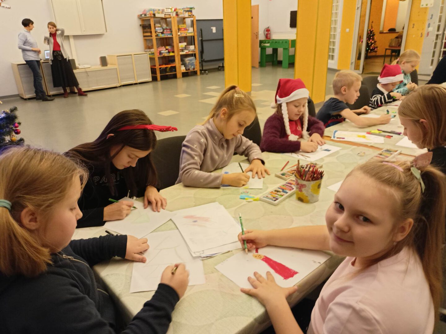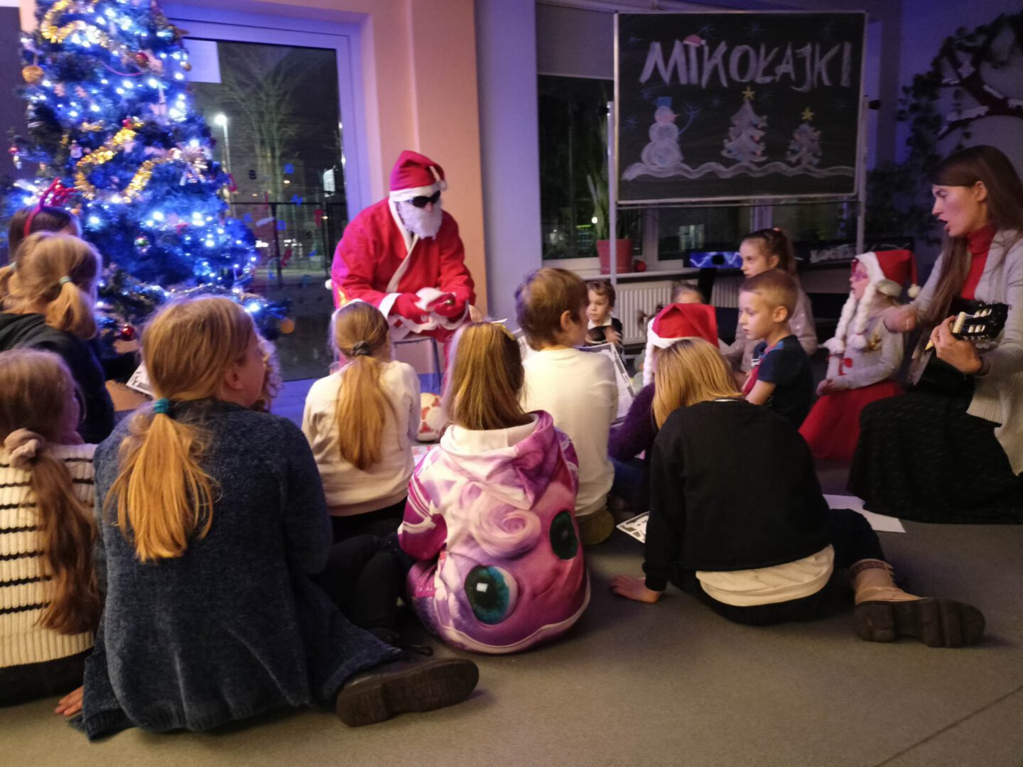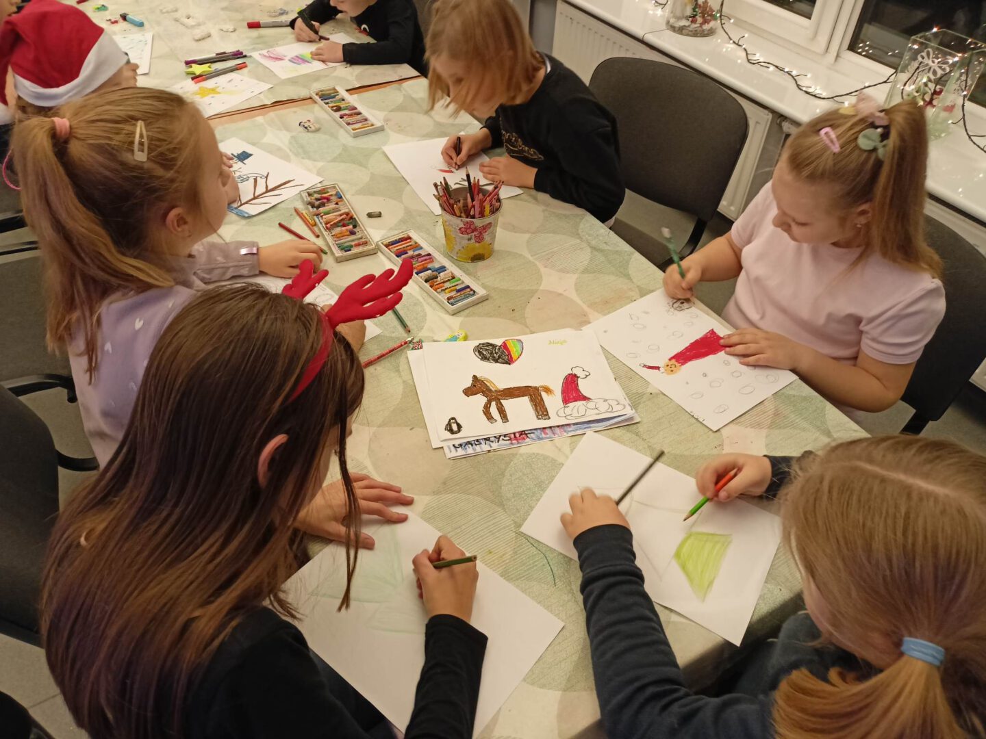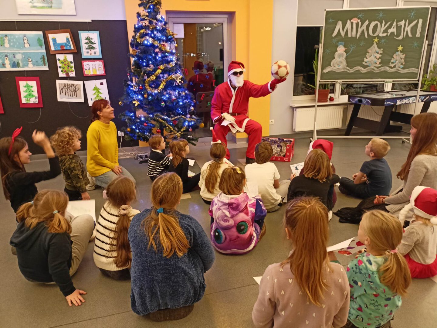 Dziś po południu naszą świetlicę odwiedził sam św. Mikołaj! Dzieci wręczyły mu pięknie wykonane laurki, zaśpiewały piosenkę i wzięły udział w zimowych zabawach ruchowych i tanecznych. Mikołaj rozdał wszystkim uczestnikom słodkie upominki, a uśmiech nie znikał nikomu z twarzy.