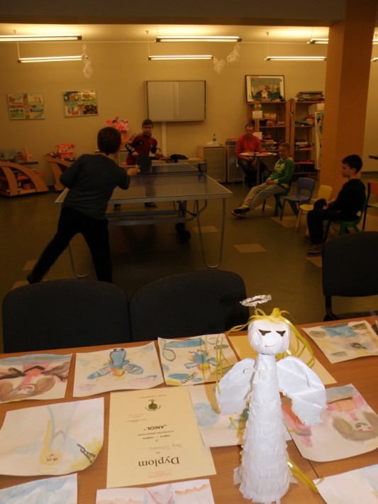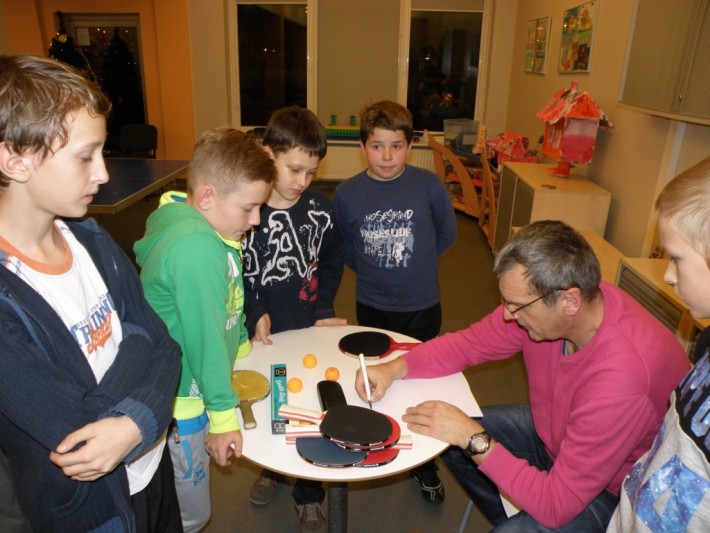 Mikołajkowy Turniej Tenisa Stołowego został rozegrany w dwóch kategoriach wiekowych,  systemem „każdy z każdym”. Z konkursem plastycznym w tle zmagania przebiegały z uśmiechem na ustach, z paletką w dłoni lub z pędzlem. Była atmosfera sportowa i artystyczna, wysiłkowi towarzyszył relaks. Zmagania nagrodzone zostały dyplomami i drobnymi upominkami. Kibiców też nie zabrakło, szczególnie wśród płci pięknej.