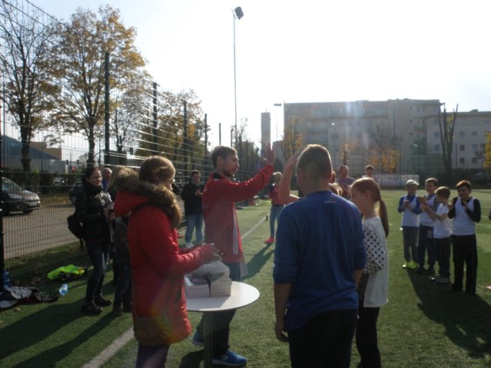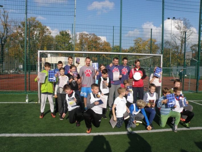 Każdy uczestnik otrzymał nagrodę, zdrową przekąskę. Nie zabrakło podziękowań dla Szkoły Podstawowej nr 27 za uczestnictwo w turnieju i dla zespołu „UWAGA PIES”. Zawodnicy świetnie włączyli się w turniej pokazując w przerwach między meczami technikę rzutów, sposoby zachowania się na boisku. Po rozdaniu nagród rozegrano mecz zawodników z uczniami SP 27 oraz wychowankami OJ2.