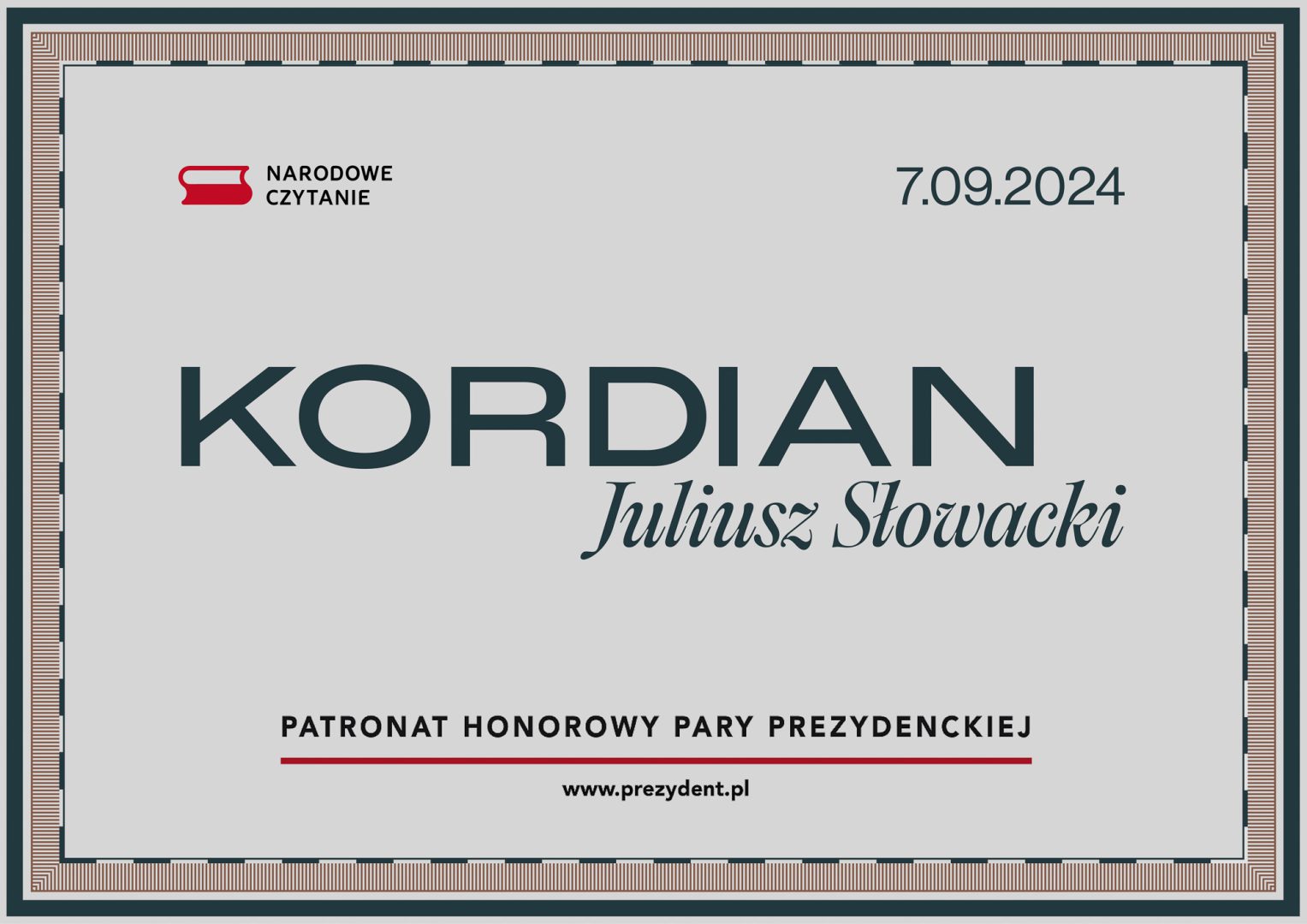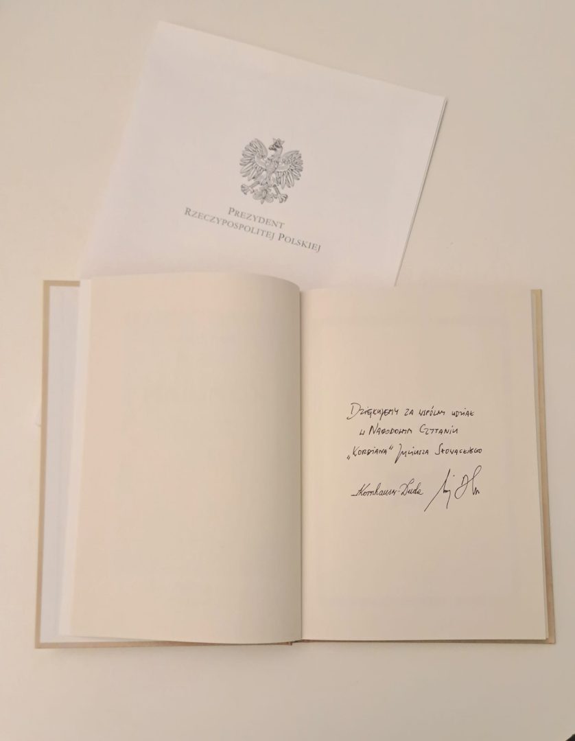 Zespół Ogrodów Jordanowski dostał podziękowanie od Prezydenta RP oraz limitowany egzemplarz książki J. Słowackiego „Kordian”, za udział w akcji Narodowe Czytanie 2024.