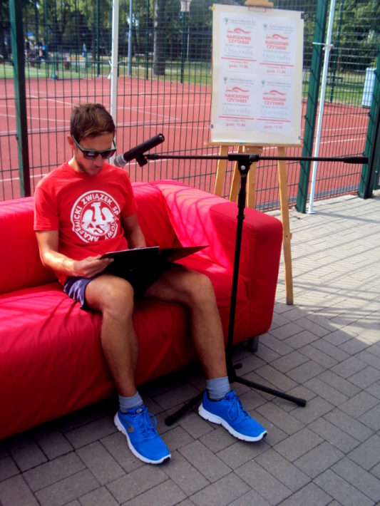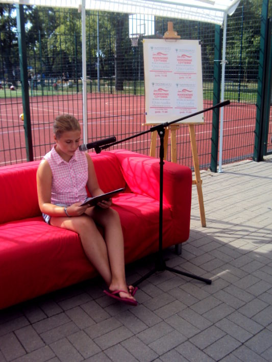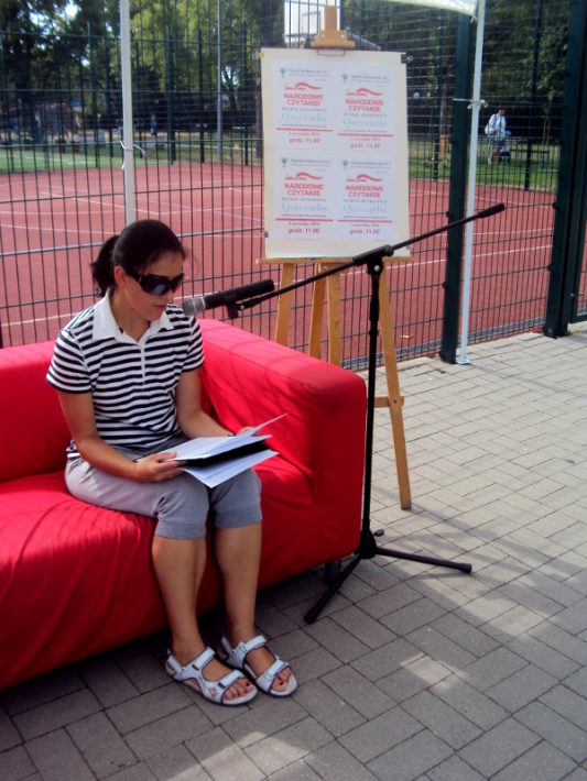 Narodowe Czytanie w OJ nr 2 w Poznaniu - 00– Narodowe Czytanie to wspaniałe spotkanie wielu osób w całej Polsce, tego samego dnia i w zbliżonych godzinach – w celu pielęgnowania polskiej literatury oraz wzmocnienia tożsamości i dumy narodowej. Gorąco zachęcam wszystkich Państwa do wspólnego czytania „Quo vadis” w dniu dzisiejszym w Ogrodzie Jordanowskim nr 2 w Poznaniu. Po książkę można sięgnąć również w domowym zaciszu – zachęcała poznaniaków dyrektor placówki, Grażyna Lück – Kubalewska. „Quo vadis” czytali poznaniacy wypoczywający w tym miejscu, sportowcy, wychowankowie placówki i nauczyciele.