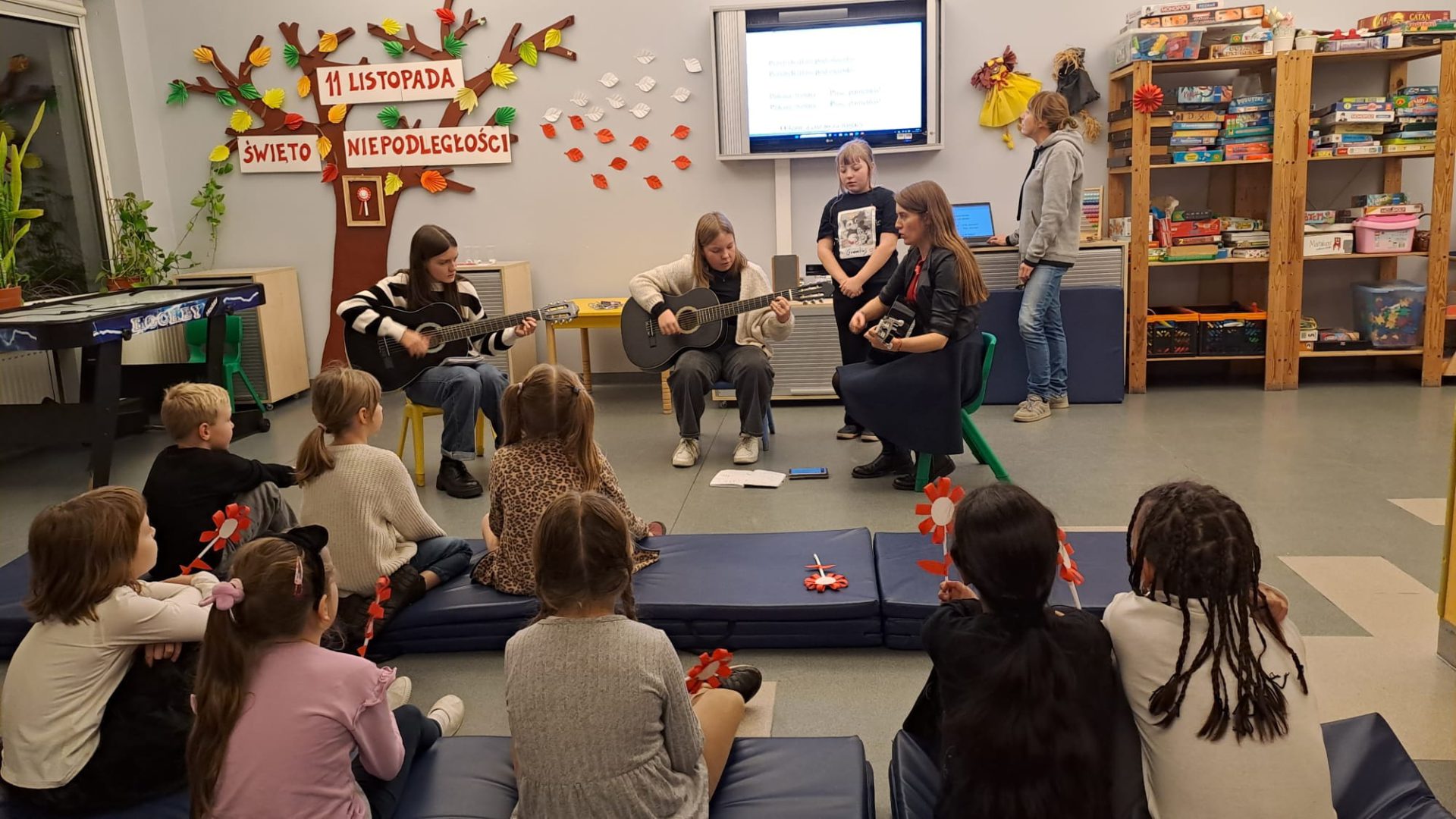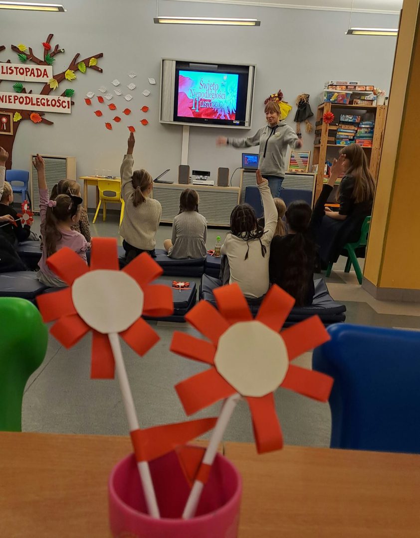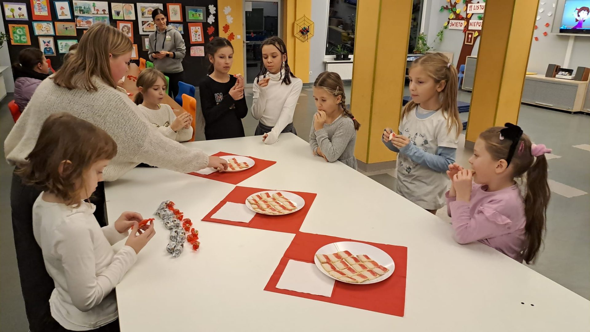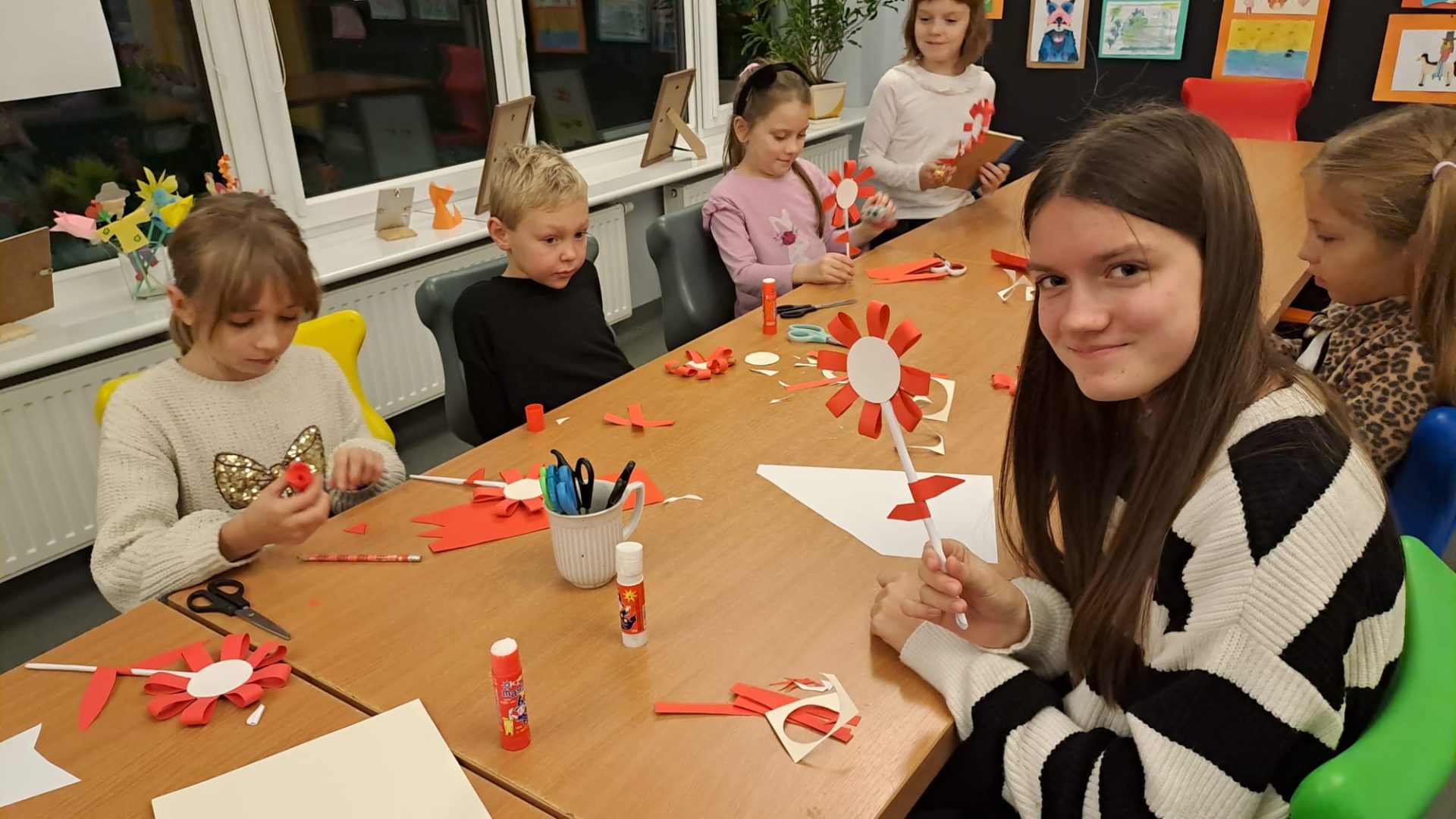Świętowanie Święta Niepodległości w naszej świetlicy miało biało-czerwone barwy. 🇵🇱 Dzieci wykonały piękne, niepodległościowe kwiaty, wysłuchały występu patriotycznego przy akompaniamencie gitar, dowiedziały się, co to znaczy być patriotą, brały udział w sportowych konkurencjach, w których miały okazję wykazać się wiedzą z historii Polski. Po mocy atrakcji na zakończenie czekały biało-czerwone ciasteczka. Dziękujemy za świetną zabawę i wspólne świętowanie ważnego dnia dla wszystkich Polaków!