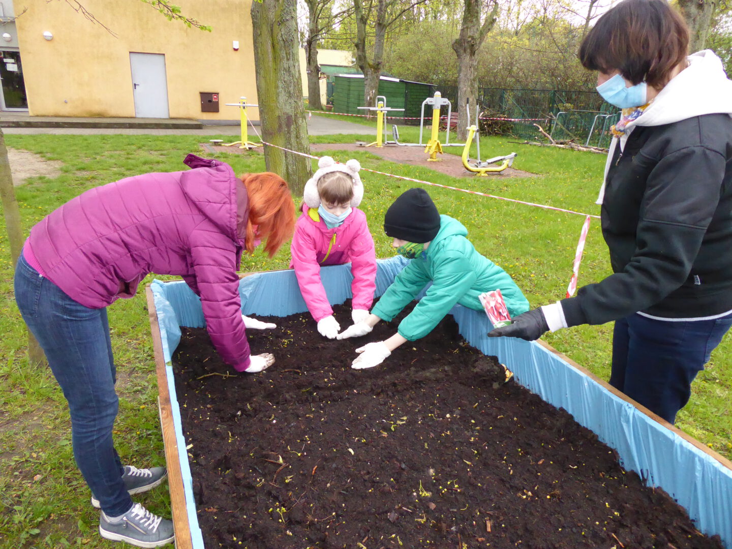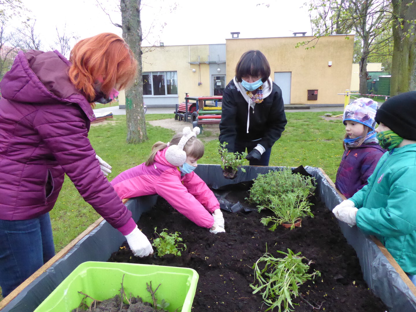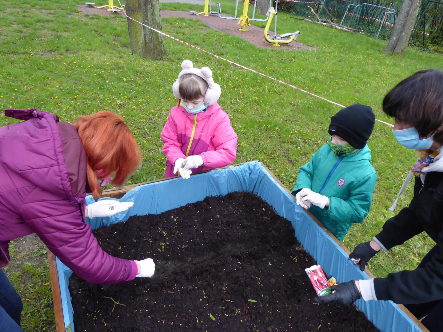 WIOSNA 2021. Pomimo deszczu i zimna, dzieci przy cennych uwagach pani Joanny z Ogrodu Botanicznego zasadziły pierwsze rośliny w naszym Ogrodzie Edukacyjnym. Teraz przyjdzie czas na obserwację ich wzrostu w rabatach. Zapraszamy dzieci i ich rodziców do wspólnych działań, niech dbanie i szanowanie ogrodów oraz obserwacja stanie się źródłem wiedzy o tym, jak wygląda wegetacja roślin przez cztery pory roku.