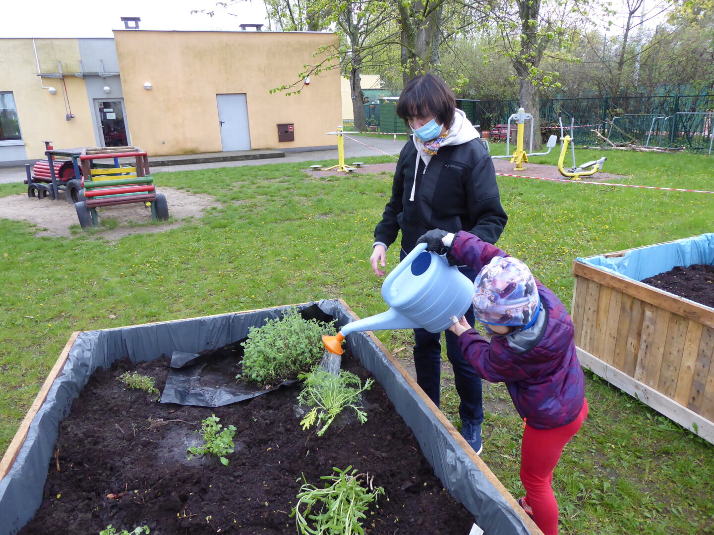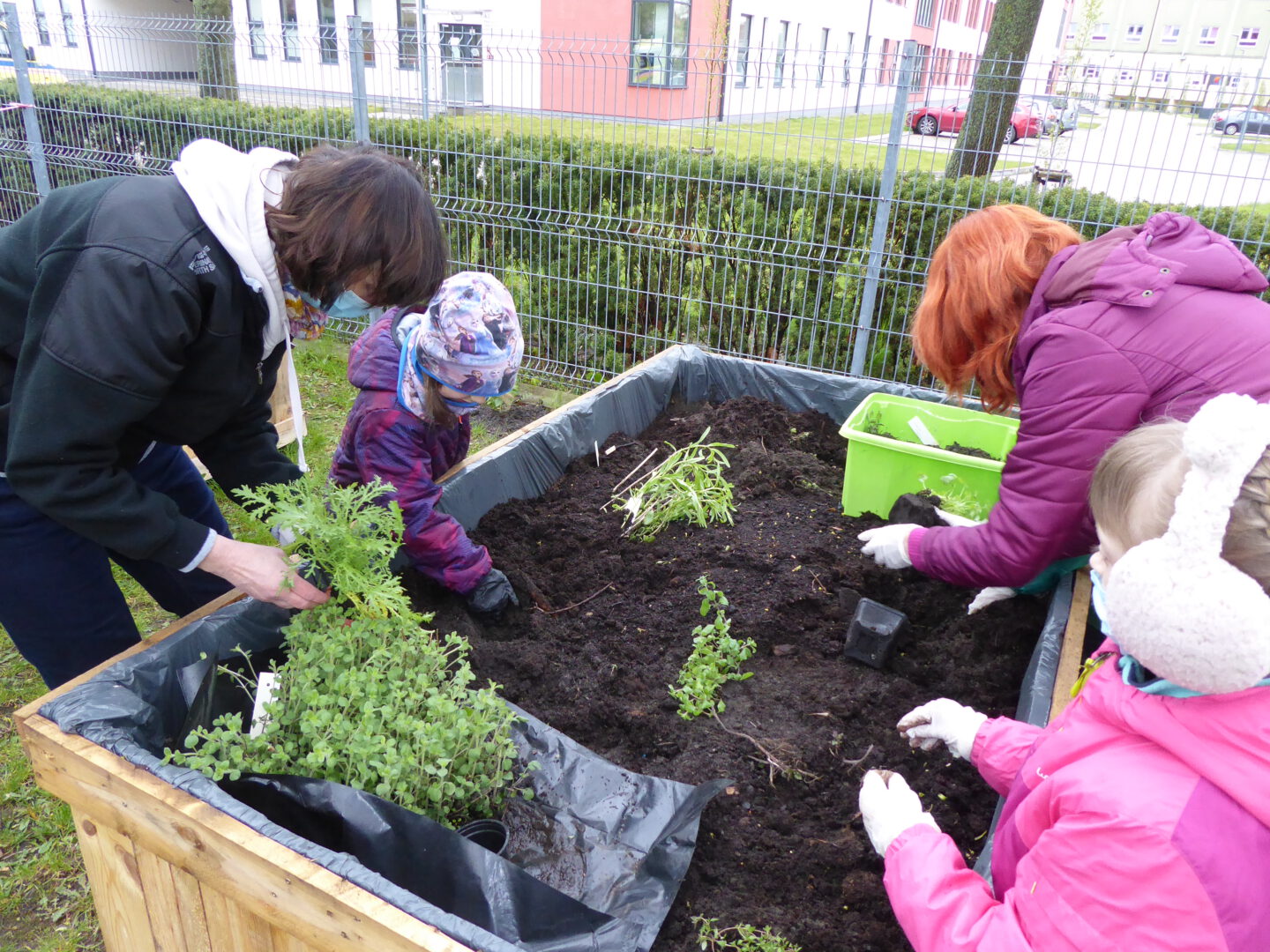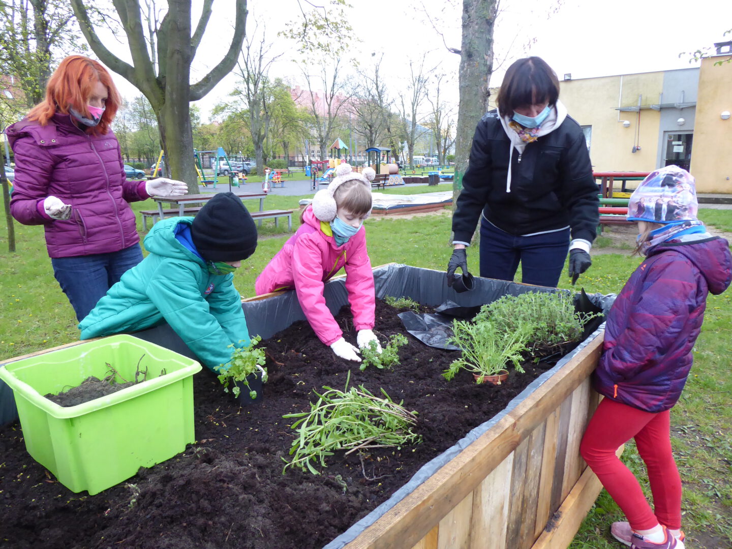 Wychowankowie posprzątali i przesadzili wyhodowane przez siebie warzywa. Rabata z ziołami rozrosła się na wiosnę.