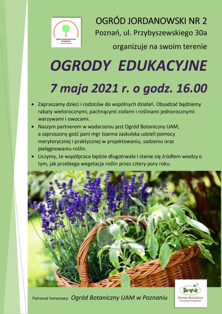Ogrody edukacyjne to atrakcyjne miejsce rekreacyjno- edukacyjne dla mieszkańców miasta. Są one polem do obserwacji przyrody i nauki ogrodnictwa, a w dobie narastających problemów ekologicznych pomagają kształtować właściwe postawy wobec natury. Ponadto wspólne budowanie publicznej przestrzeni zielonej rozwija obywatelską aktywność i odpowiedzialność. Na terenie placówki, w wyznaczonym miejscu, zostały założone dwa stanowiska.