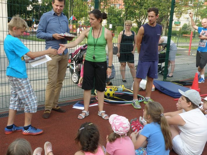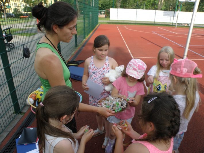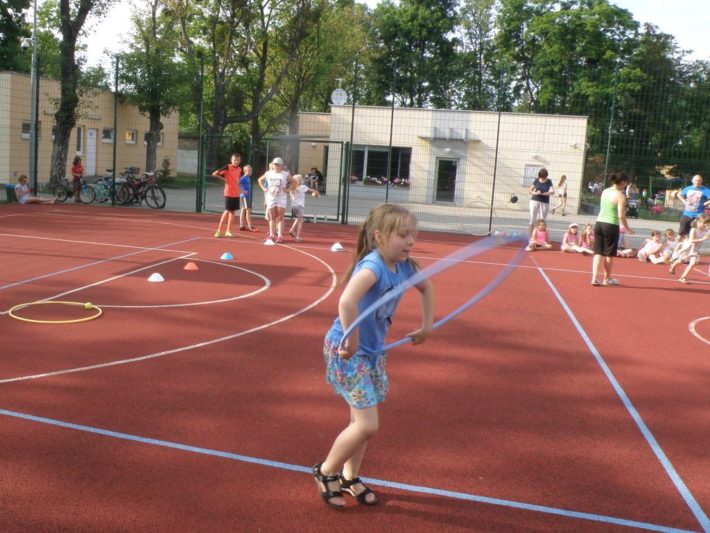 Jak zawsze dopisało nam śliczne słonko i wielu uczestników, spośród których wyłoniono zwycięzców w dwóch kategoriach wiekowych. W pierwszej kolejności zawodnicy zmagali się w 3 zadaniach sportowych, między innymi skakanie przez hula-hop. Zwycięzcą w kategorii 5-7 lat okazała się Nadia Filipiak, natomiast w kategorii do lat 12 Oskar Rosal. Drugim zadaniem uczestników było pokonanie toru przeszkód w jak najkrótszym czasie, w kategorii dzieci młodszych wygrała Zuzanna Paluszkiewicz, a w grupie starszych Filip Mazur. Zwycięzcą gratulujemy natomiast wszystkim dziękujemy za udział i przesympatyczną atmosferę zawodów.