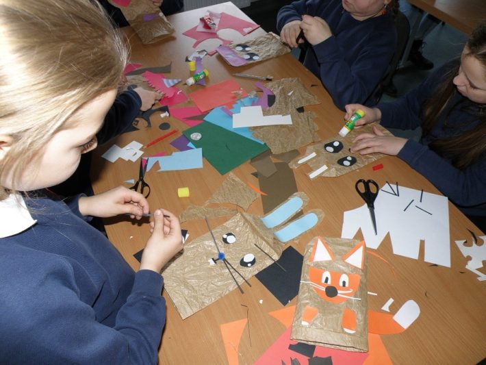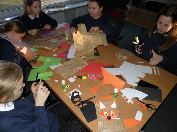 Warsztaty plastyczne na których dzieci wykonały pacynki z szarego papieru pozwoliły uczestnikom zajęć rozbudzić wyobraźnię. Wspólnie wymyślony scenariusz do krótkiego przedstawienia o życiu zwierząt i ich relacjach w Zwierzogrodzie, pozwolił na kreatywną zabawę. Wykonane prace na trwałe ozdobiły świetlicę.
