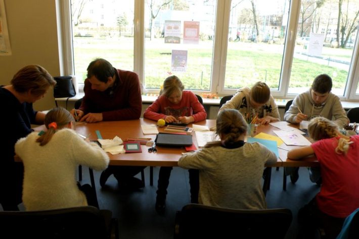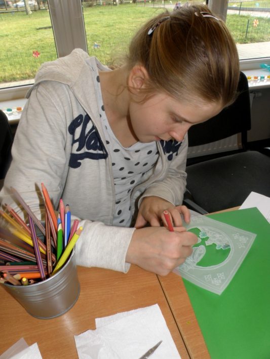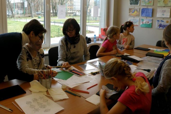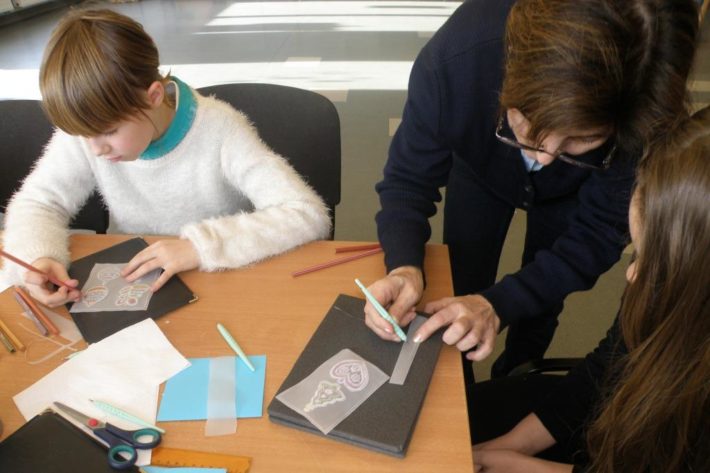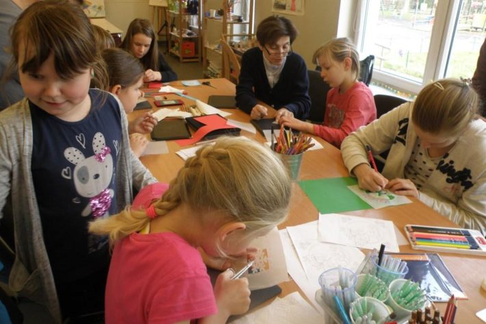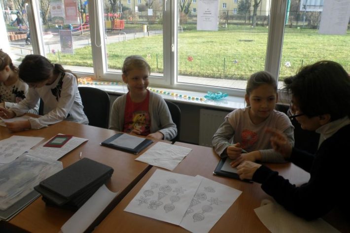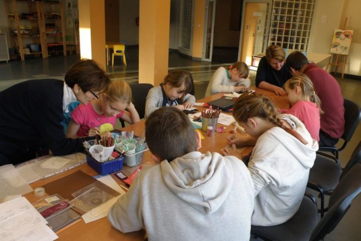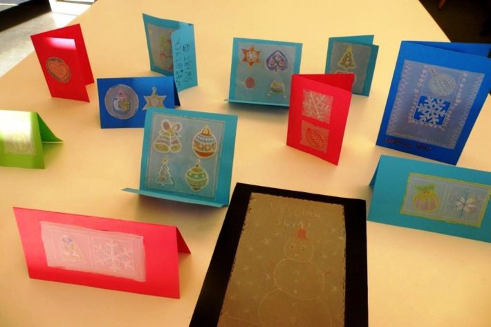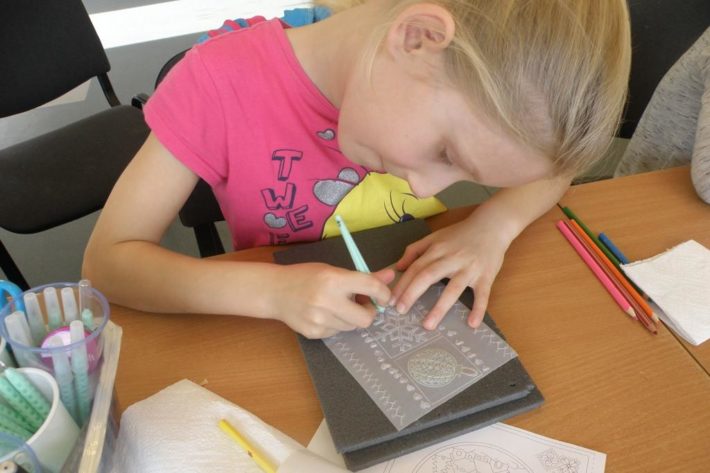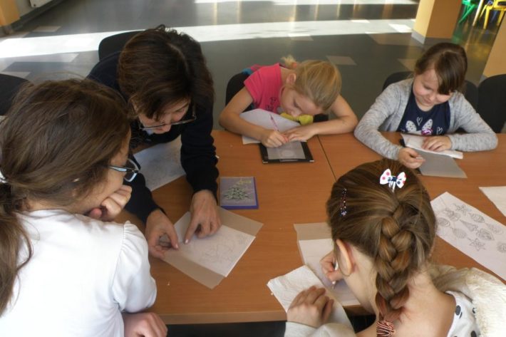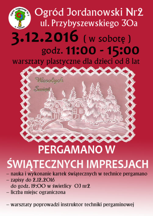 Druga edycja warsztatów pergamano miała tematykę świąteczną. Technika zdobienia pergaminu rodem z Holandii cieszyła się dużym zainteresowaniem zarówno dzieci jak i rodziców. Praca twórcza łącząca pokolenia wymagała cierpliwości i skupienia. Powstały subtelne i dekoracyjne prace. Warsztaty poprowadziła pani mgr Danuta Sęk instruktor pergamano. W sposób merytoryczny wyjaśniała zawiłości i sposoby zdobienia pergaminu.