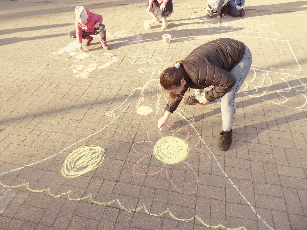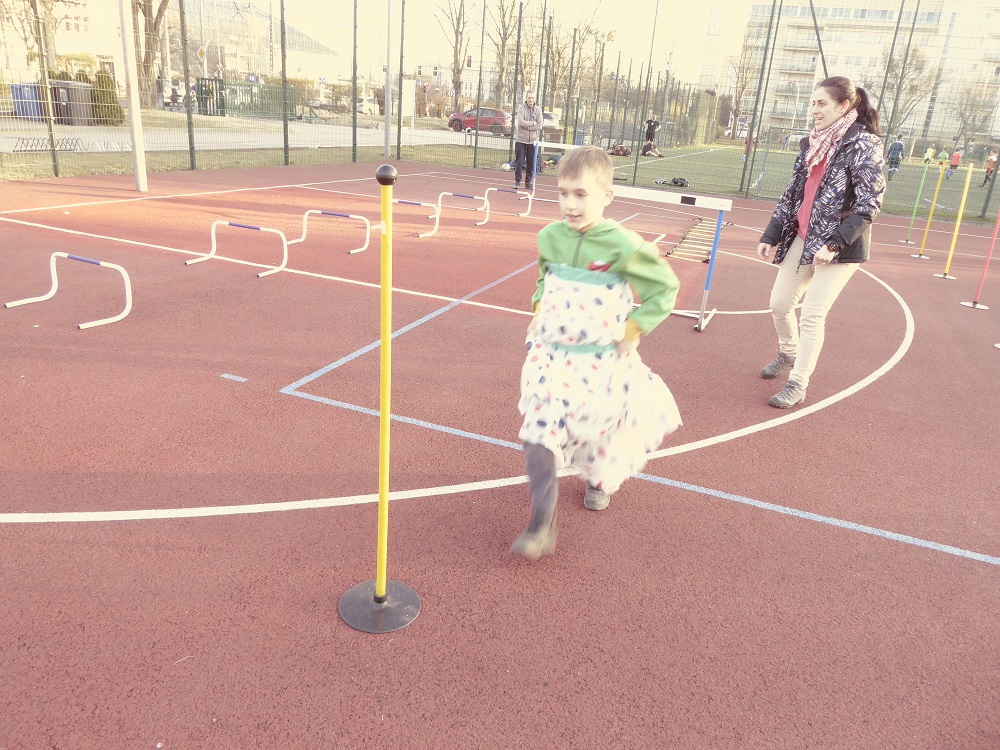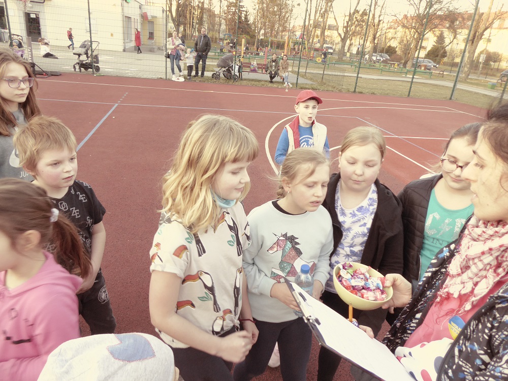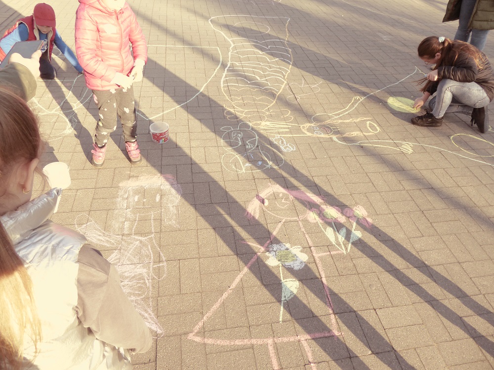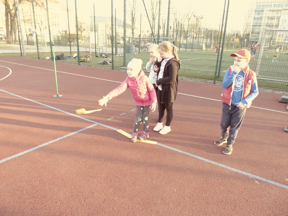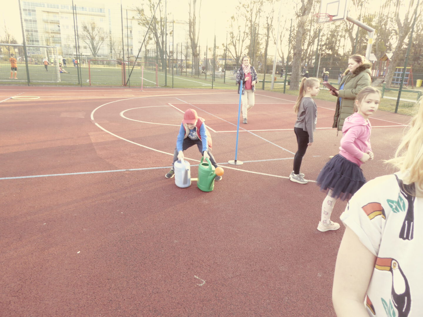 Piękna pogoda sprzyjała sportowym zawodom , które odbyły się na boisku Orlik z okazji rozpoczynającej się kalendarzowej wiosny. Wszystkie konkurencje miały wiosenny podtekst. Uczestnicy biegali na czas z konewkami, przenosili piłki trzymając w ręce kwiat, rzucali grabkami w dal i rywalizowali w slalomie ubrani w suknię Marzanny. Zabawie towarzyszyła ambitna, sportowa rywalizacja z uśmiechem na twarzy. Na zakończenie zawodów wszyscy uczestnicy rysowali kredami panią Wiosnę z kwiatami we włosach.