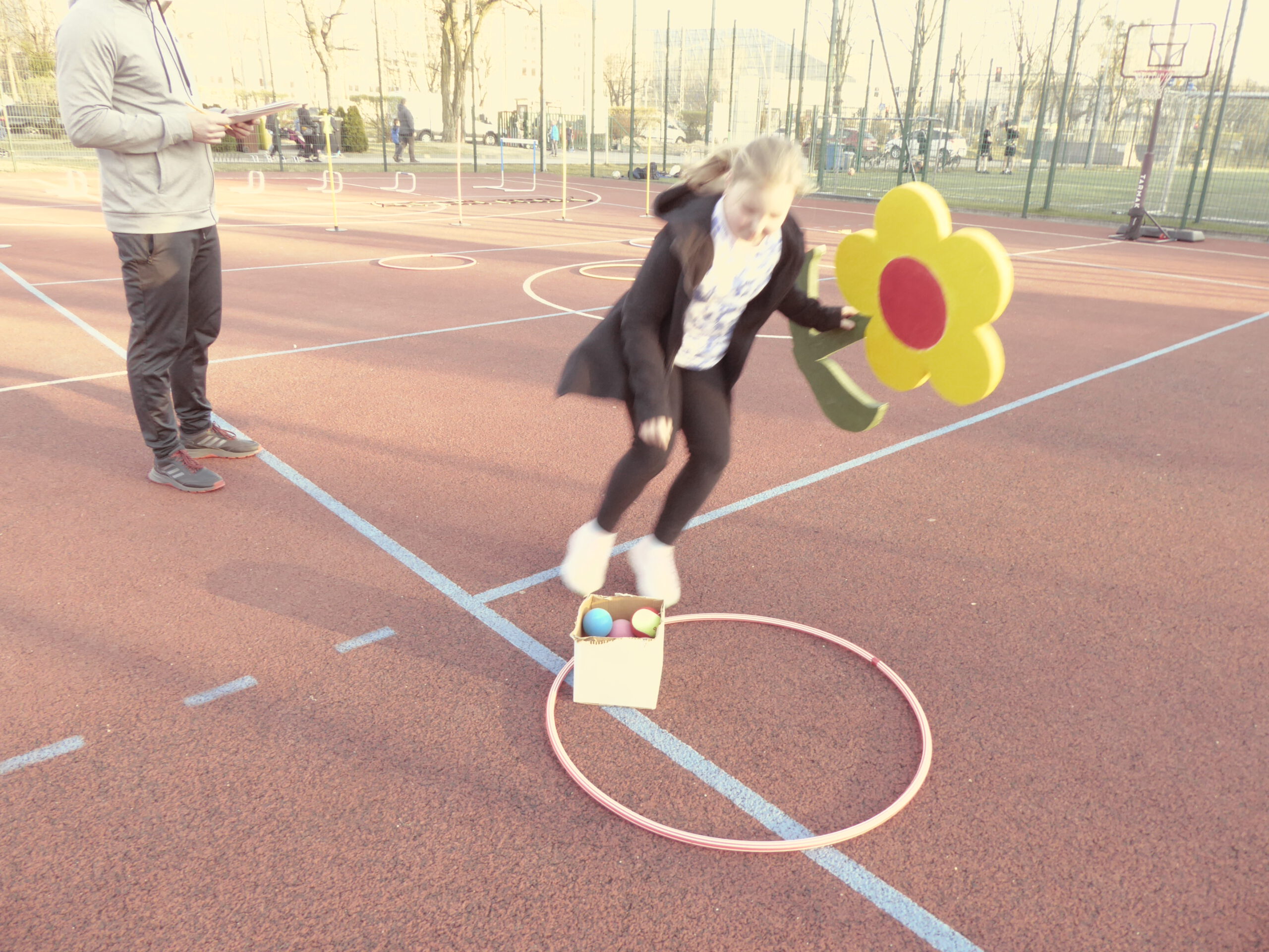 Piękna pogoda sprzyjała sportowym zawodom , które odbyły się na boisku Orlik z okazji rozpoczynającej się kalendarzowej wiosny. Wszystkie konkurencje miały wiosenny podtekst. Uczestnicy biegali na czas z konewkami, przenosili piłki trzymając w ręce kwiat, rzucali grabkami w dal i rywalizowali w slalomie ubrani w suknię Marzanny. Zabawie towarzyszyła ambitna, sportowa rywalizacja z uśmiechem na twarzy. Na zakończenie zawodów wszyscy uczestnicy rysowali kredami panią Wiosnę z kwiatami we włosach.
