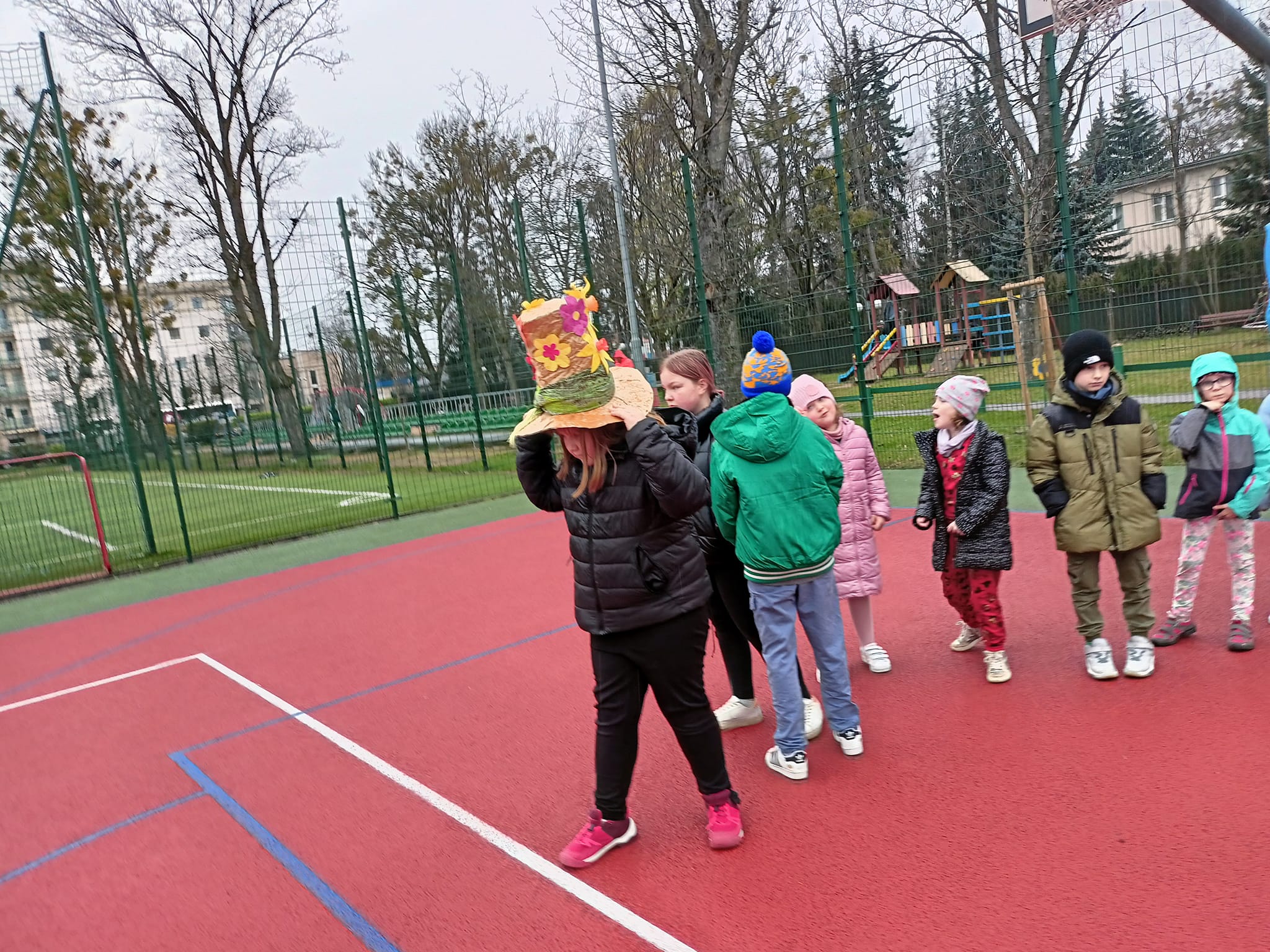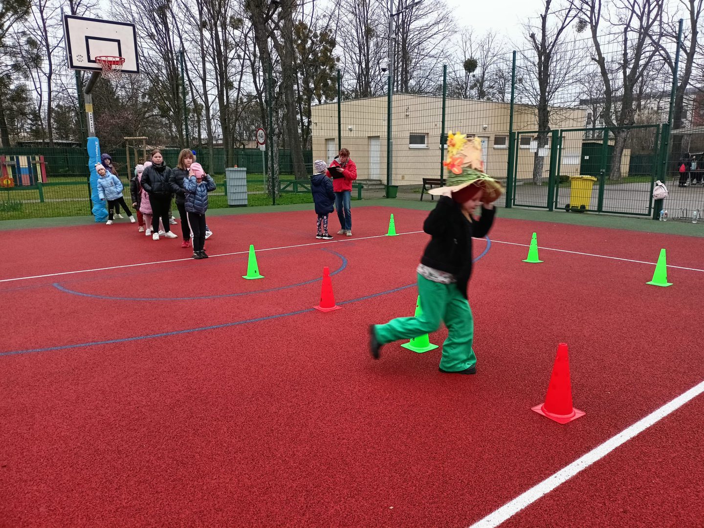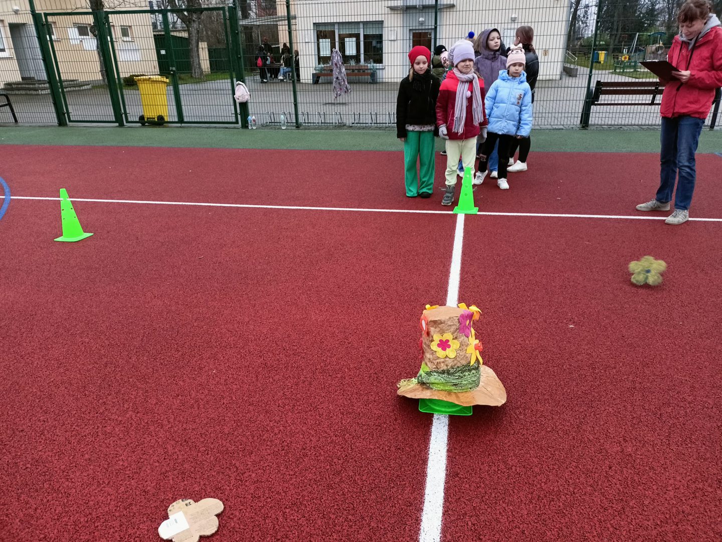Mimo deszczowej aury, udało nam się przywitać wiosnę na sportowo. Był bieg z kapeluszem Pani Wiosny, przeskakiwanie kałuży oraz rzut kwiatami w kapelusz. Dziękujemy dzieciom za uczestnictwo i kształtowanie charakteru sportowca w myśl zasady ” nie ma złej pogody tylko niewłaściwe ubrani ludzie ”