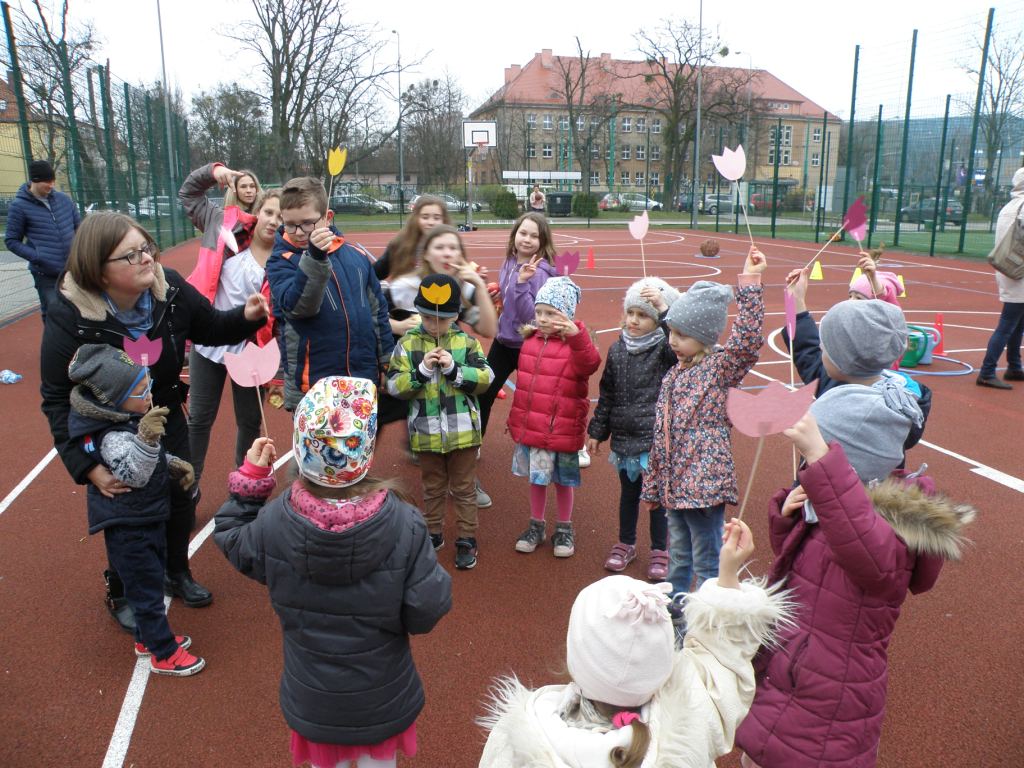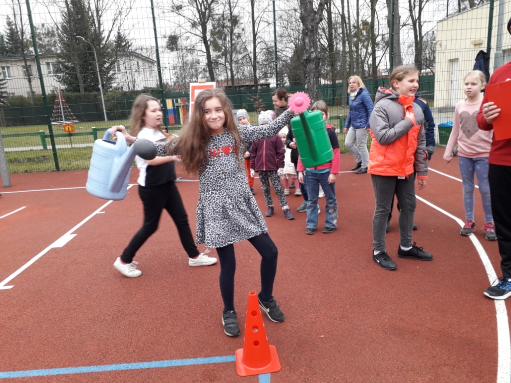 Do Ogrodu Jordanowskiego Nr 2 na powitanie wiosny przeszła młodzież i dzieci wraz z rodzicami. Zabawne konkurencje na boisku Orlik: bieg na czas z konewkami, wiosenne porządki czyli rzut do kosza zużytymi przedmiotami oraz bieg z przeszkodami do koguta zintegrowały wszystkich uczestników.