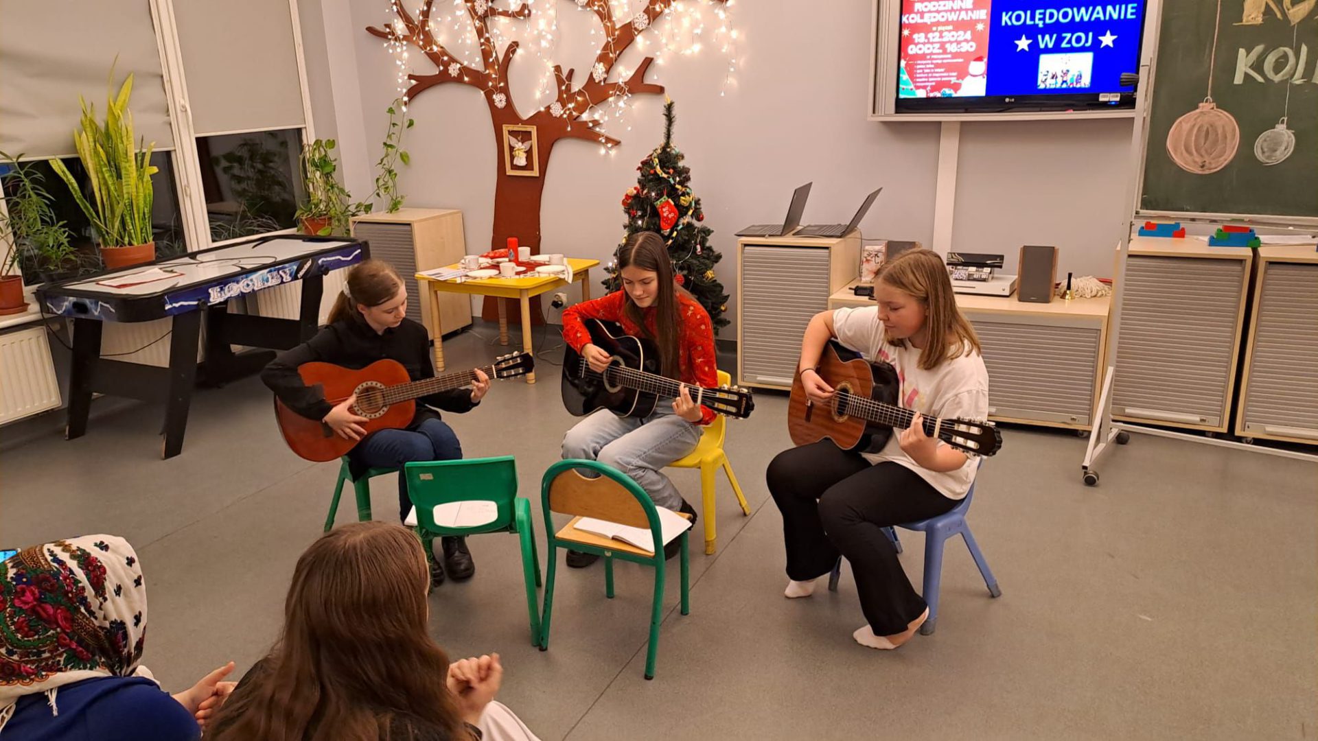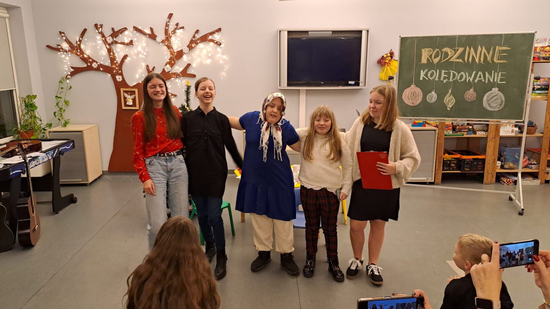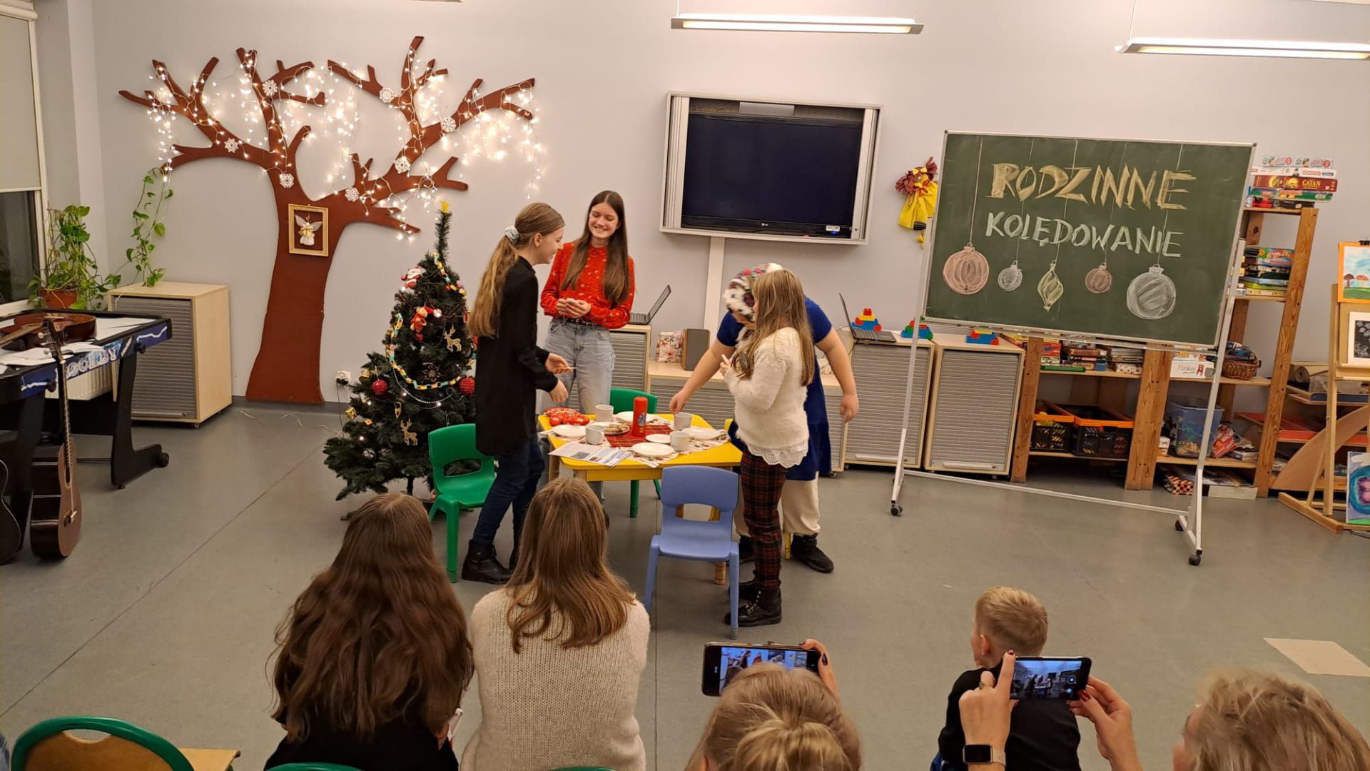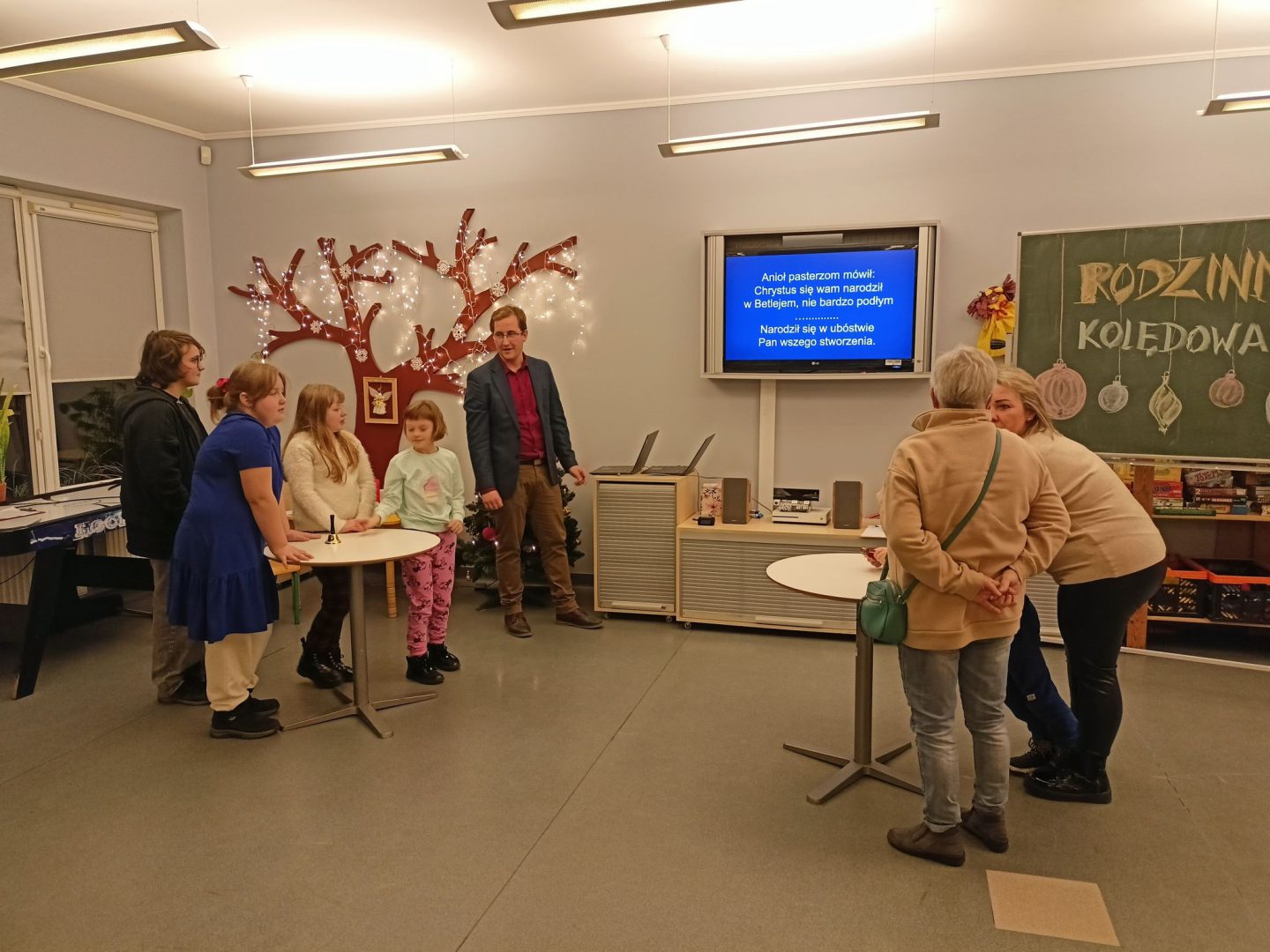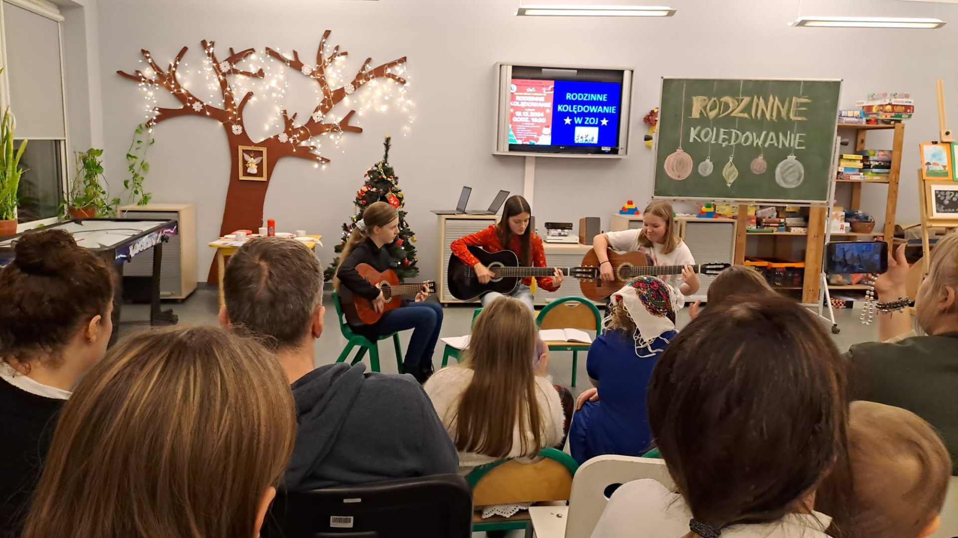 Rodzinne Kolędowanie wprowadziło w naszej świetlicy świąteczny, magiczny nastrój! 🎅🌲A to za sprawą naszych wychowanków i ich występów – było krótkie przedstawienie o wigilijnych przygotowaniach, perfekcyjny występ taneczny i ślicznie zagrane kolędy na gitarach! ❄️ Były też zadania dla całych rodzin – wykonanie ozdoby świątecznej, a później udział w konkurencjach: Jaka to kolęda? i Tak to leciało! Dziękujemy za liczne przybycie i życzymy świątecznego nastroju do końca roku!