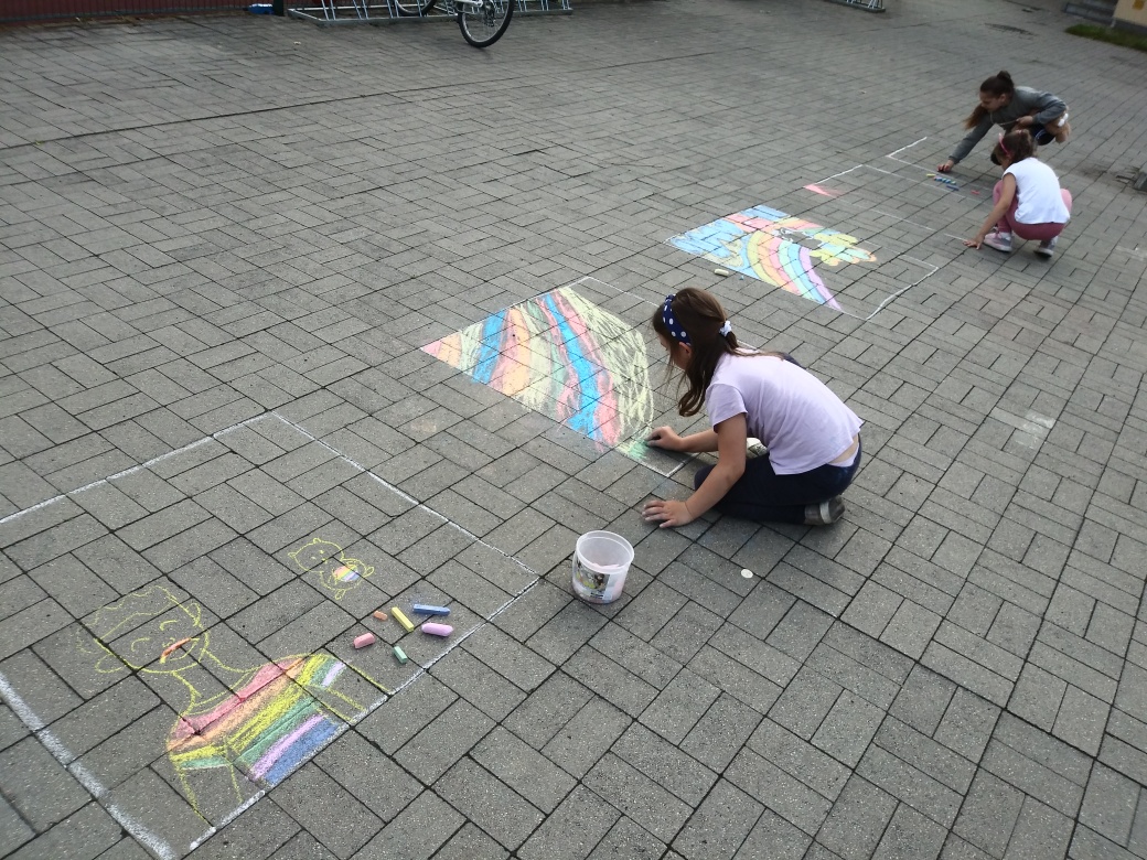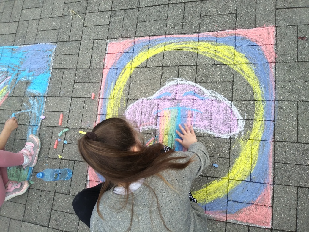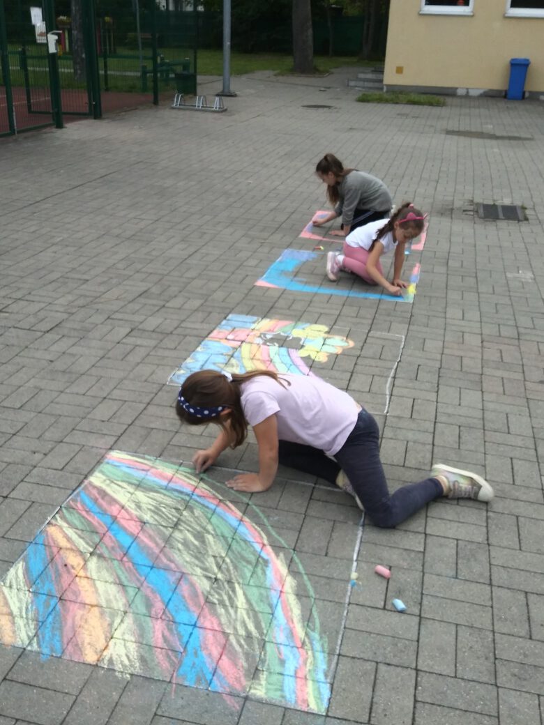 Sportowy Dzień Dziecka w Ogrodzie Jordanowskim nr2 upłynął przy dobrej zabawie, sportowej rywalizacji i grach zespołowych. Deszcz i słońce pokazały piękną tęczę, którą dzieci postanowiły utrwalić w swoich pracach.