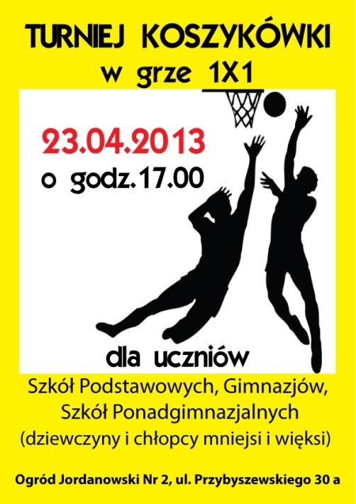 W dniu 23-04-2013 odbyła się kolejna edycja Turnieju Koszykówki w Grze 1 x 1 w trzech kategoriach wiekowych: Szkoły Podstawowe, Gimnazjum oraz Szkoły Średnie.