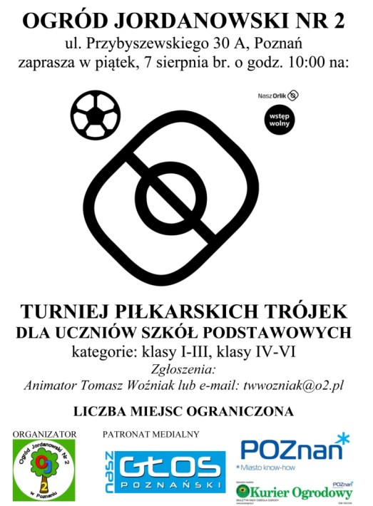 Organizatorem wakacyjnego Turnieju Piłkarskich Trójek dla uczniów szkół podstawowych był Ogród Jordanowski Nr 2. Patronat medialny sprawował dwutygodnik „Nasz Głos Poznański”, gazeta dzielnicy „Kurier Ogrodowy” i oficjalny serwis internetowy Urzędu Miasta Poznania.