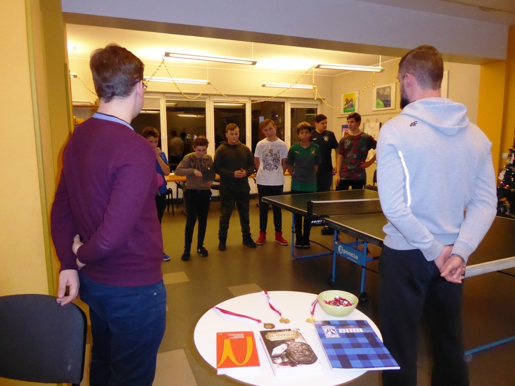 W czwartek 9 stycznia w Ogrodzie Jordanowskim nr 2 odbył się Turniej Tenisa Stołowego, który zapewnił nam wiele emocji. Turniej cieszył się dużym zainteresowaniem wśród młodzieży. Różnica wieku nie przeszkadzała młodszym uczestnikom, ponieważ wszystkie mecze były bardzo zacięte i wyrównane. Zawodnicy byli podzieleni na 2 grupy w których grali w systemie każdy z każdym. Po meczach grupowych, które wyłoniły po 2 najlepszych zawodników z każdej grupy odbyły się półfinały następie mecz o 3 miejsce oraz finał. W finale spotkali się najmłodsi uczestnicy turnieju, którzy radzili sobie doskonale rywalizując ze starszymi kolegami. Najlepsi zawodnicy otrzymali medale oraz zagrody książkowe, dla pozostałych uczestników na pocieszenie został przygotowany słodki poczęstunek. Wszystkim uczestnikom gratulujemy, dziękujemy za udział i zapraszamy wkrótce do udziału w kolejnym turnieju.
