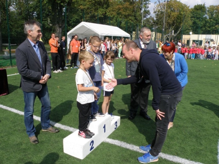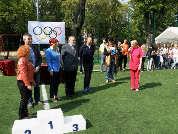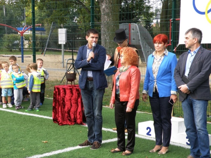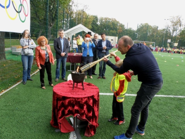 Po przywitaniu wszystkich nastąpił przemarsz na boisko Orlik, tam też uroczystego otwarcia olimpiady dokonał Dyrektor Wydziału Oświaty Urzędu Miasta Poznania p. Przemysław Foligowski, a ceremonię zwieńczyło zapalenie znicza.